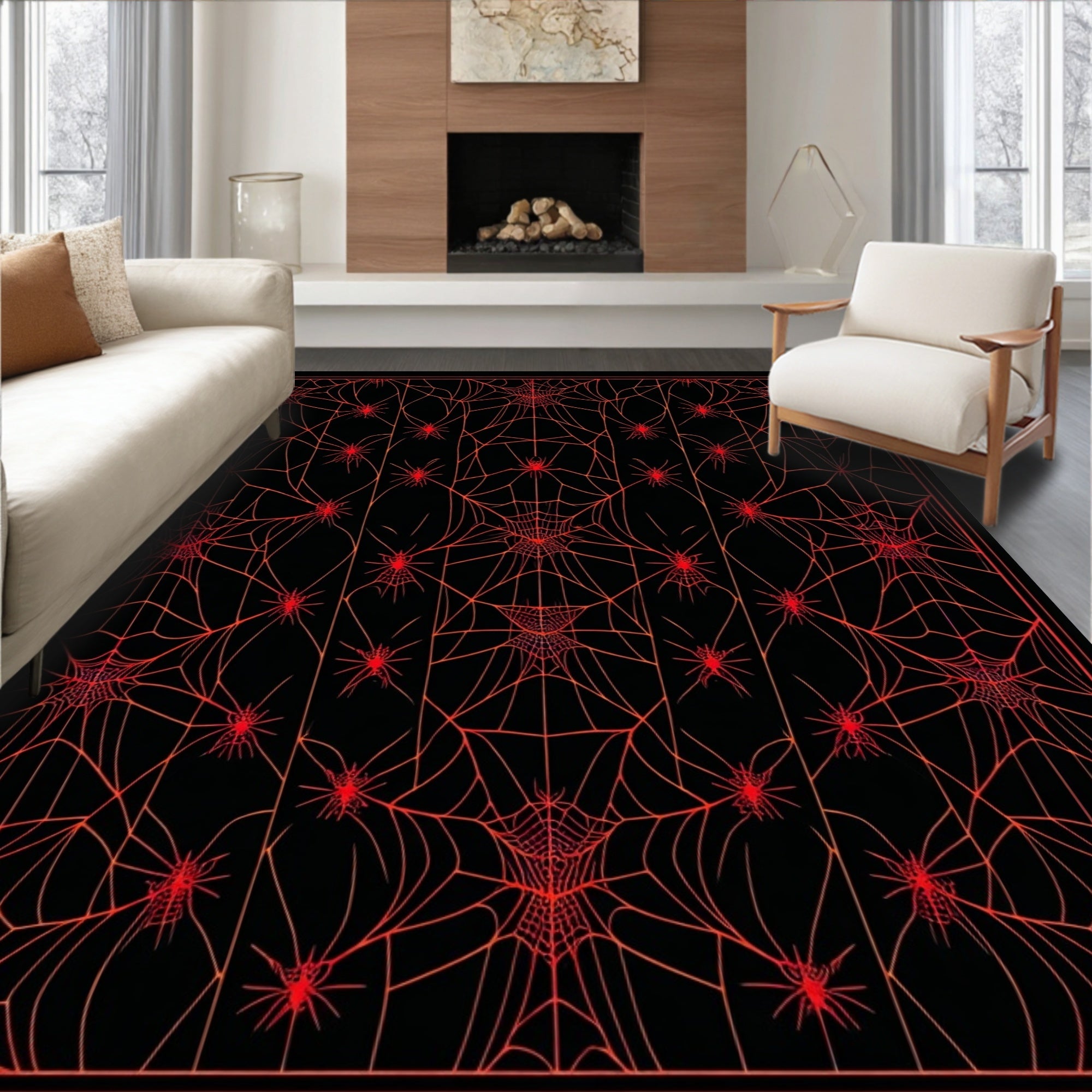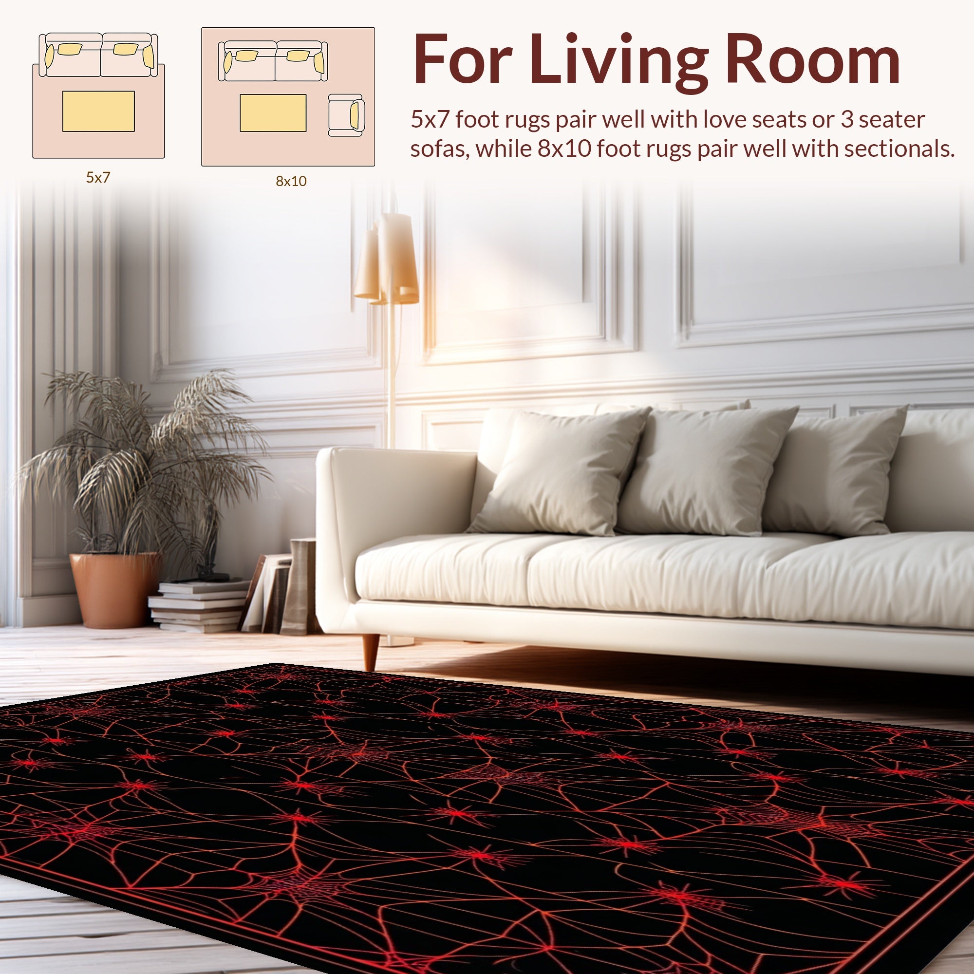 Flatwoven High Traffic Area Rug, Elegant Rustic Halloween Vibes, Non Slip, Stain Resistant, Washable Area Rugs for Living Room, Bedroom (Red) Overview: