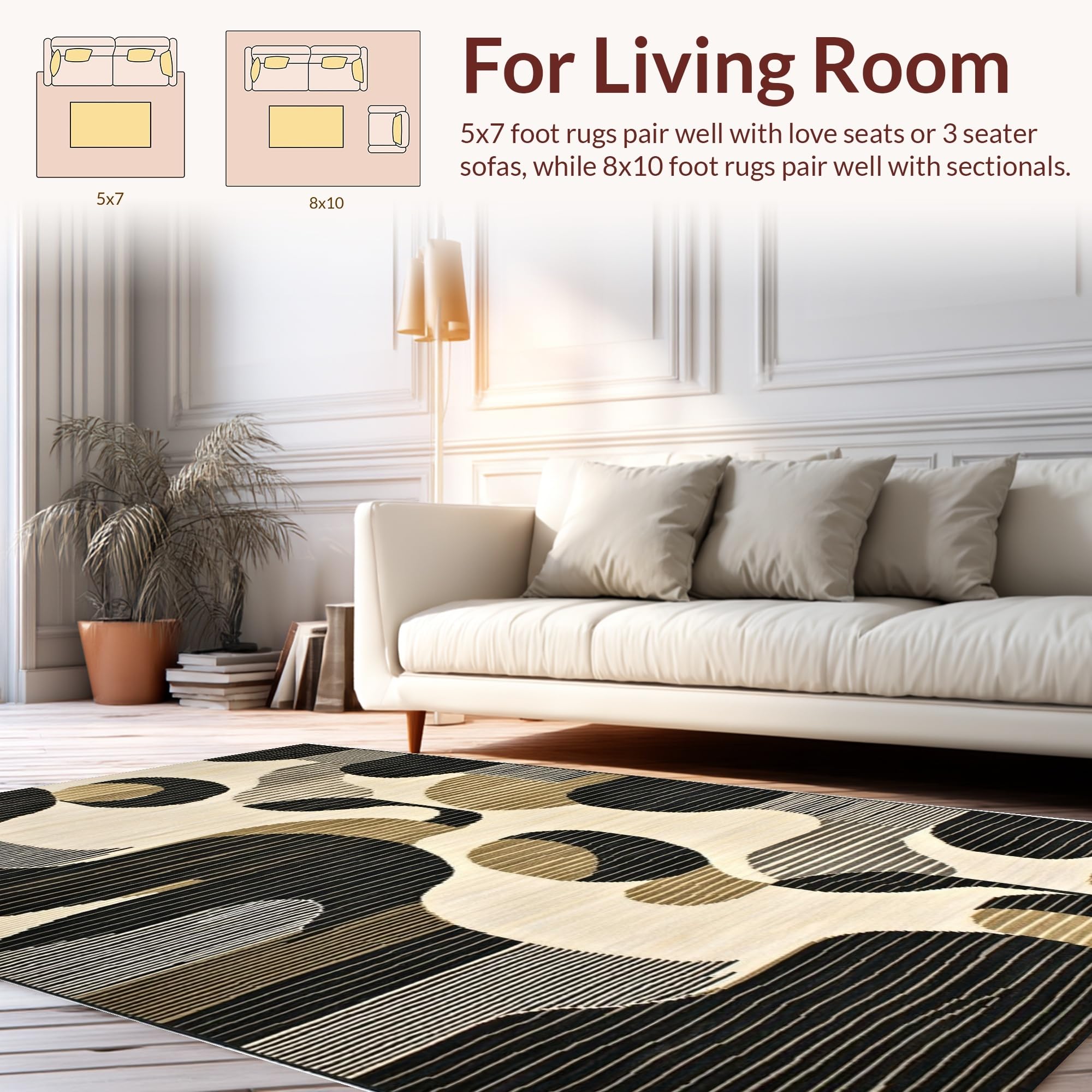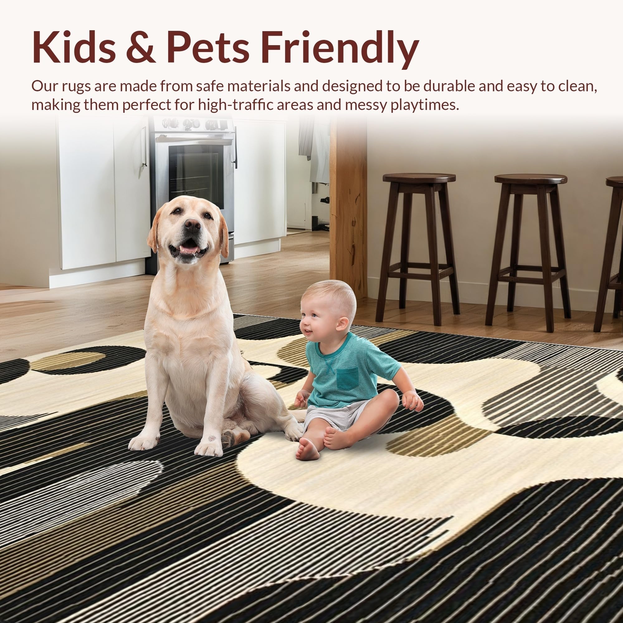 Ultra Soft Area Rug, Non Slip, Stain Resistant, Washable Area Rugs for Living Room, Bedroom, Elegant Rustic Okapi Motif Design(Beige) Overview: