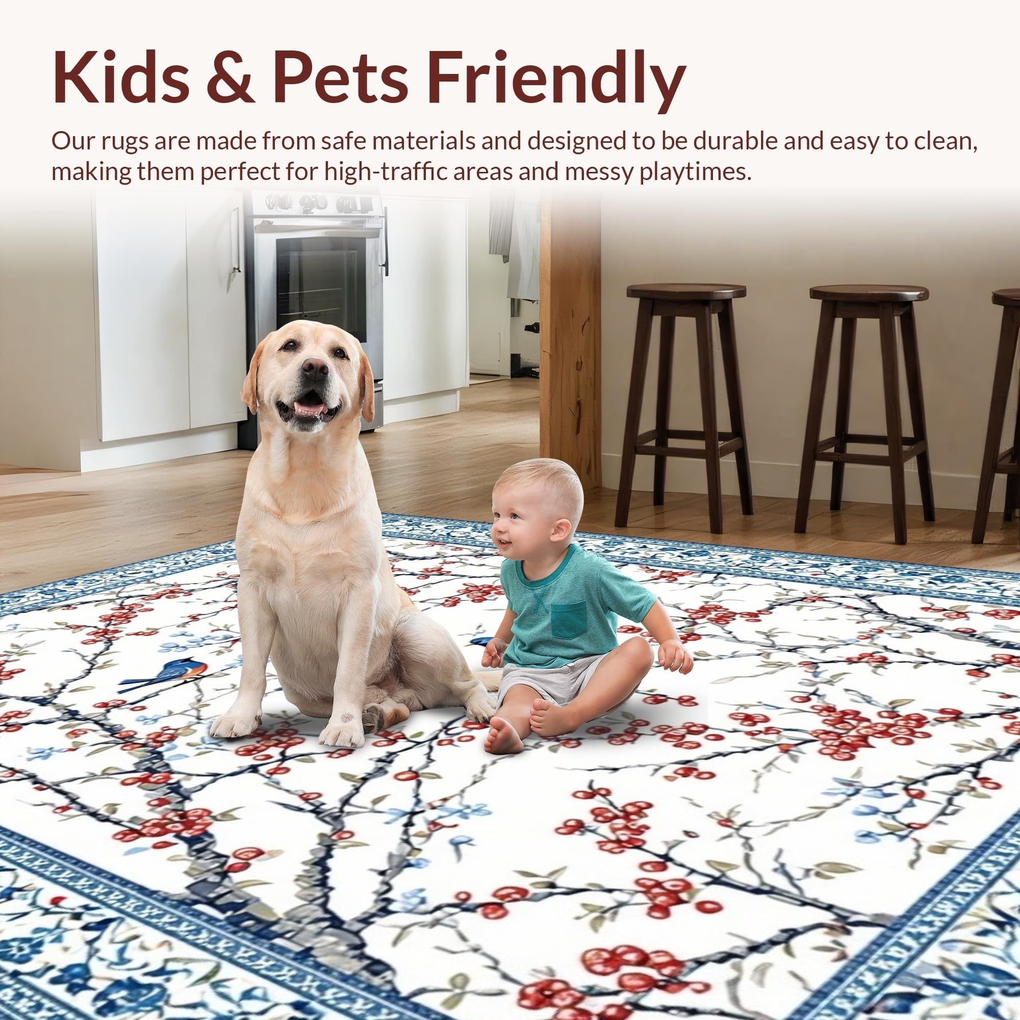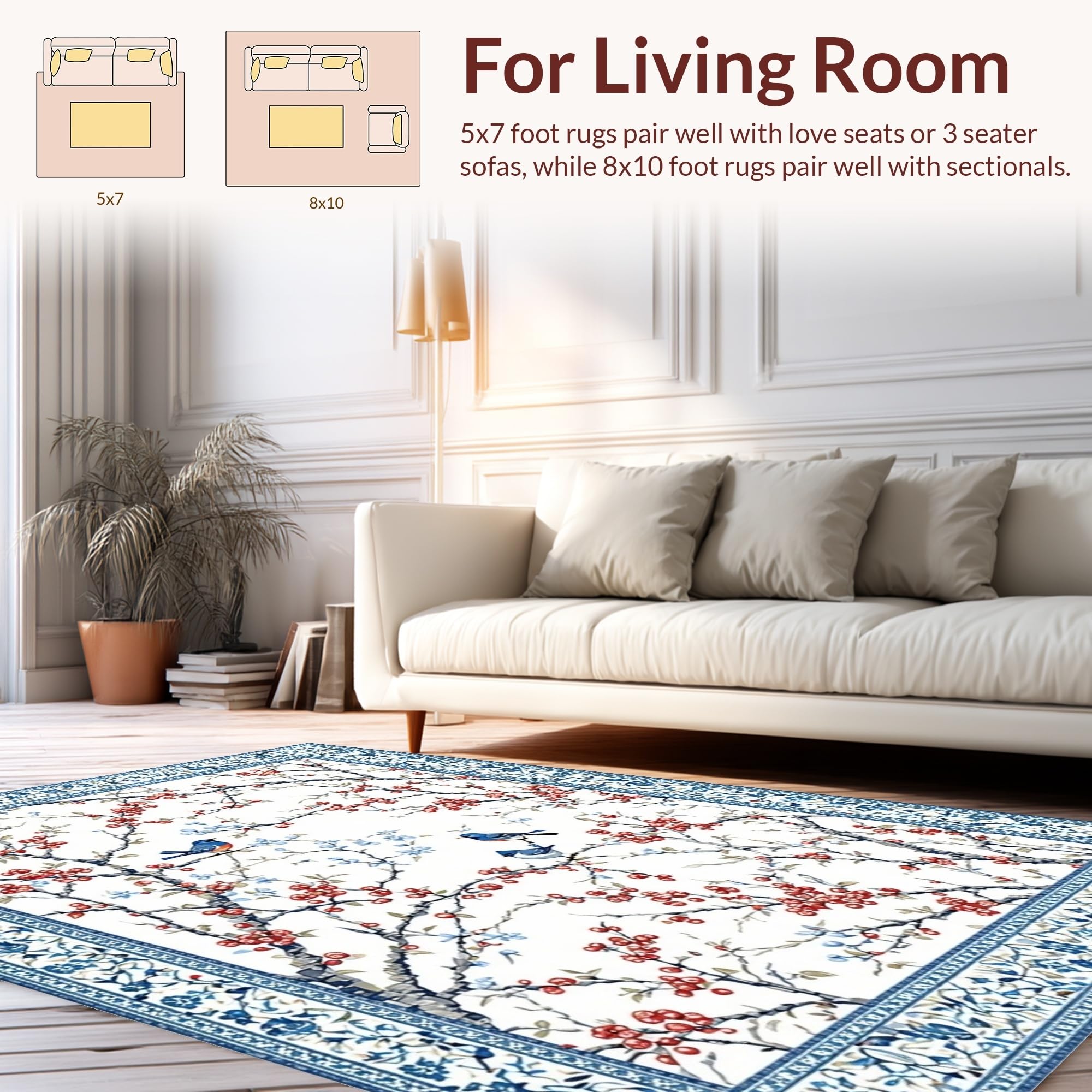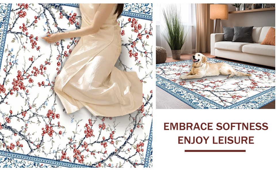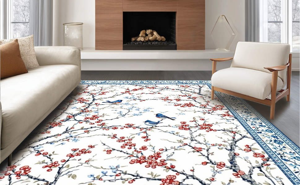 Ultra Soft Area Rug, Non Slip, Stain Resistant, Washable Area Rugs for Living Room, Bedroom, Elegant Rustic Twig Pattern(White) Overview:
