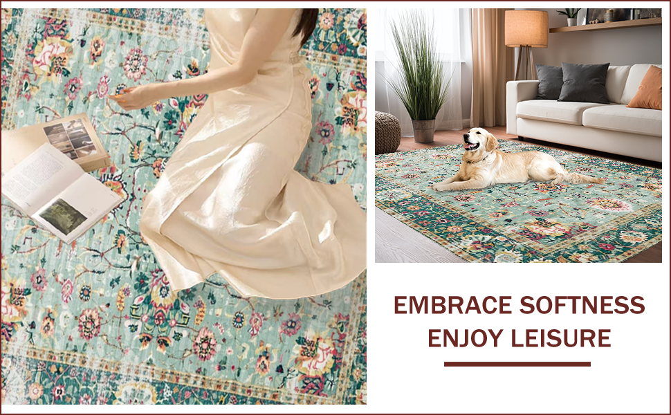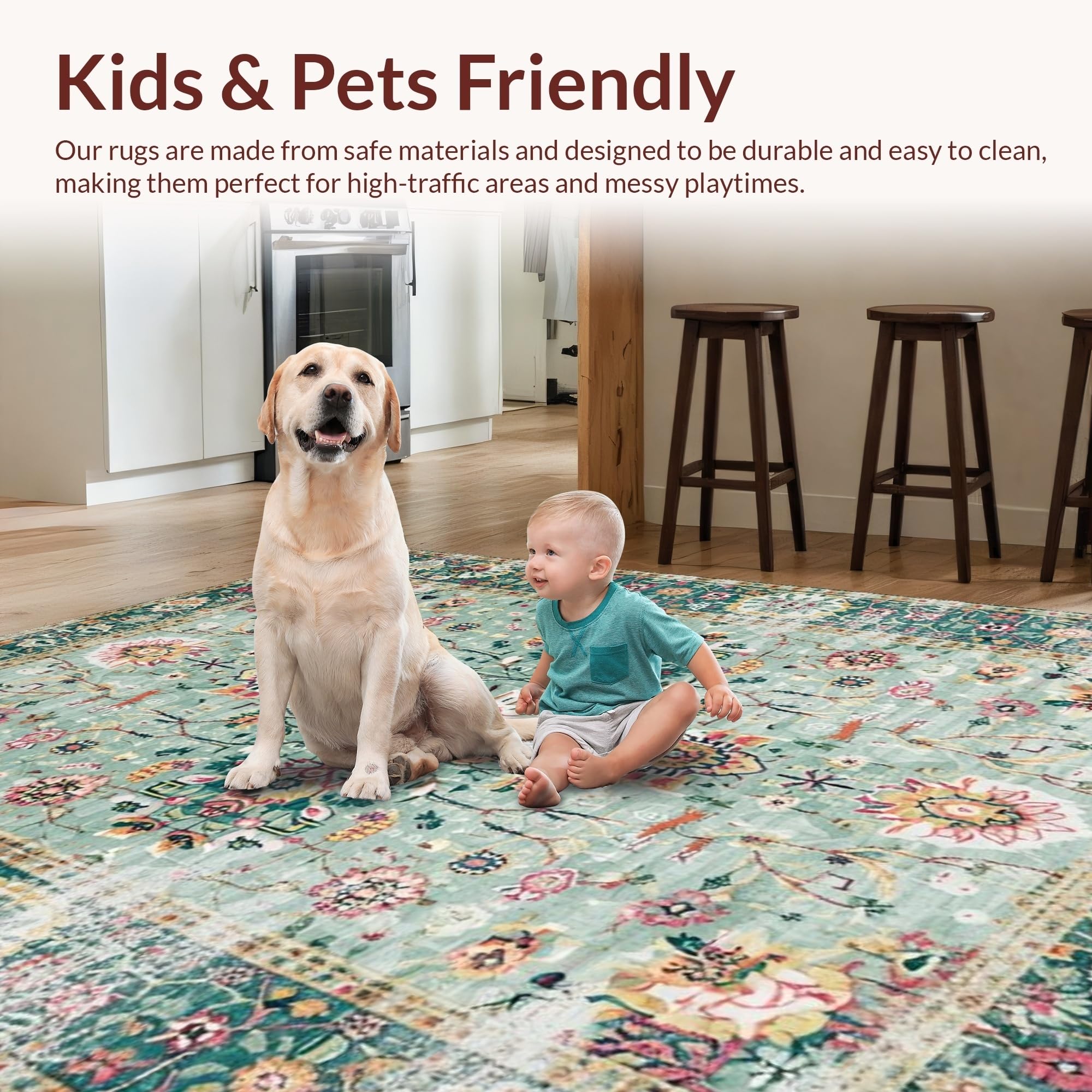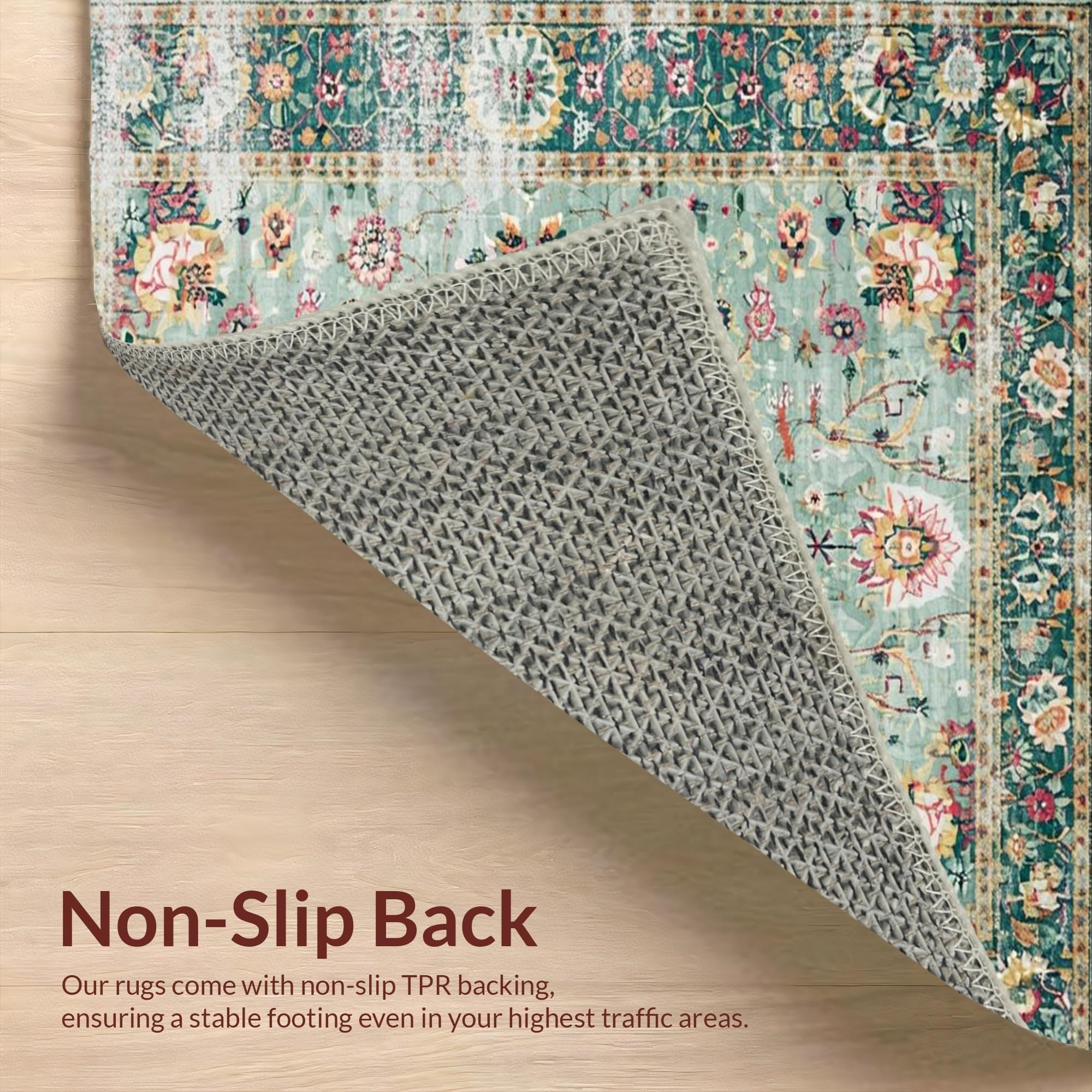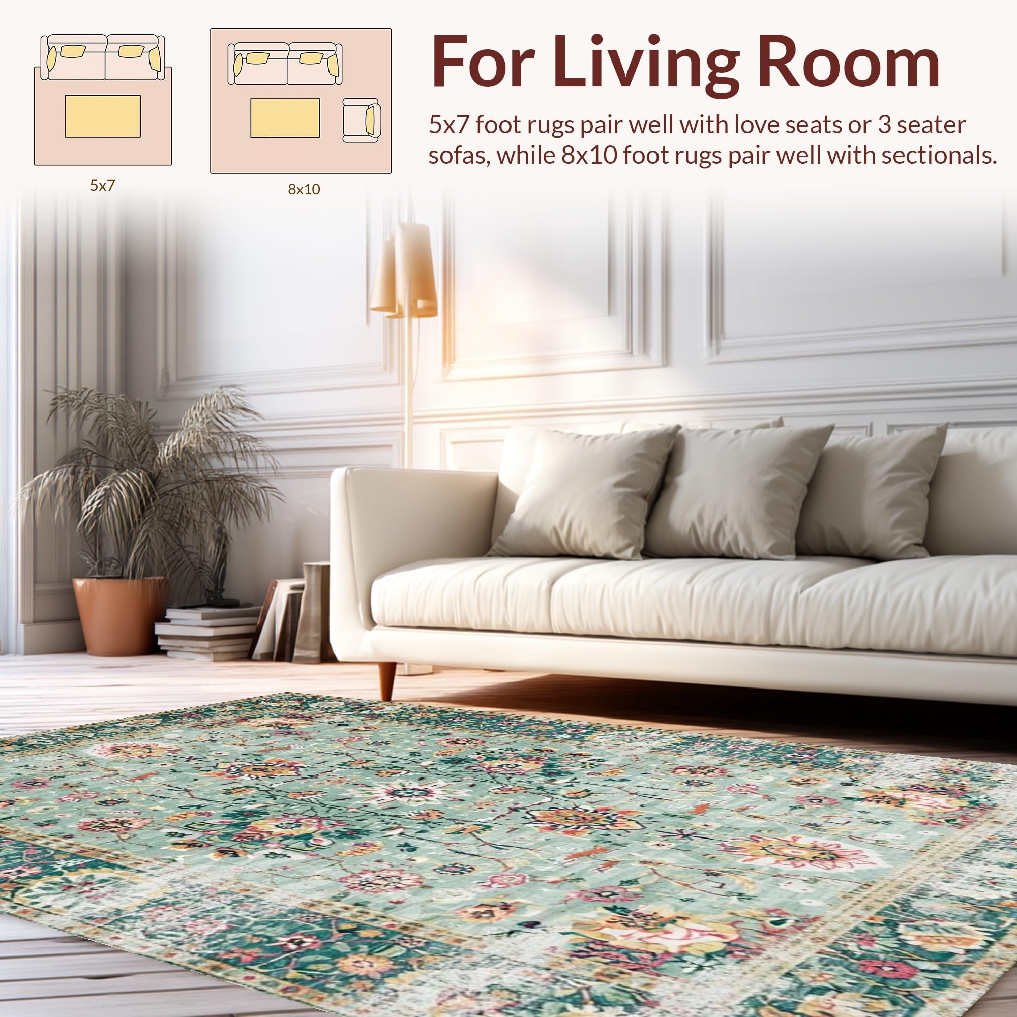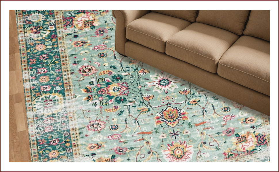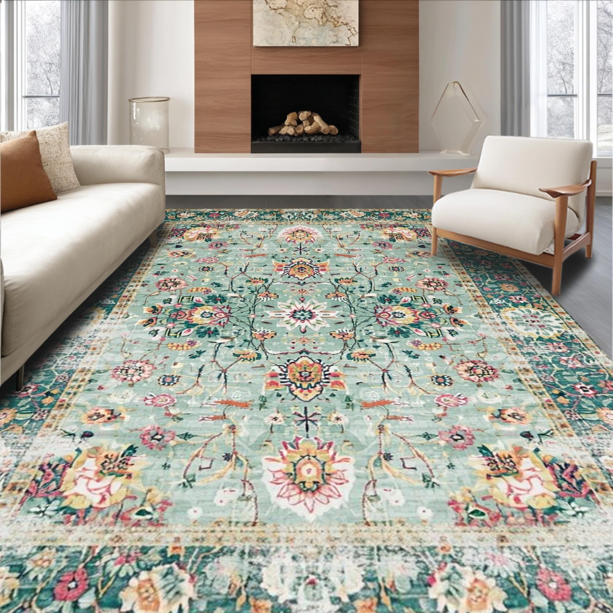 Ultra Soft Area Rug, Non Slip, Stain Resistant, Washable Area Rugs for Living Room, Bedroom, Elegant Sage Floral Motif(Green) Overview:
