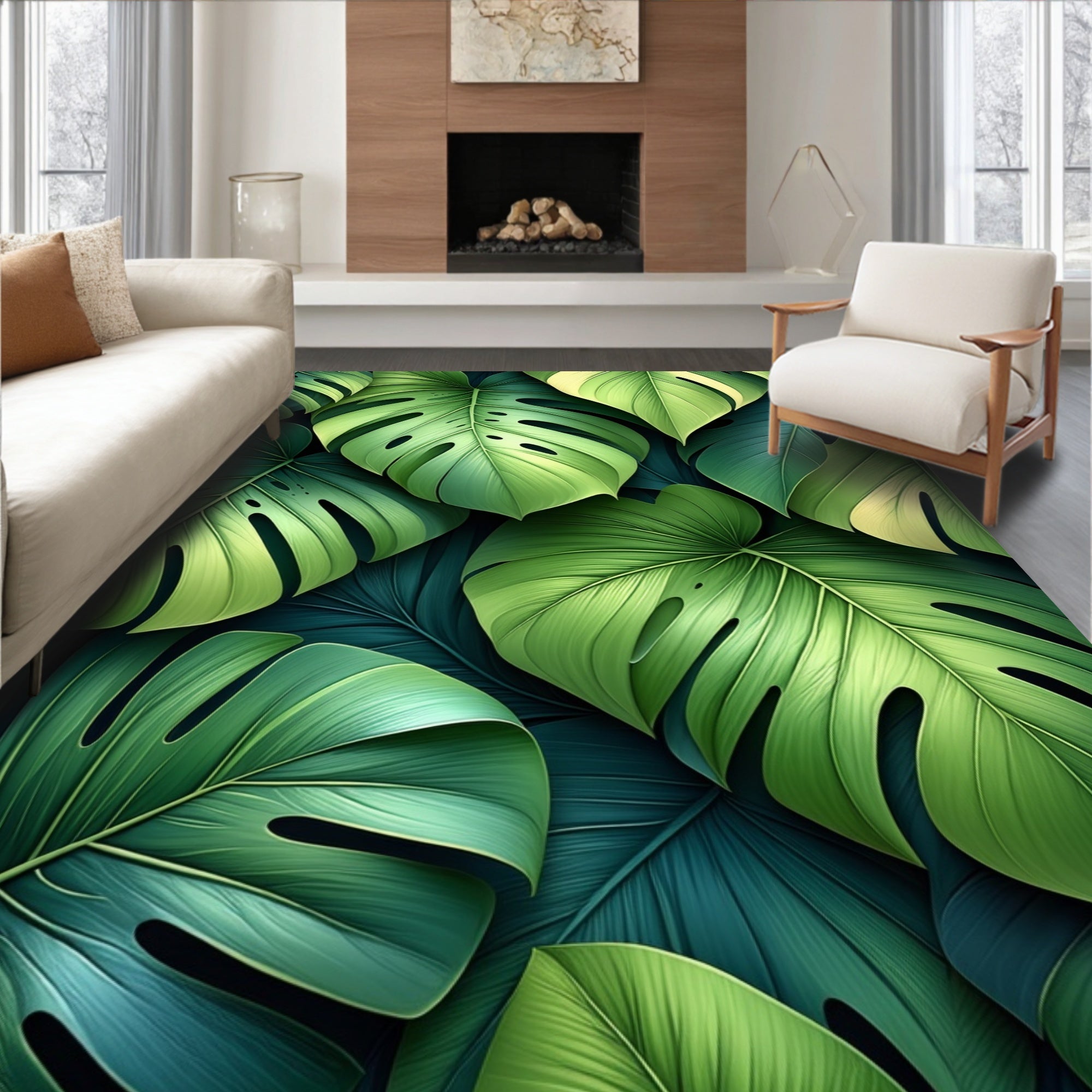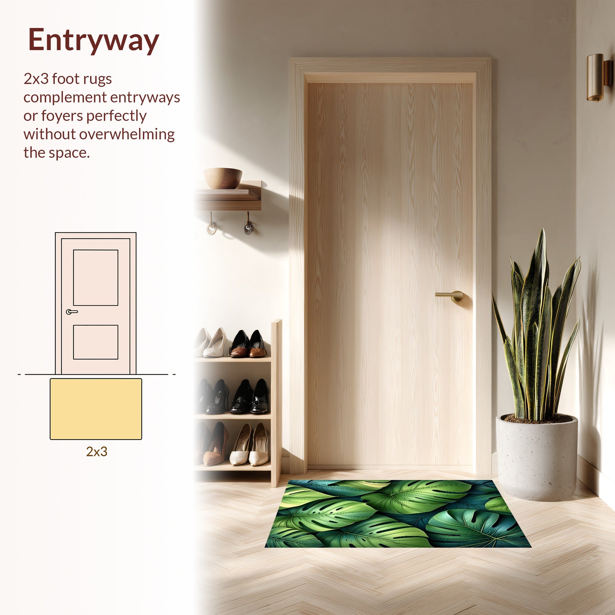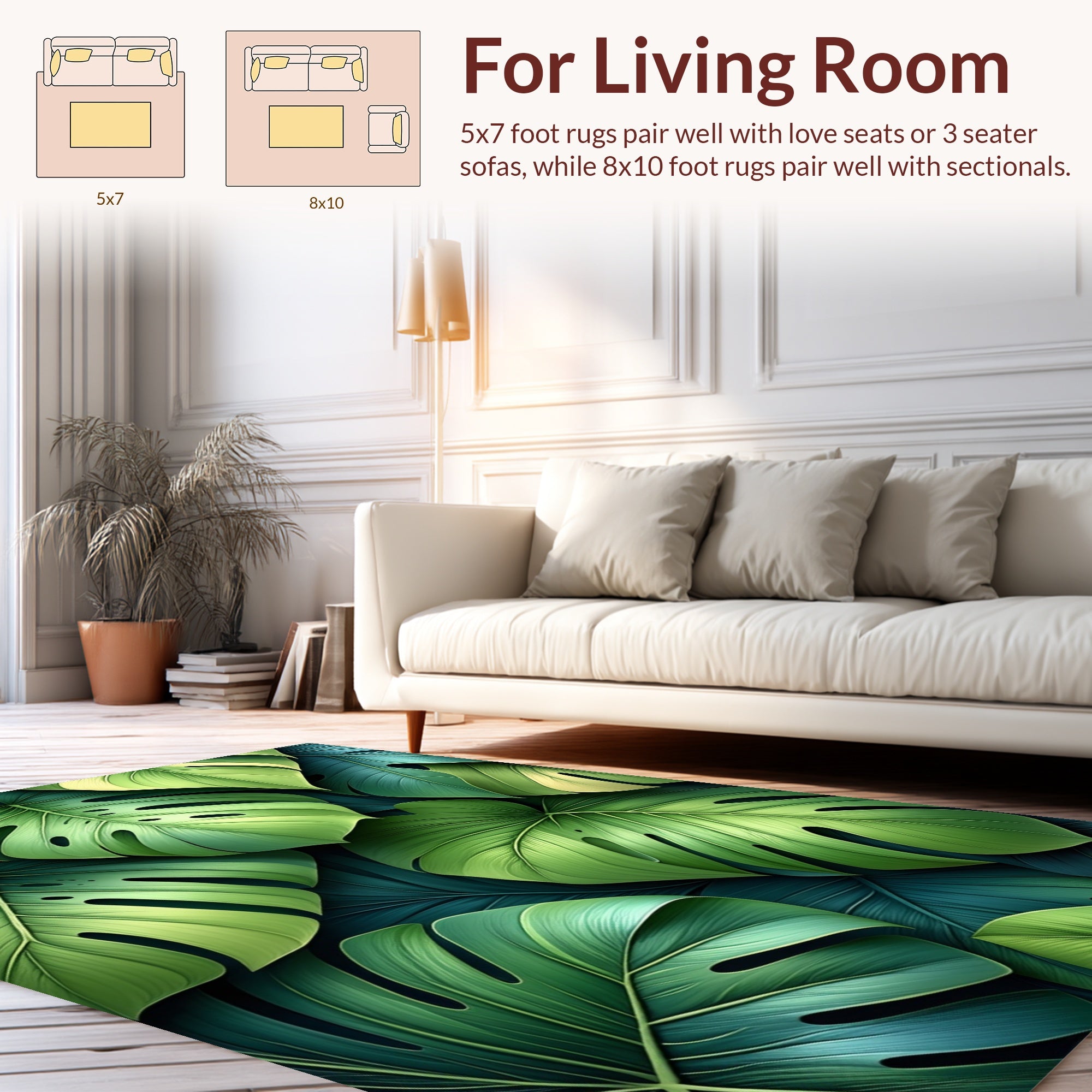 Flatwoven High Traffic Area Rug, Elegant Sage Green Leaf, Non Slip, Stain Resistant, Washable Area Rugs for Living Room, Bedroom (Green) Overview: