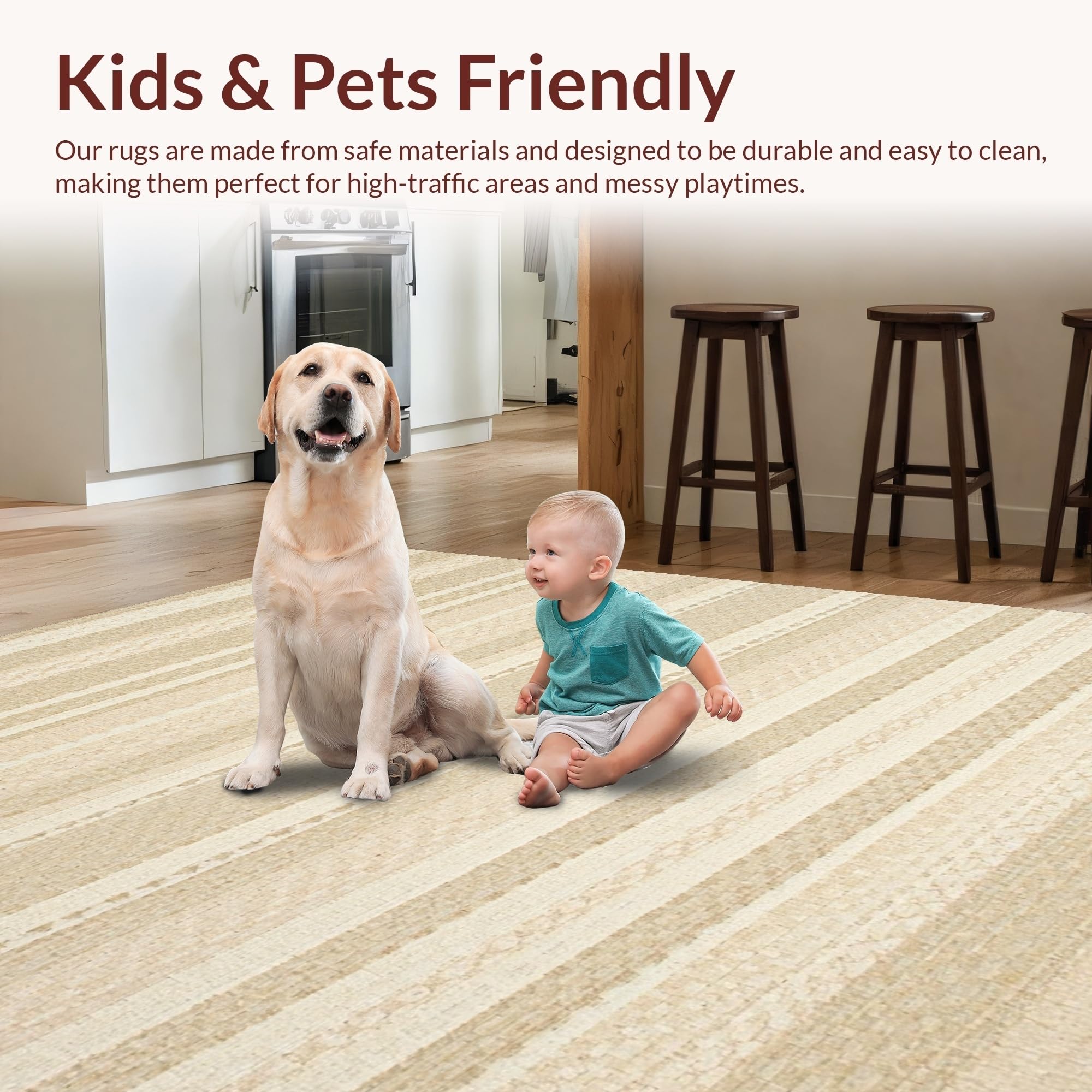 Ultra Soft Area Rug, Non Slip, Stain Resistant, Washable Area Rugs for Living Room, Bedroom, Elegant Sand-Toned Symmetrical Design(Beige) Overview: