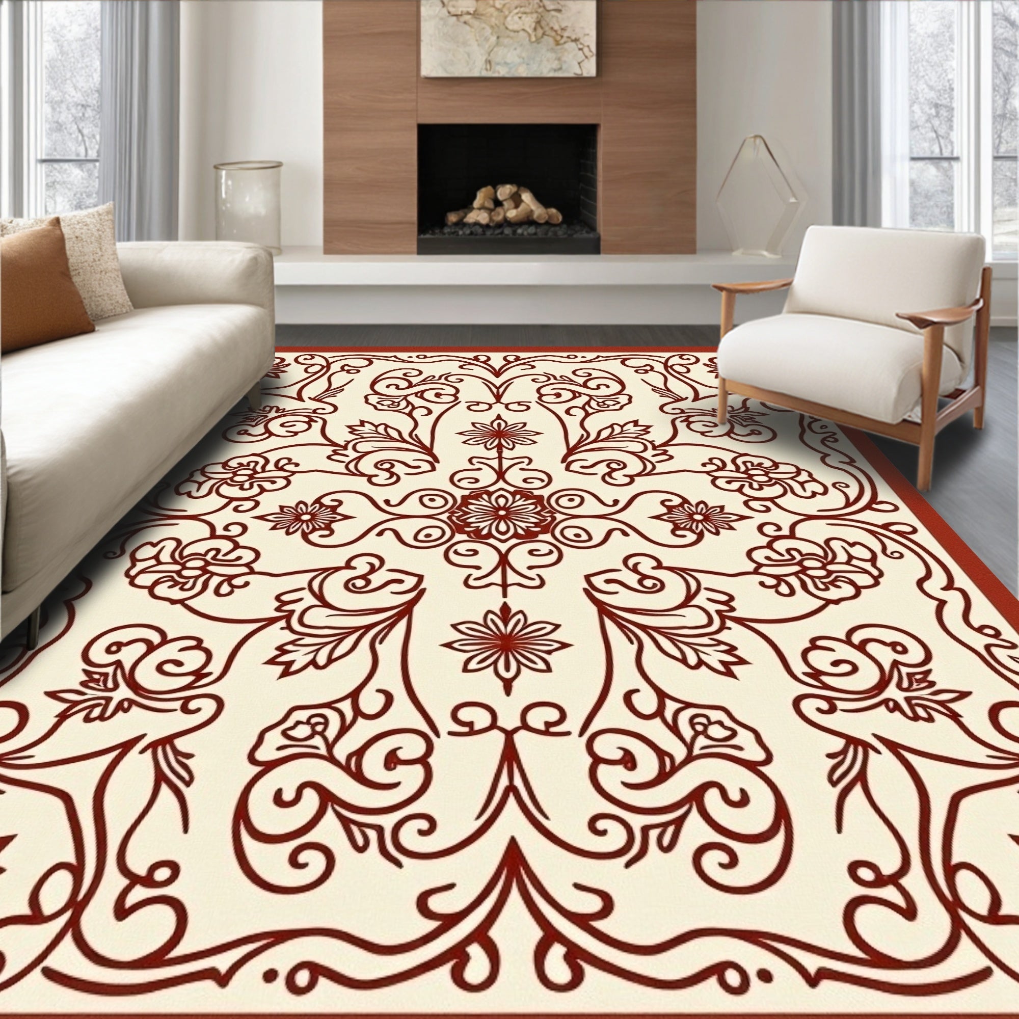 Flatwoven High Traffic Area Rug, Elegant Scrollwork Floral Jacquard Tapestry Masterfully, Non Slip, Stain Resistant, Washable Area Rugs for Living Room, Bedroom (Brown) Overview: