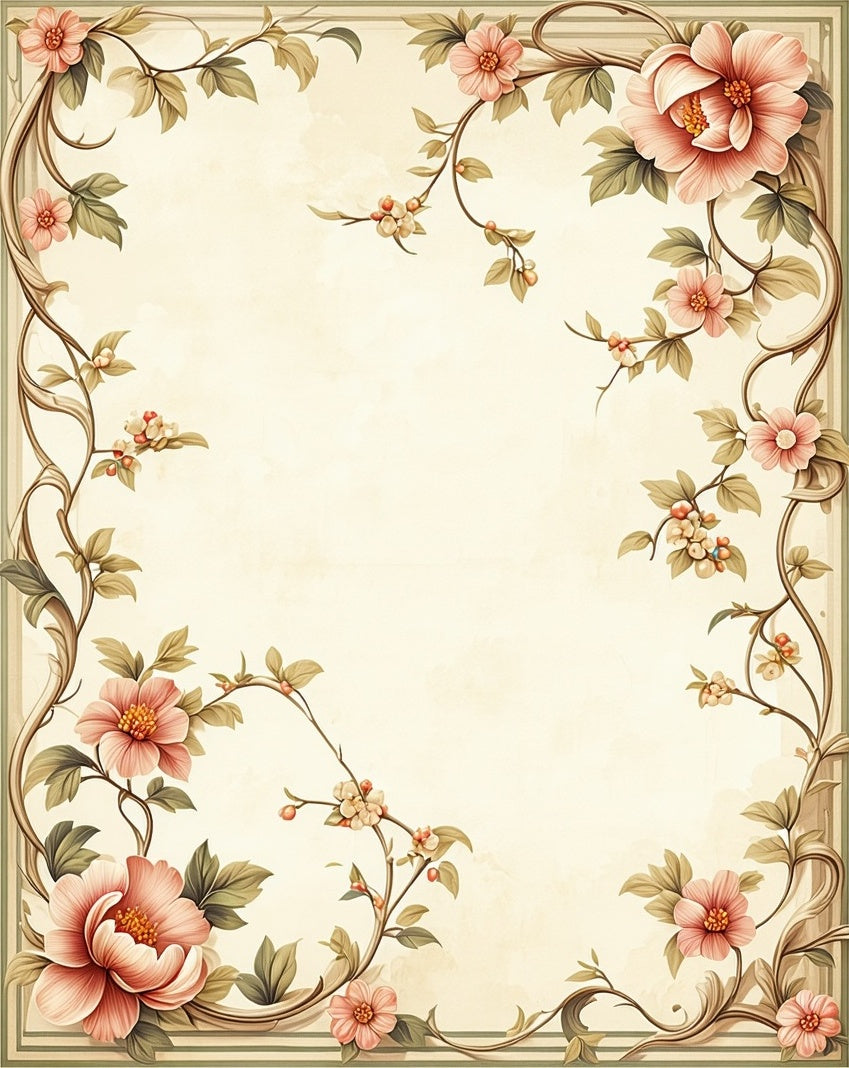 Elegant Scrollwork with Subdued Beige Tones and Garden Detailing(Beige)