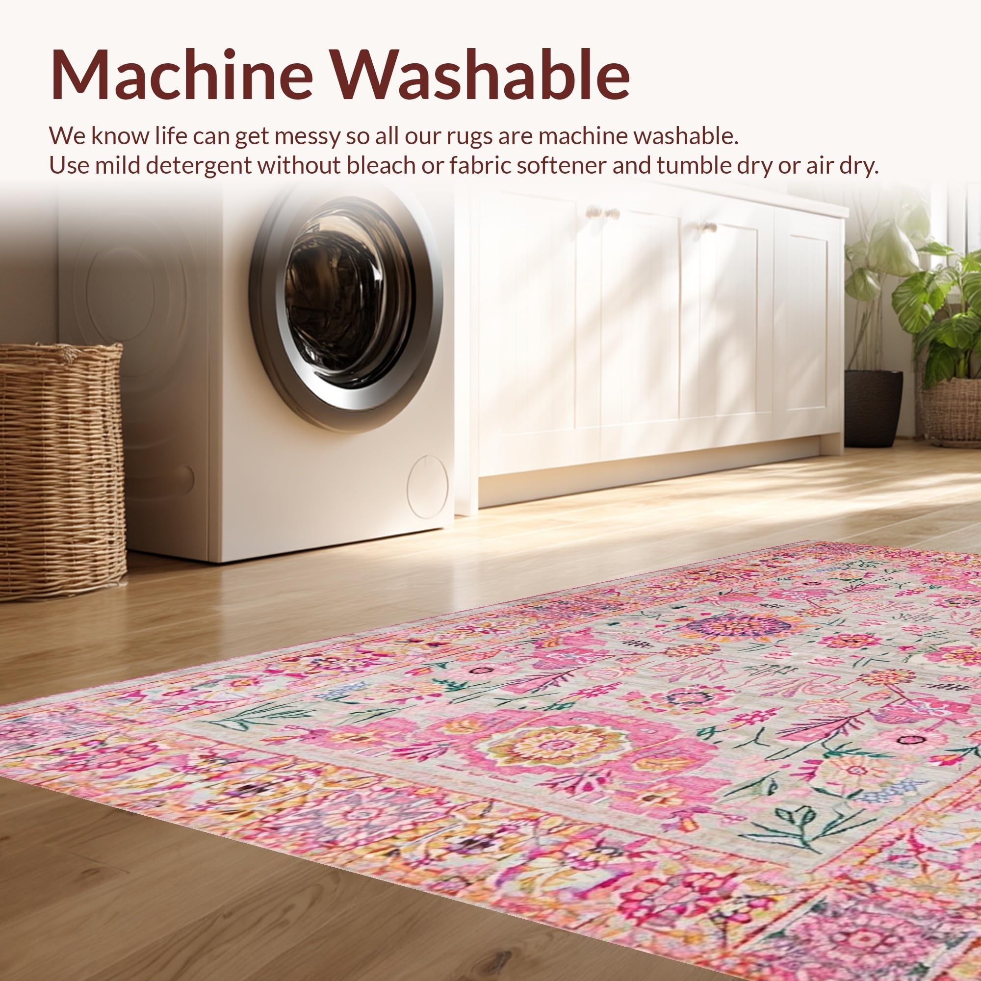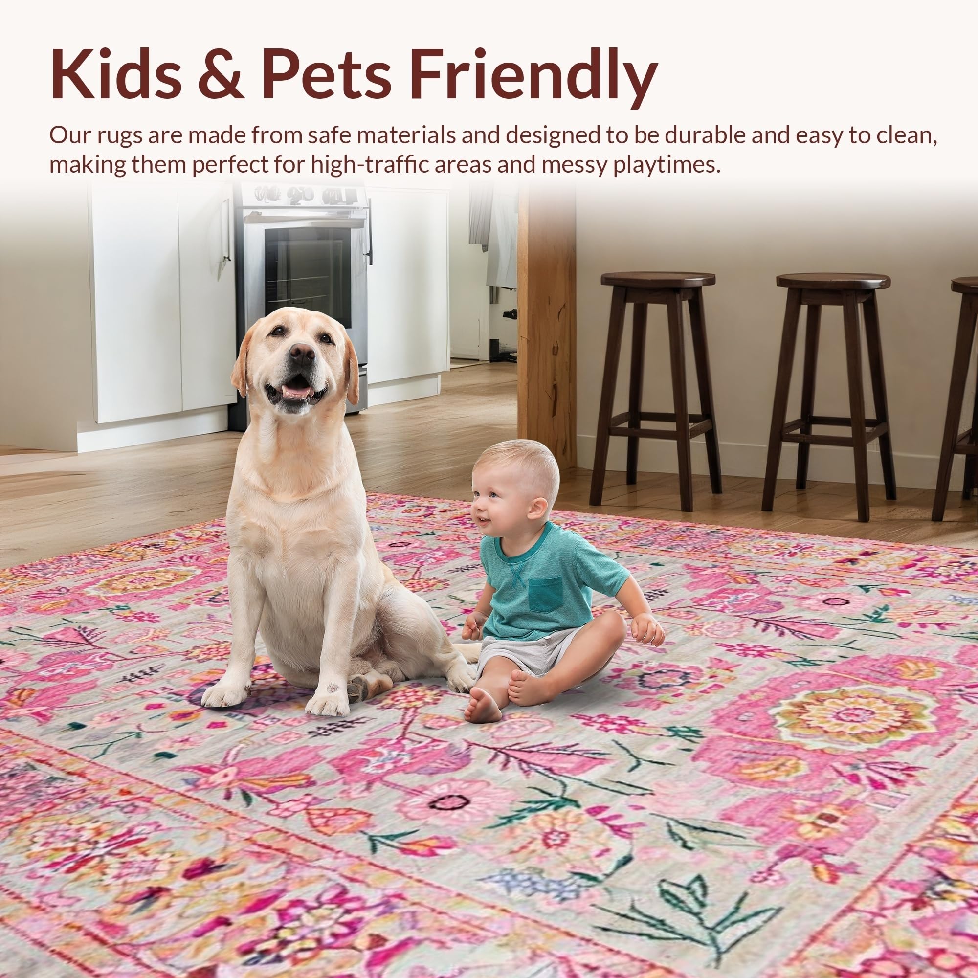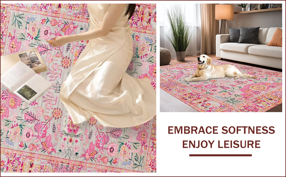 Ultra Soft Area Rug, Non Slip, Stain Resistant, Washable Area Rugs for Living Room, Bedroom, Elegant Soft Botanical Dreamscape(Pink) Overview: