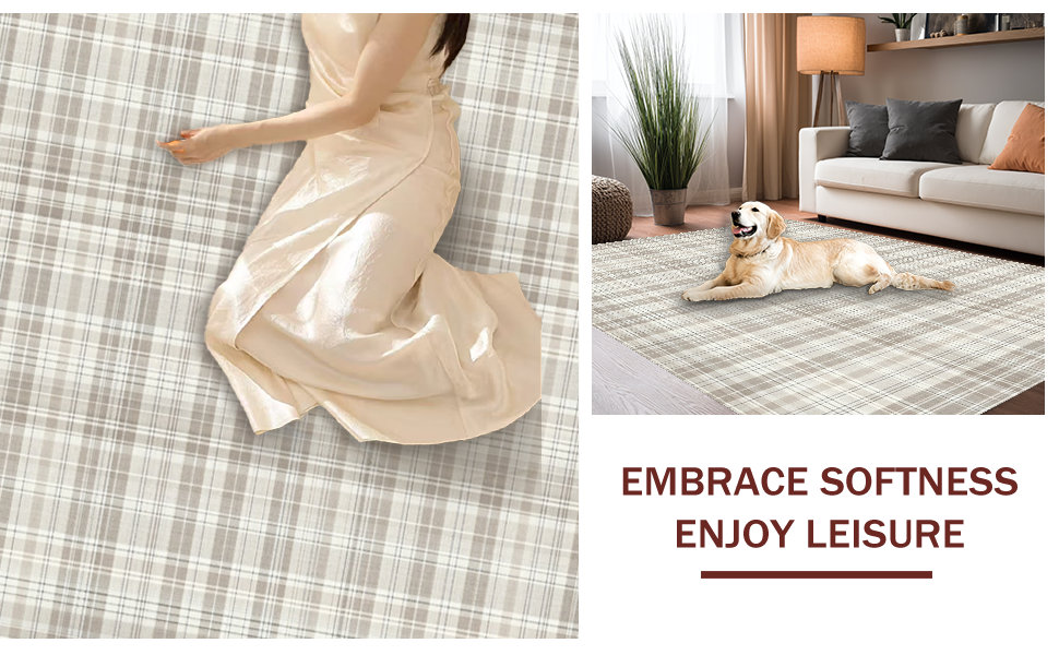 Ultra Soft Area Rug, Non Slip, Stain Resistant, Washable Area Rugs for Living Room, Bedroom, Elegant Soft Earth Tone Check(Beige) Overview:
