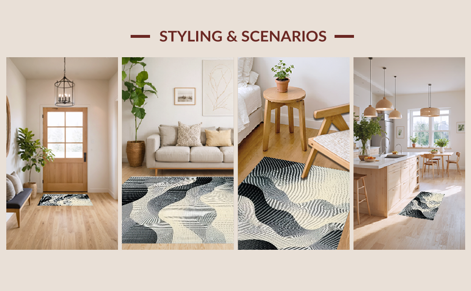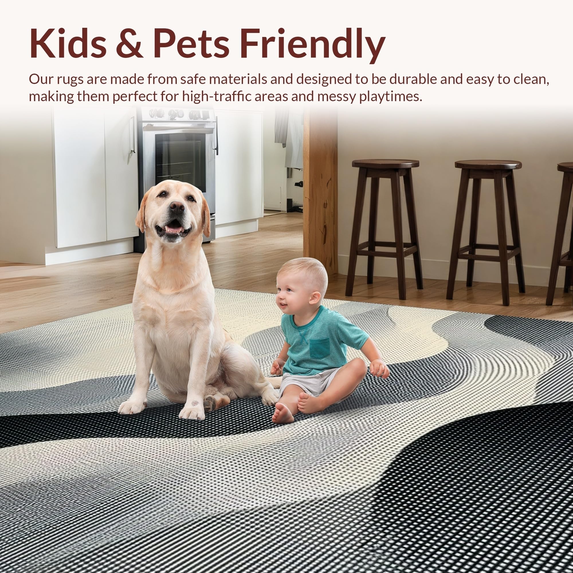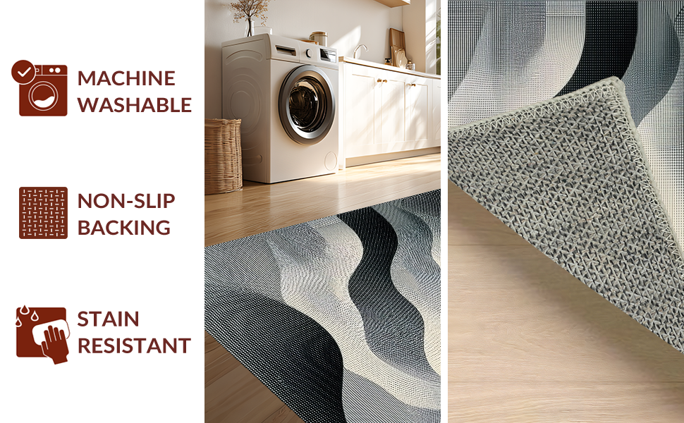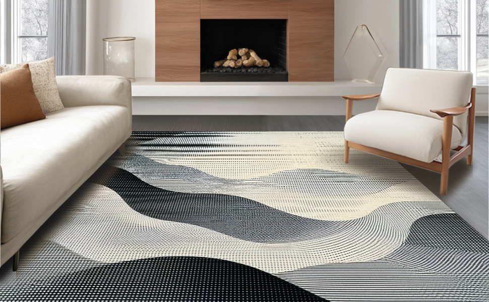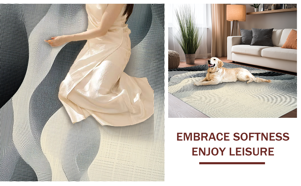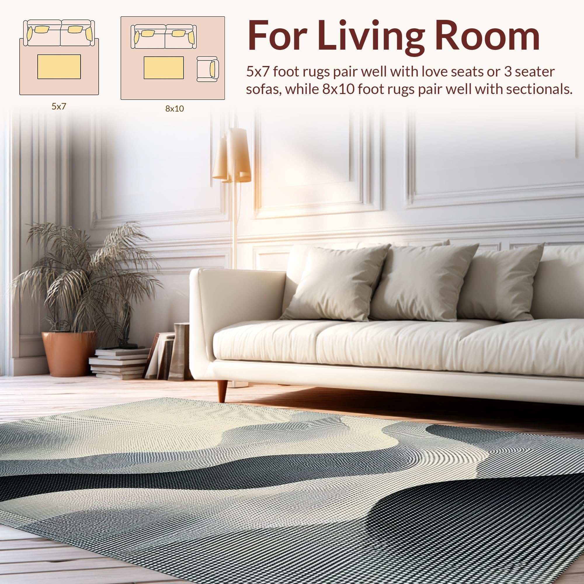Ultra Soft Area Rug, Non Slip, Stain Resistant, Washable Area Rugs for Living Room, Bedroom, Elegant Soft Gray Geometric Waves(Gray) Overview: