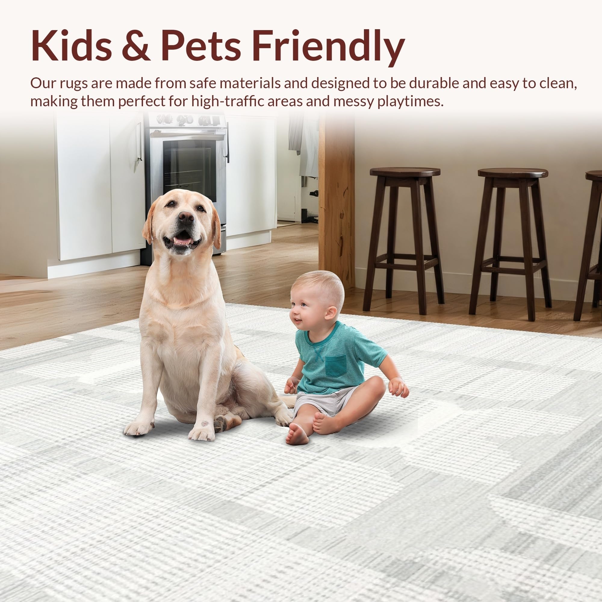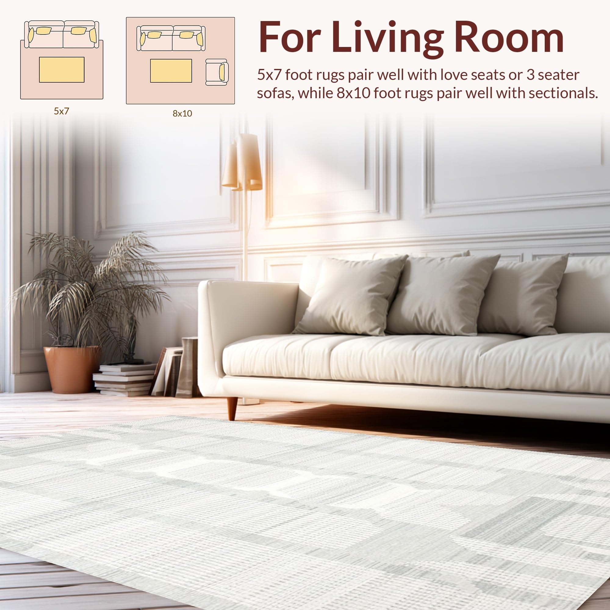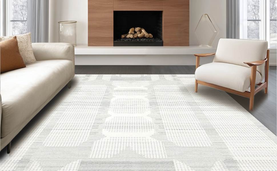 Ultra Soft Area Rug, Non Slip, Stain Resistant, Washable Area Rugs for Living Room, Bedroom, Elegant Soft High-Low Texture(Gray) Overview: