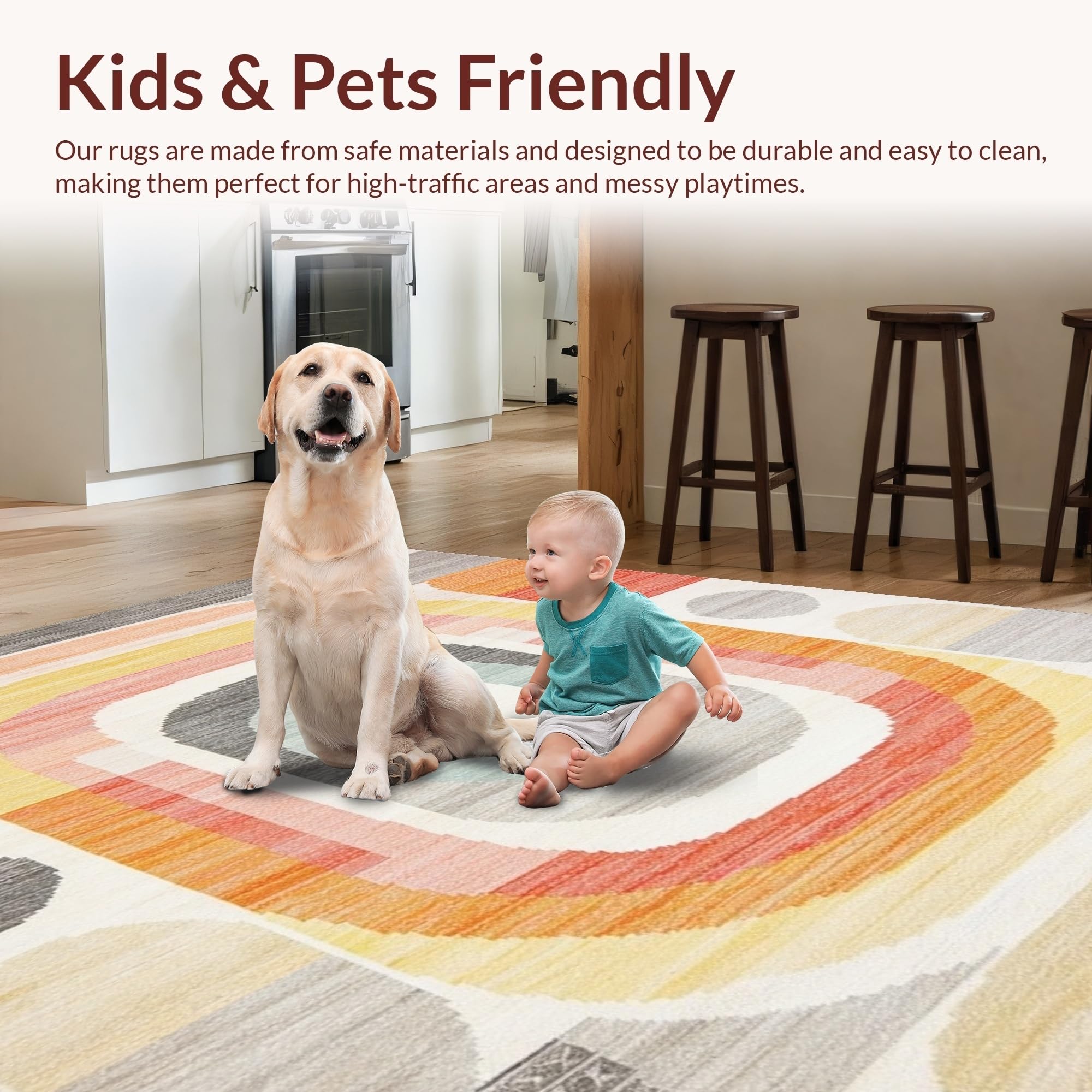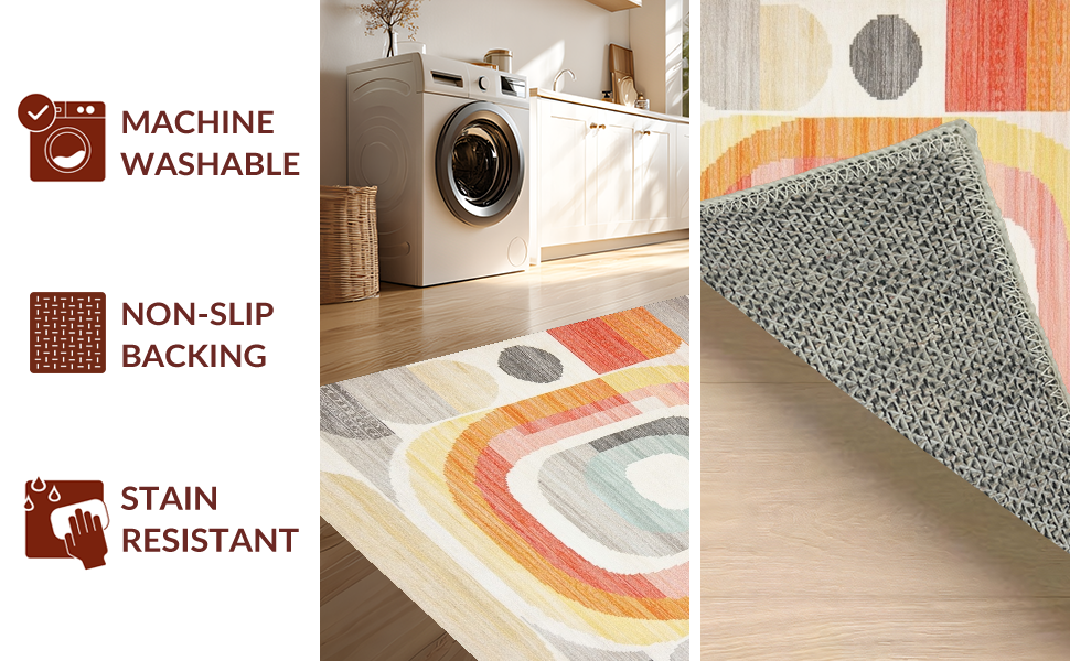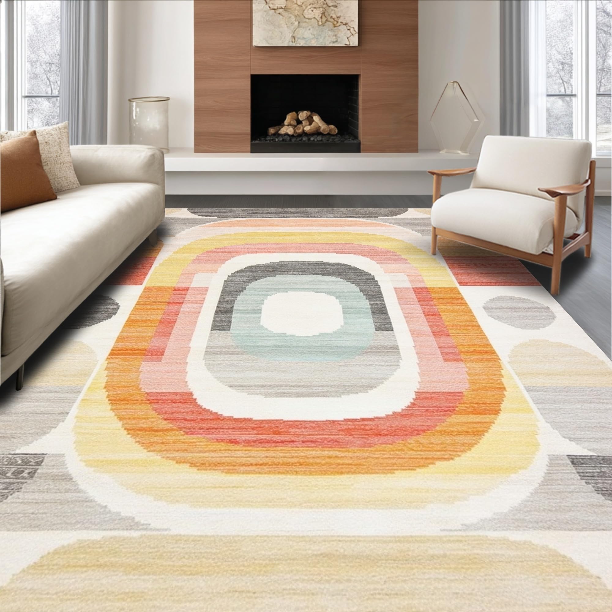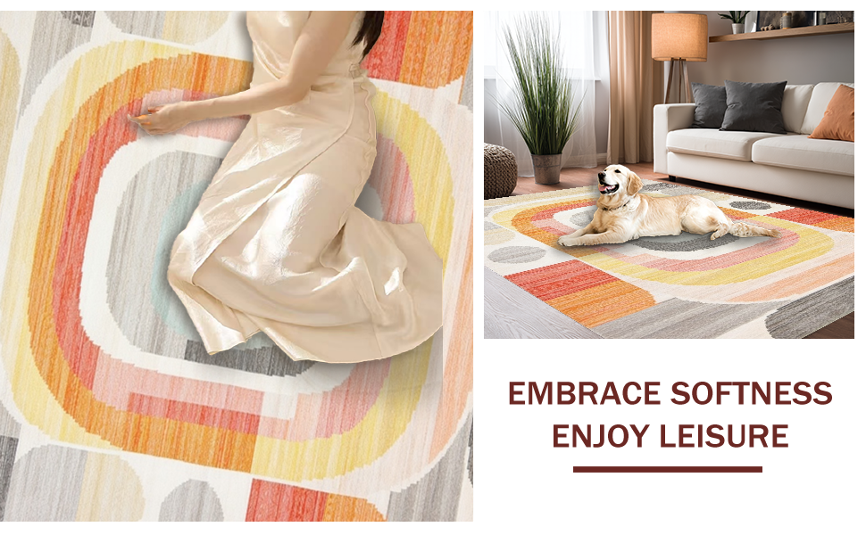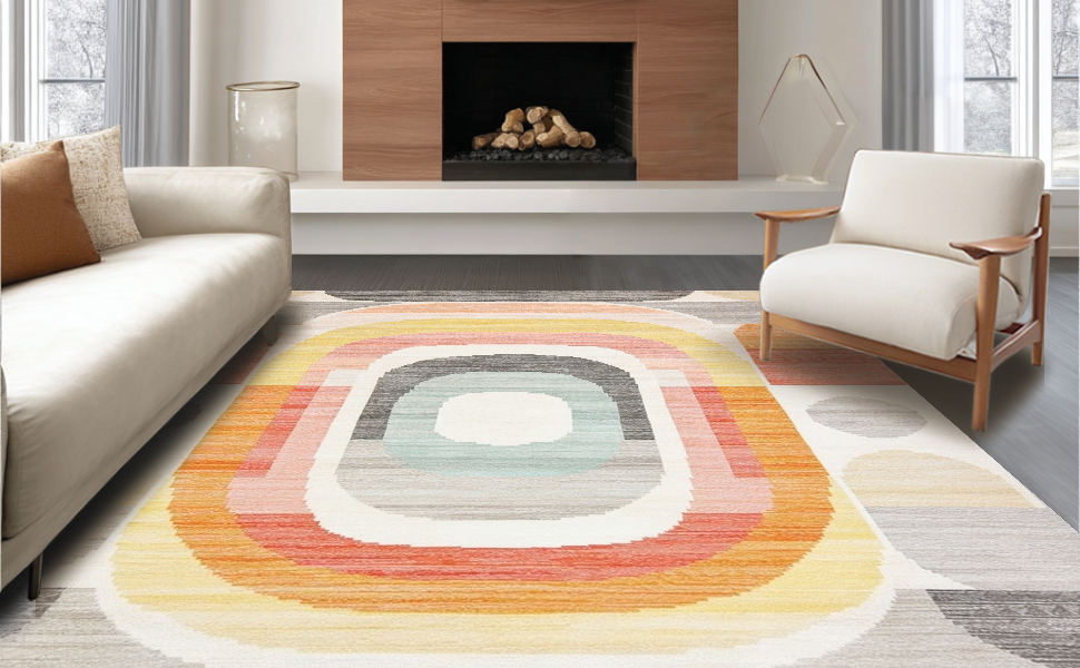Ultra Soft Area Rug, Non Slip, Stain Resistant, Washable Area Rugs for Living Room, Bedroom, Elegant Soft Pastel Geometry(Orange) Overview: