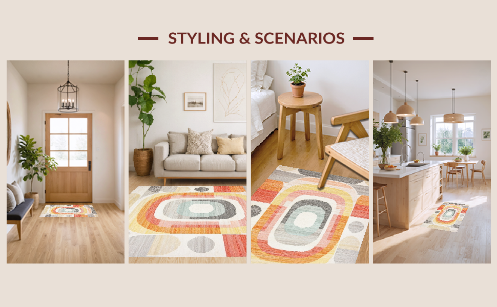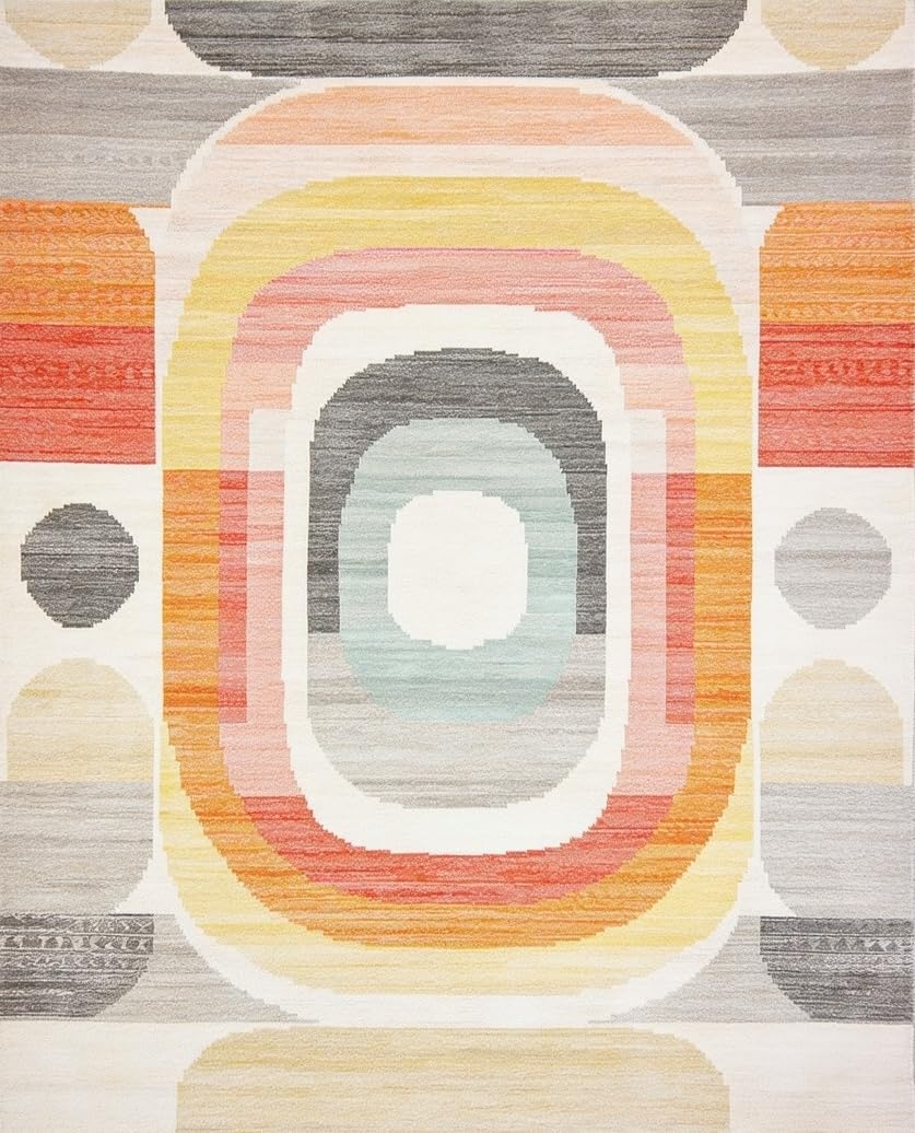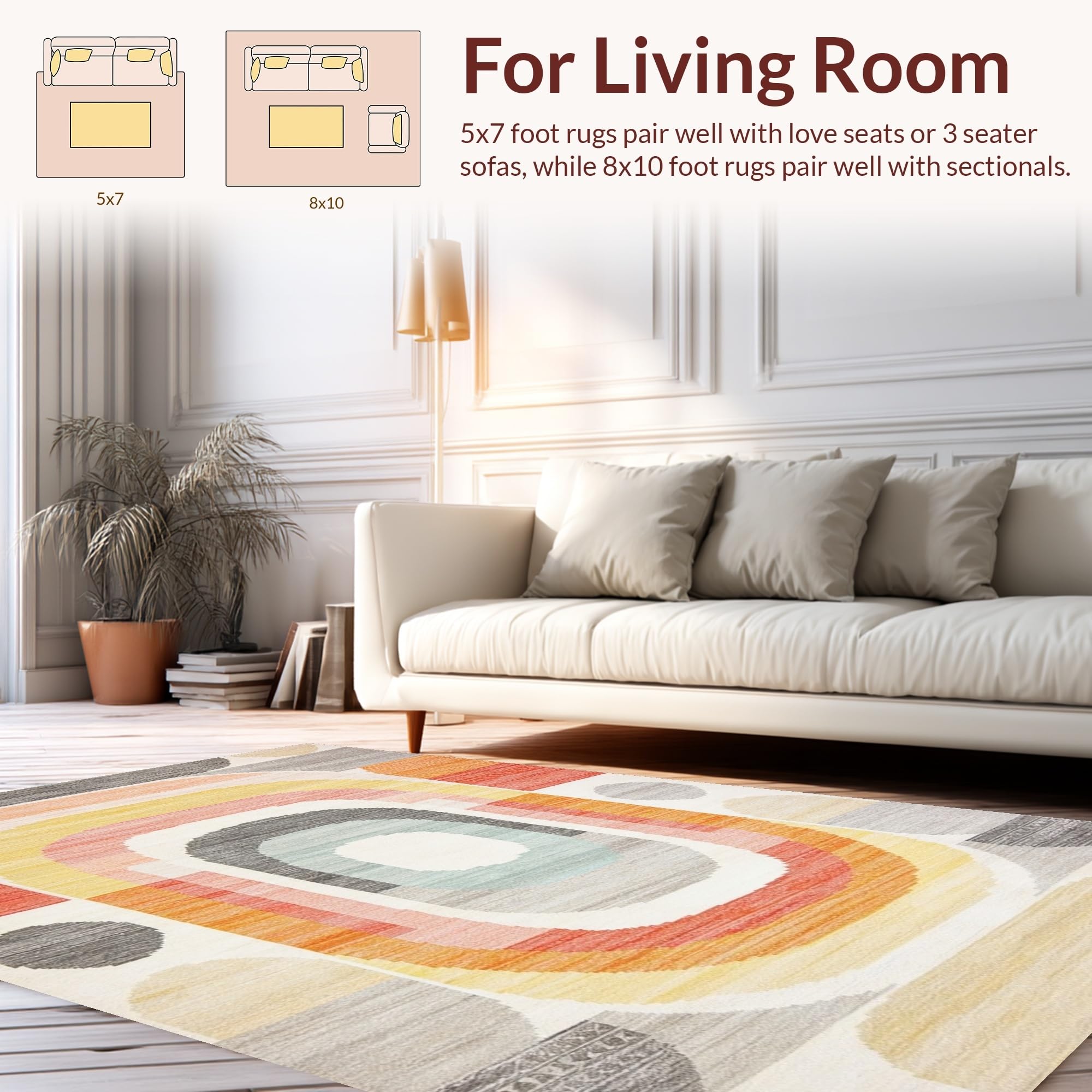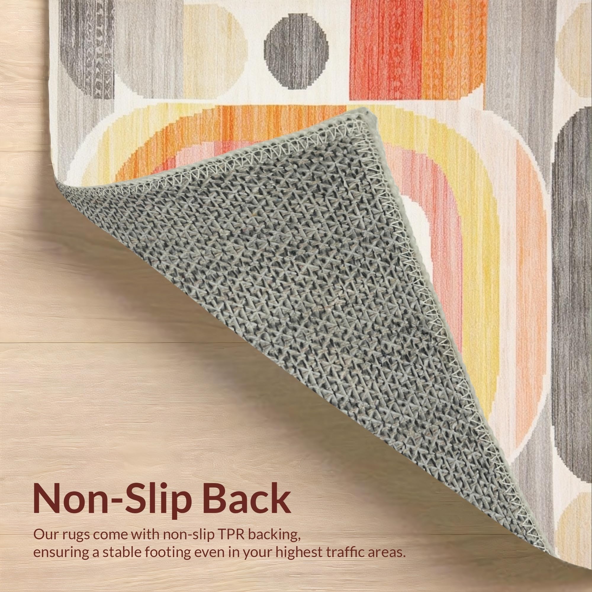 Ultra Soft Area Rug, Non Slip, Stain Resistant, Washable Area Rugs for Living Room, Bedroom, Elegant Soft Pastel Geometry(Orange) Overview: