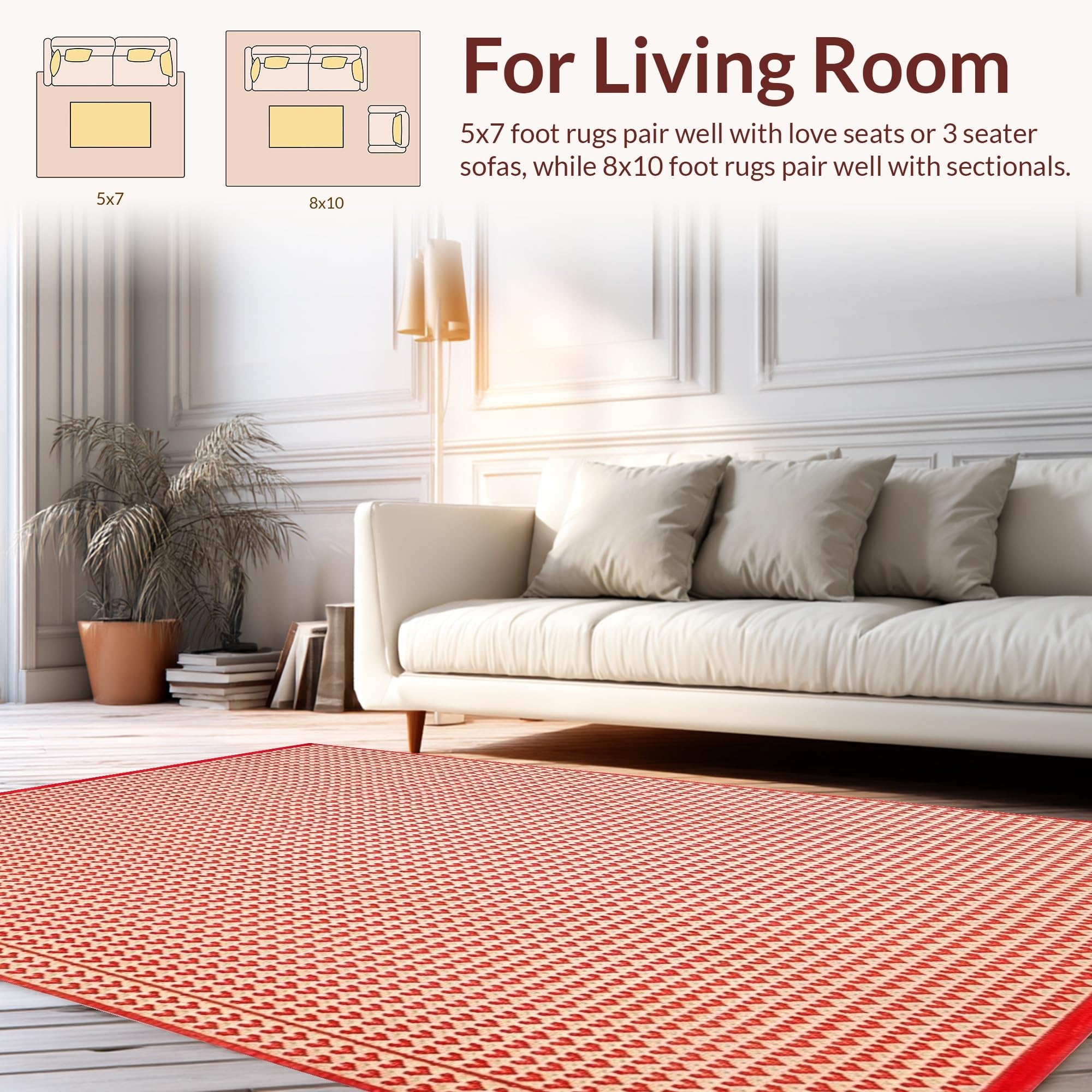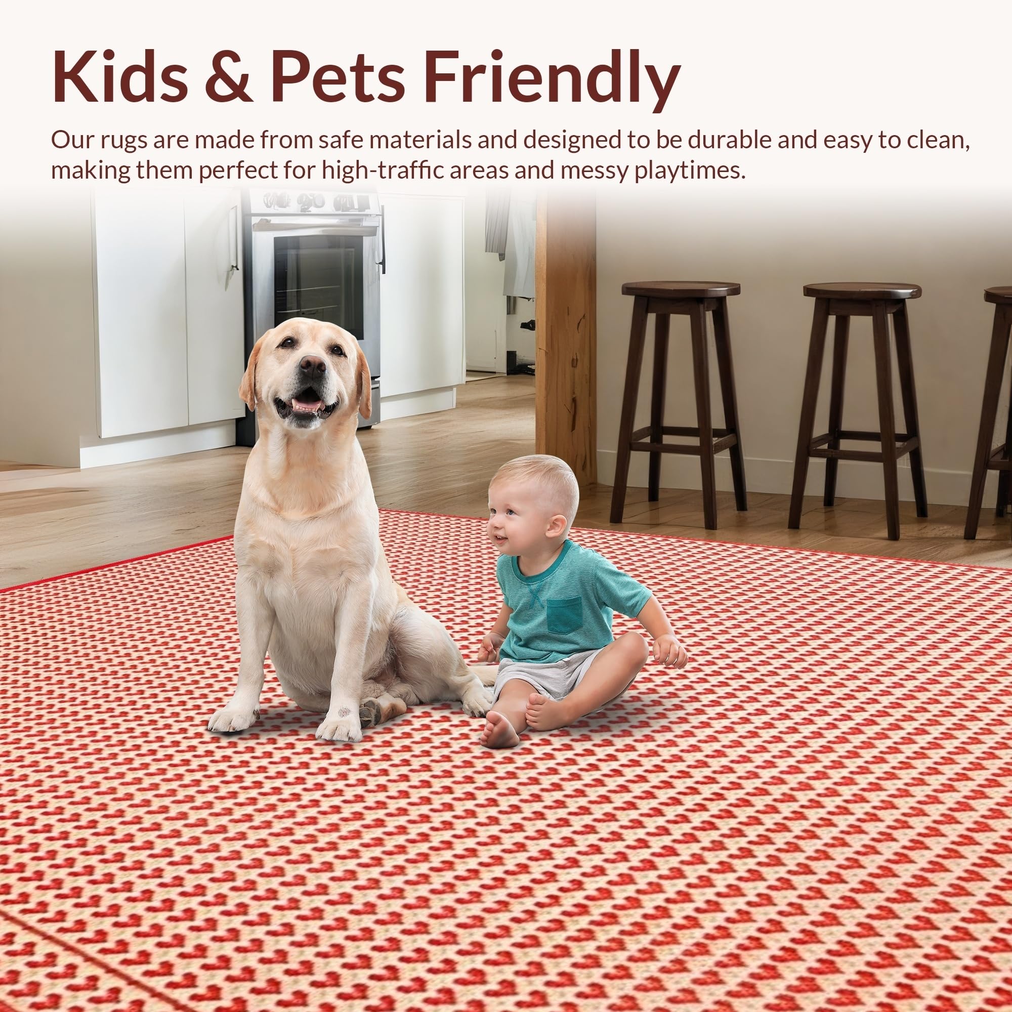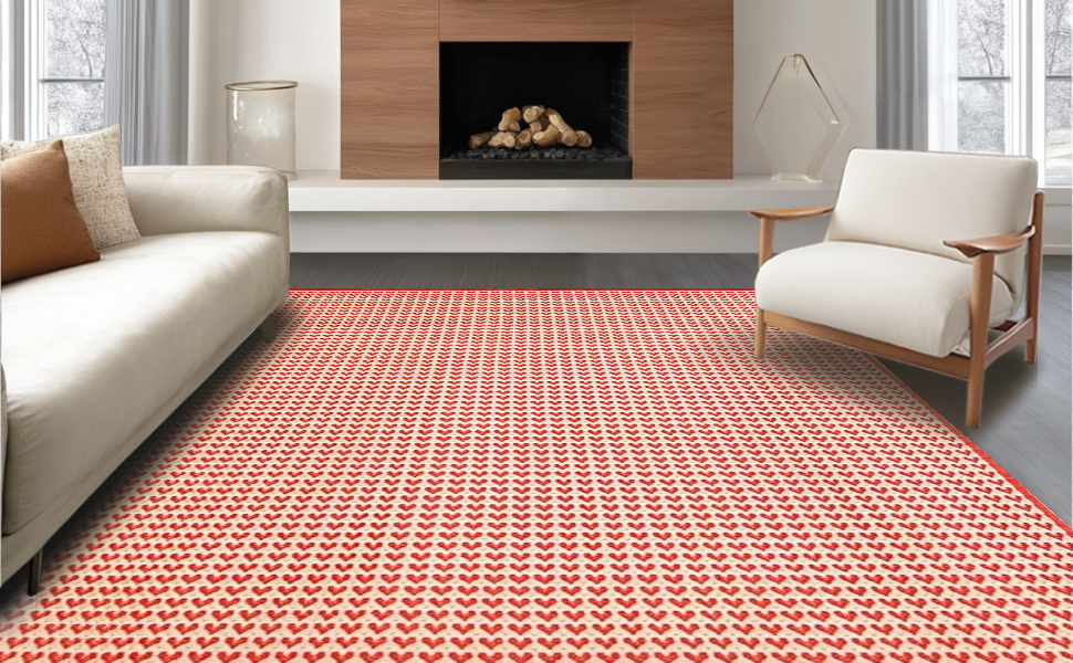 Ultra Soft Area Rug, Non Slip, Stain Resistant, Washable Area Rugs for Living Room, Bedroom, Elegant Soft Textured Heart Motif(Red) Overview: