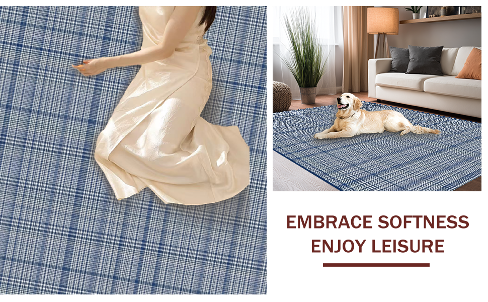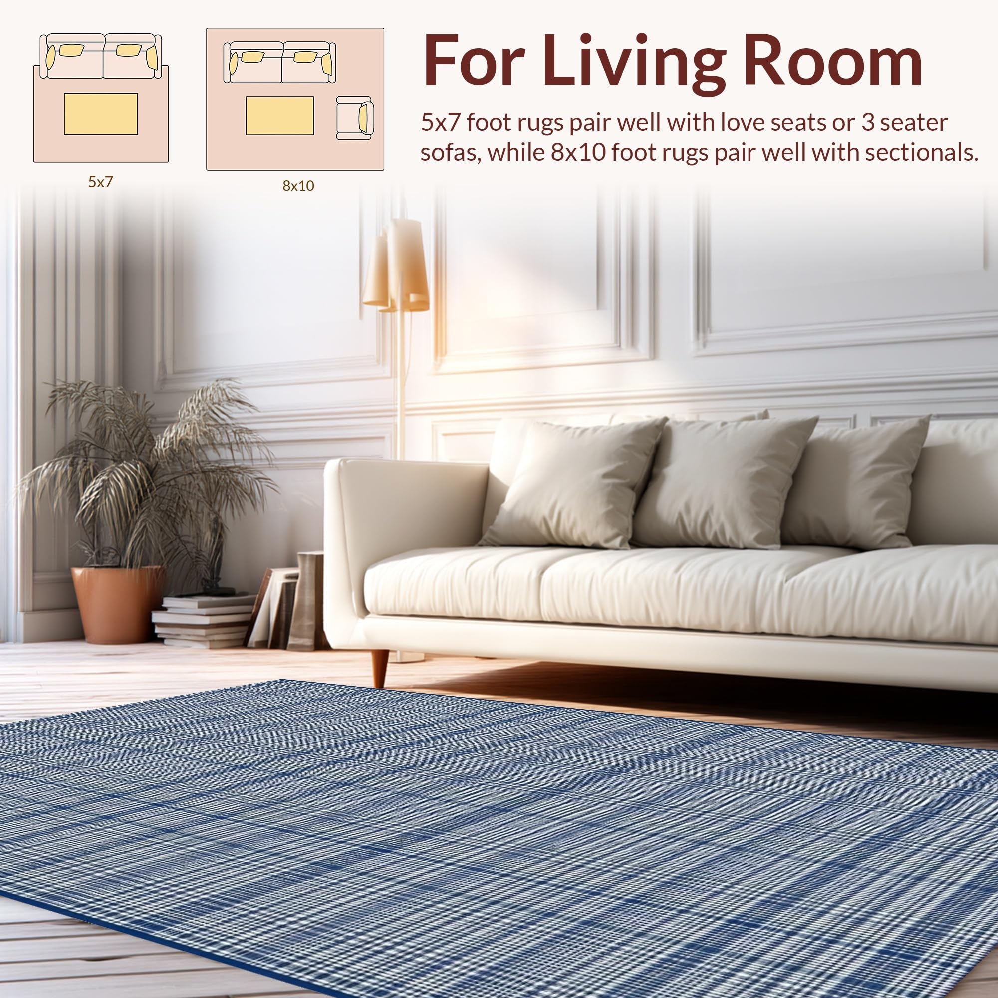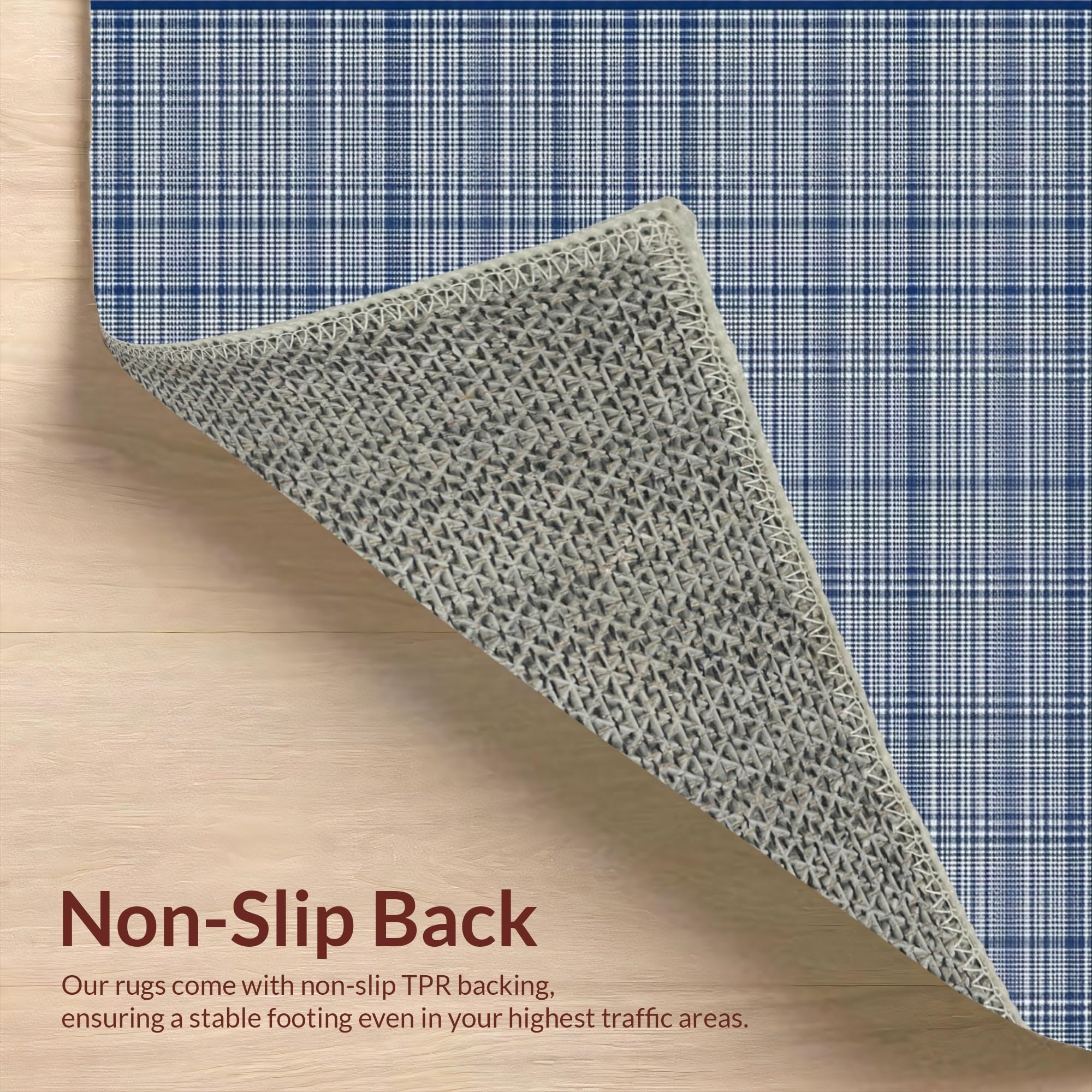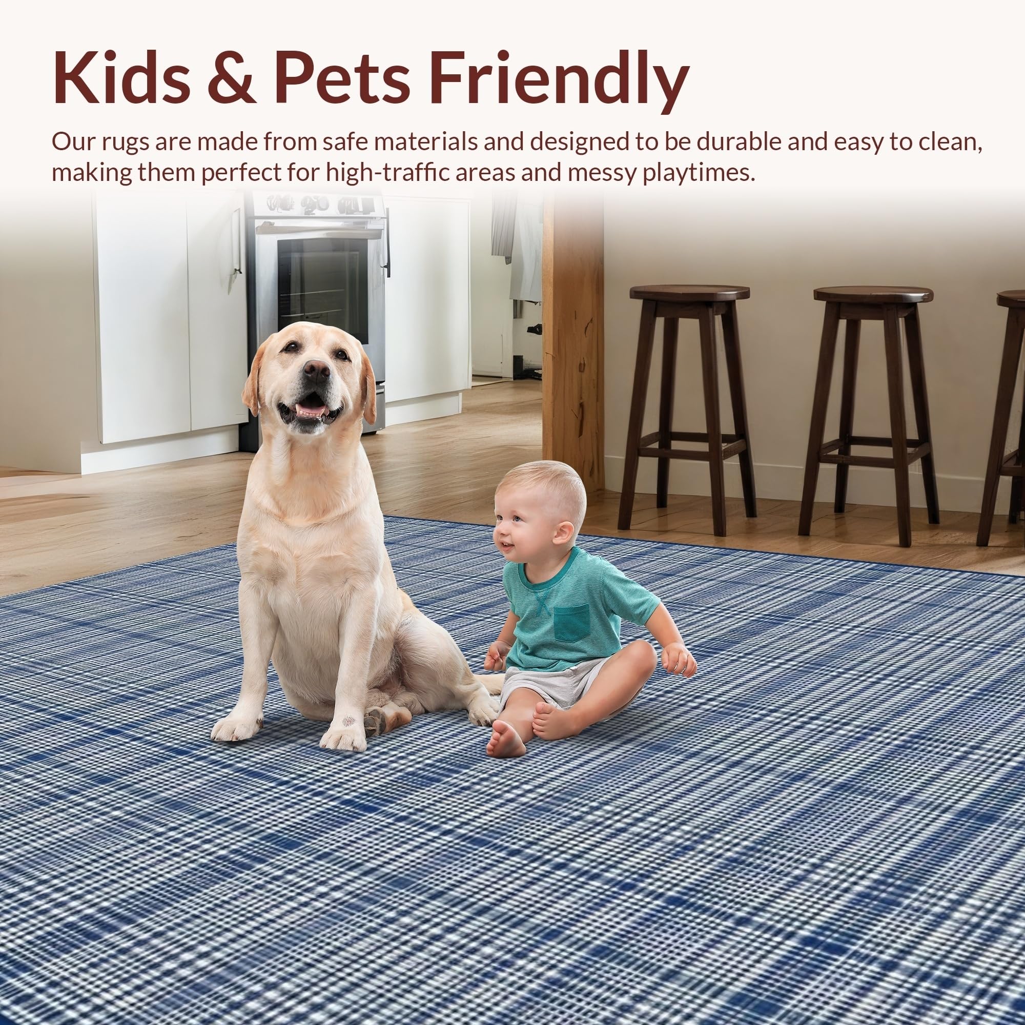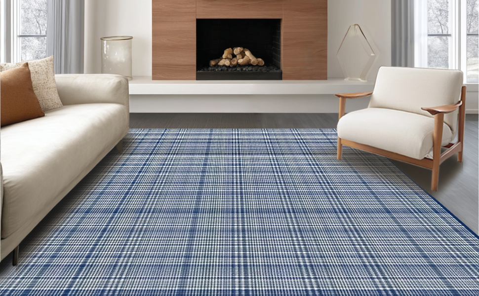 Ultra Soft Area Rug, Non Slip, Stain Resistant, Washable Area Rugs for Living Room, Bedroom, Elegant Soft Toned Buffalo Check Design(Blue) Overview: