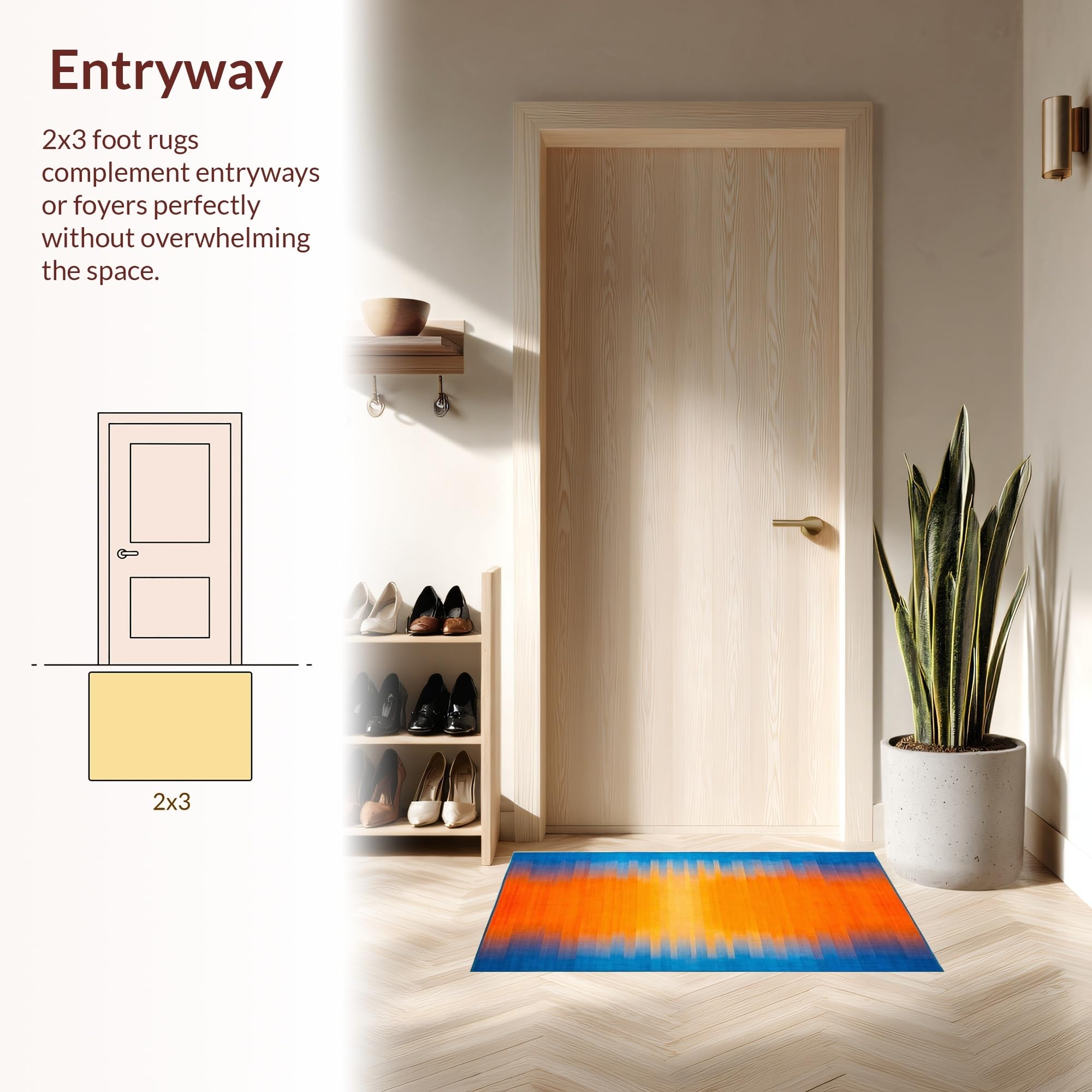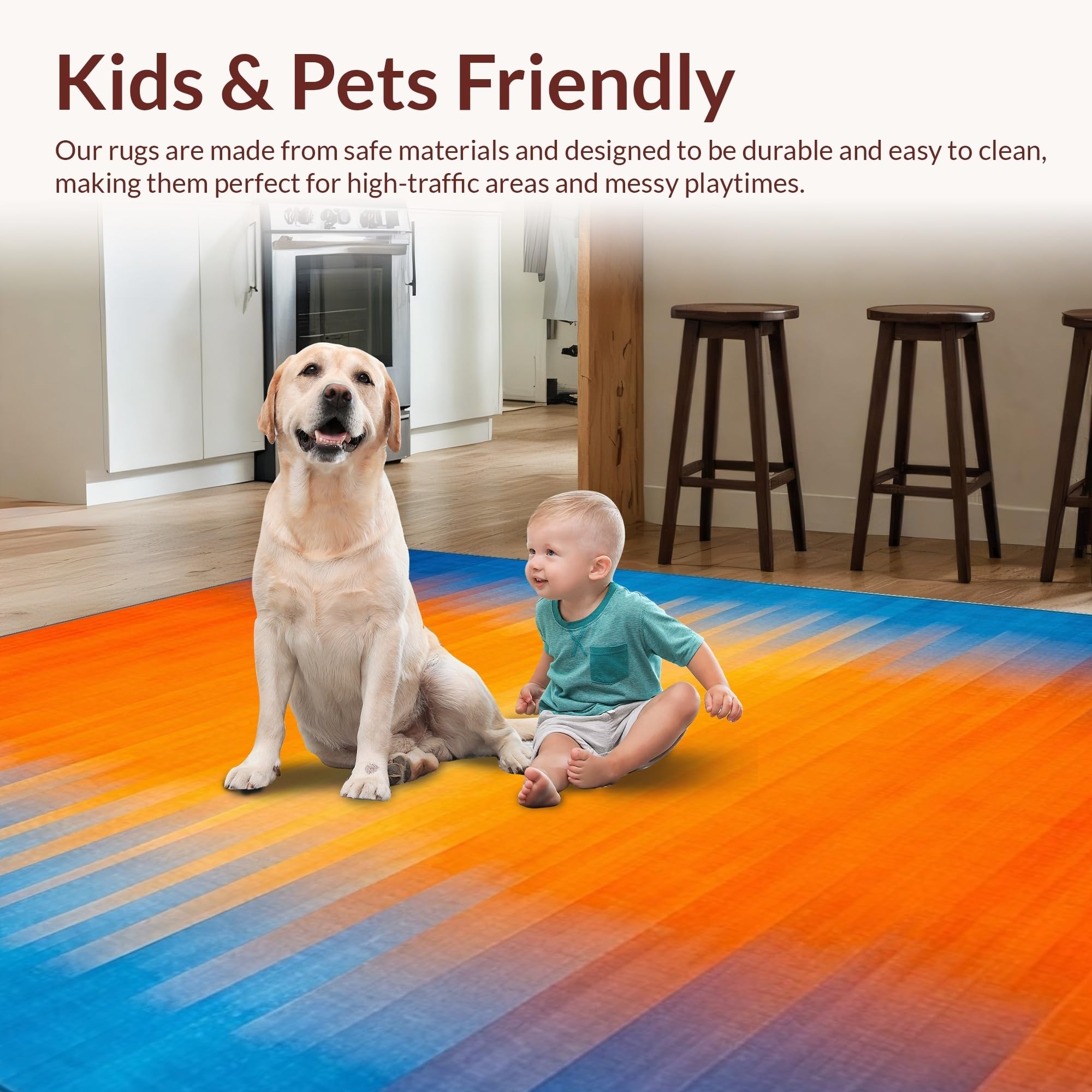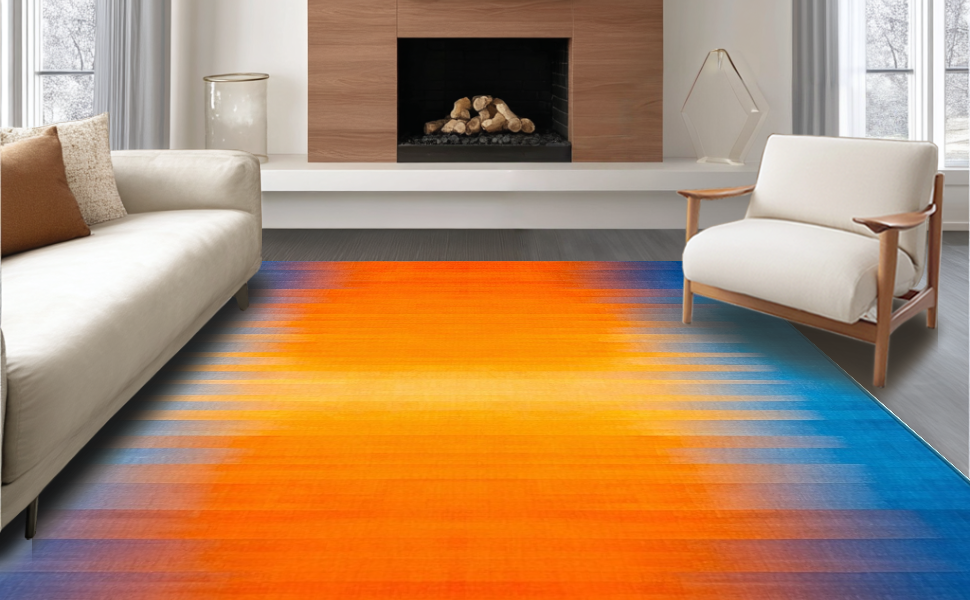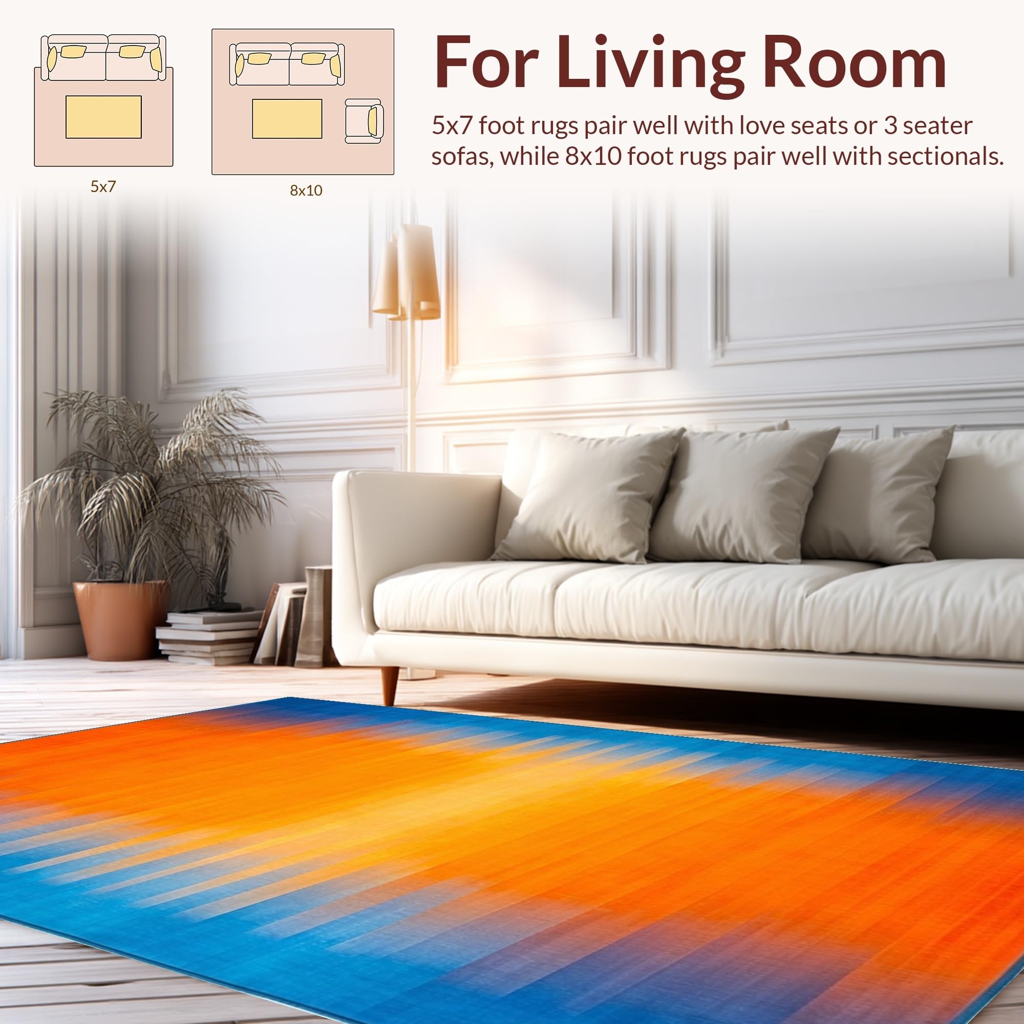 Ultra Soft Area Rug, Non Slip, Stain Resistant, Washable Area Rugs for Living Room, Bedroom, Elegant Soft Toned Ombre Style(Blue) Overview:
