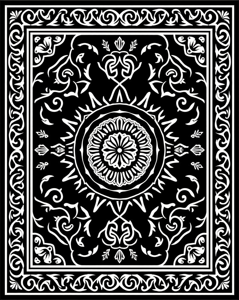 Drawing inspiration from the Hallowed-Halls of 19th-century Victorian libraries and the intricate linework of Neo-Gothic illustration, this design is a visual ode to the power of contrast. The void-black field acts as a silent stage where stark-white scrolls vine upward like winter ivy, reaching toward a sun-burst medallion that radiates with geometric precision. It is a dialogue between the old world and the new—where traditional Persian motifs are stripped of color to reveal their skeletal, architectural beauty. Step onto this tableau and the room undergoes an atmospheric shift: shadows sharpen, chaotic floorplans find sudden symmetry, and the air feels hushed and intentional. This is a design for the soul drawn to depth over decorum, the one who finds clarity in the binary of light and shadow. It is not merely a floor covering, but a declaration of presence. Don’t just fill your space—anchor it with a piece that balances history with a sharp, contemporary edge.
