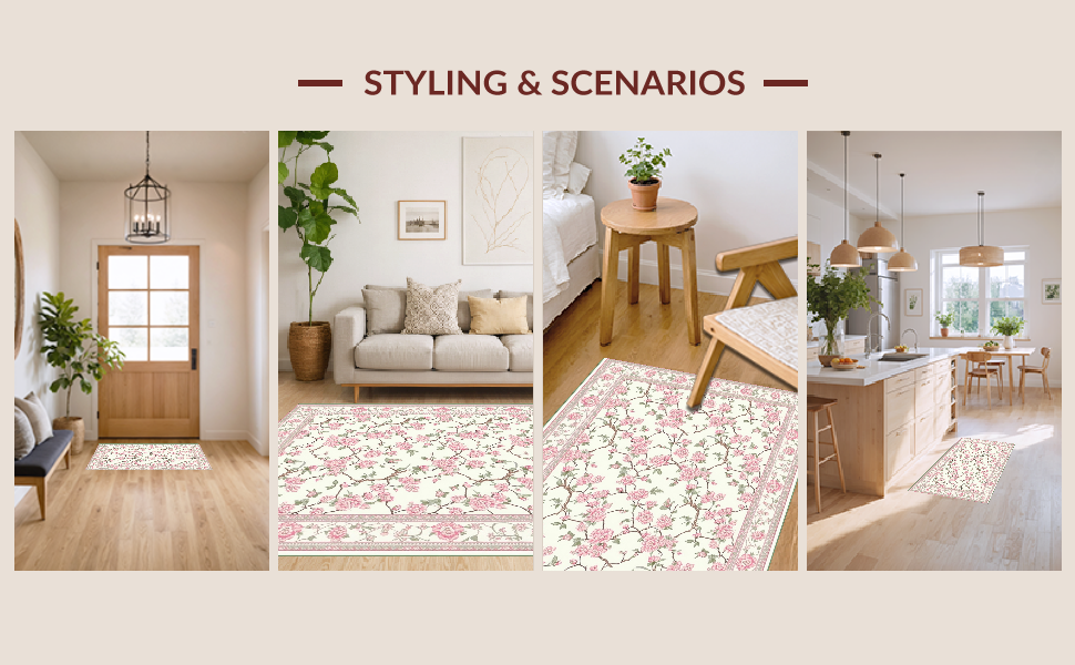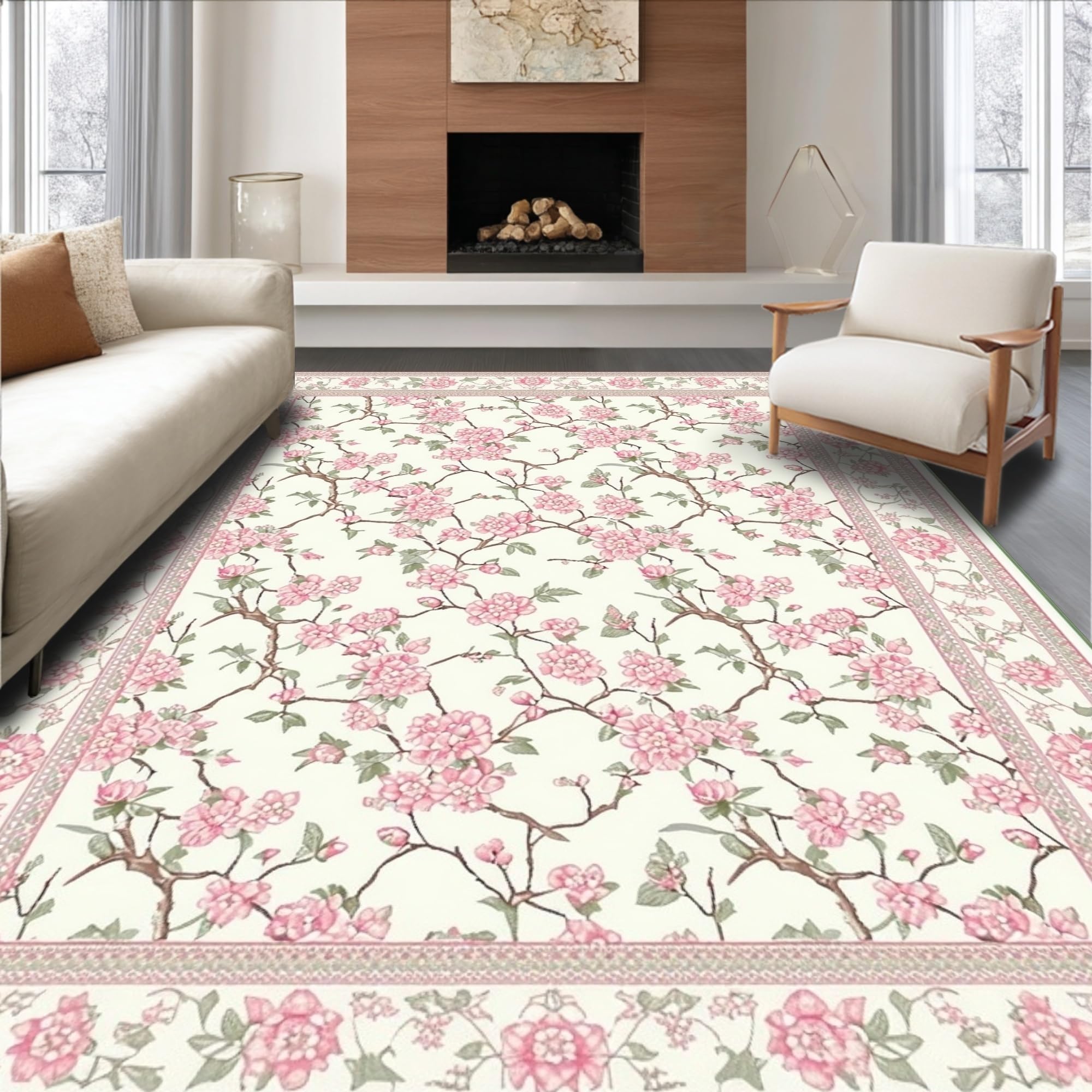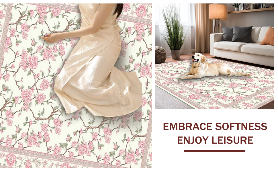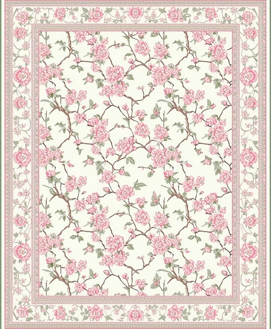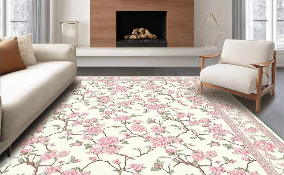 Ultra Soft Area Rug, Non Slip, Stain Resistant, Washable Area Rugs for Living Room, Bedroom, Elegant Springtime Floral Arrangement(Ivory) Overview: