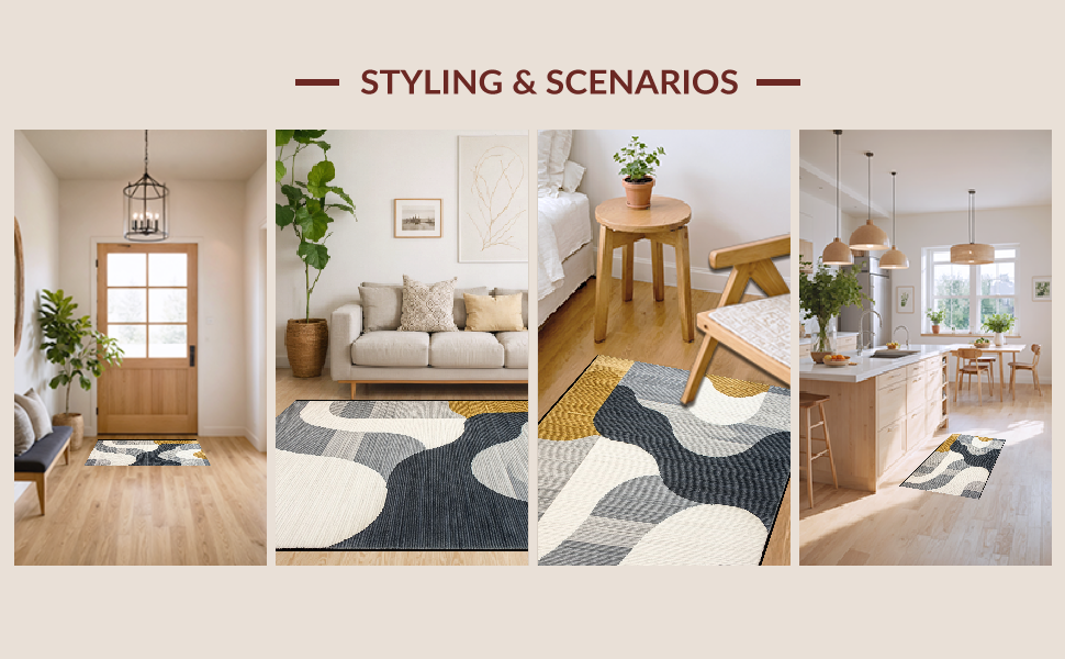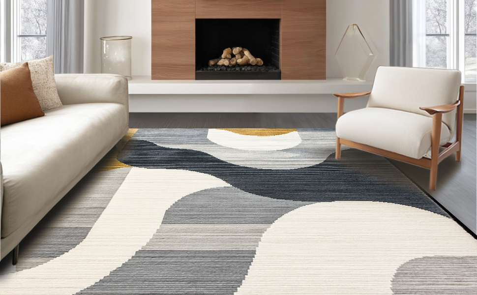Ultra Soft Area Rug, Non Slip, Stain Resistant, Washable Area Rugs for Living Room, Bedroom, Elegant Swirling Waves in Earthy Hues(Gray) Overview: