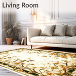 Flatwoven High Traffic Area Rug, Elegant Tan for Ornate Botanical Design, Non Slip, Stain Resistant, Washable Area Rugs for Living Room, Bedroom (Beige) Overview: