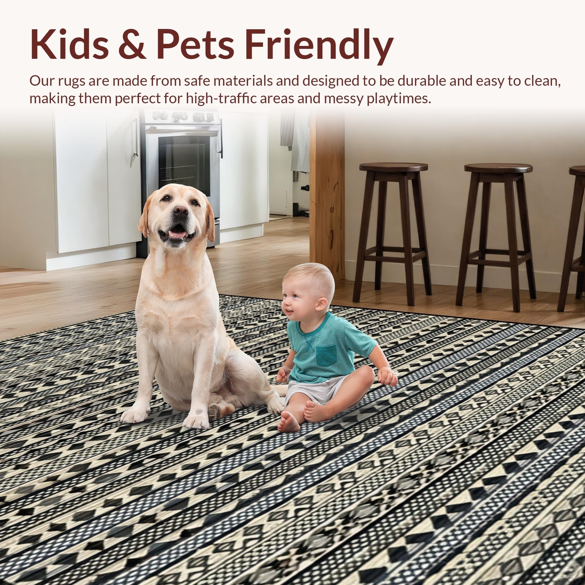 Ultra Soft Area Rug, Non Slip, Stain Resistant, Washable Area Rugs for Living Room, Bedroom, Elegant Textured Diamond Design(Black) Overview: