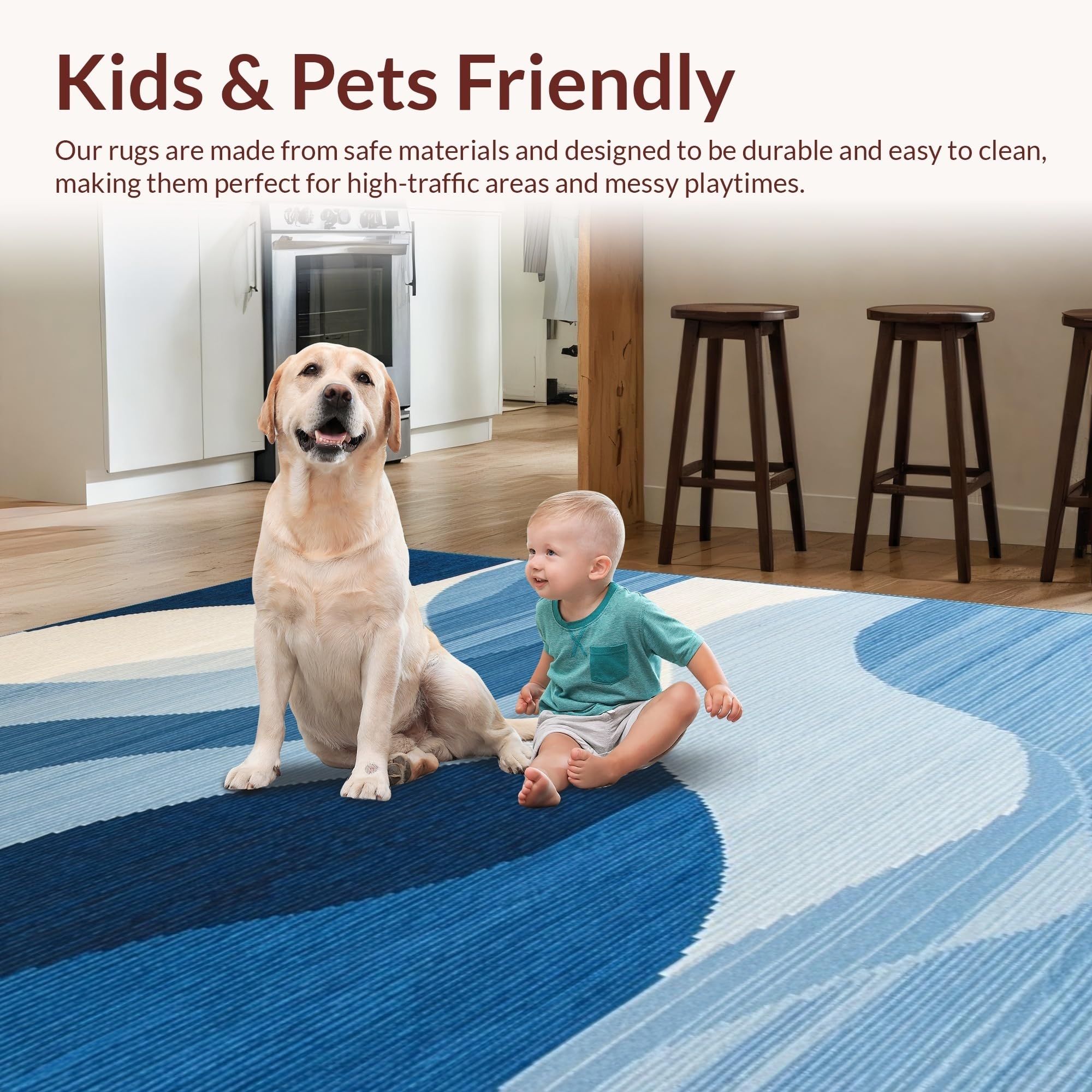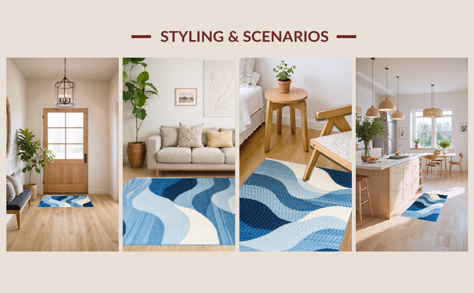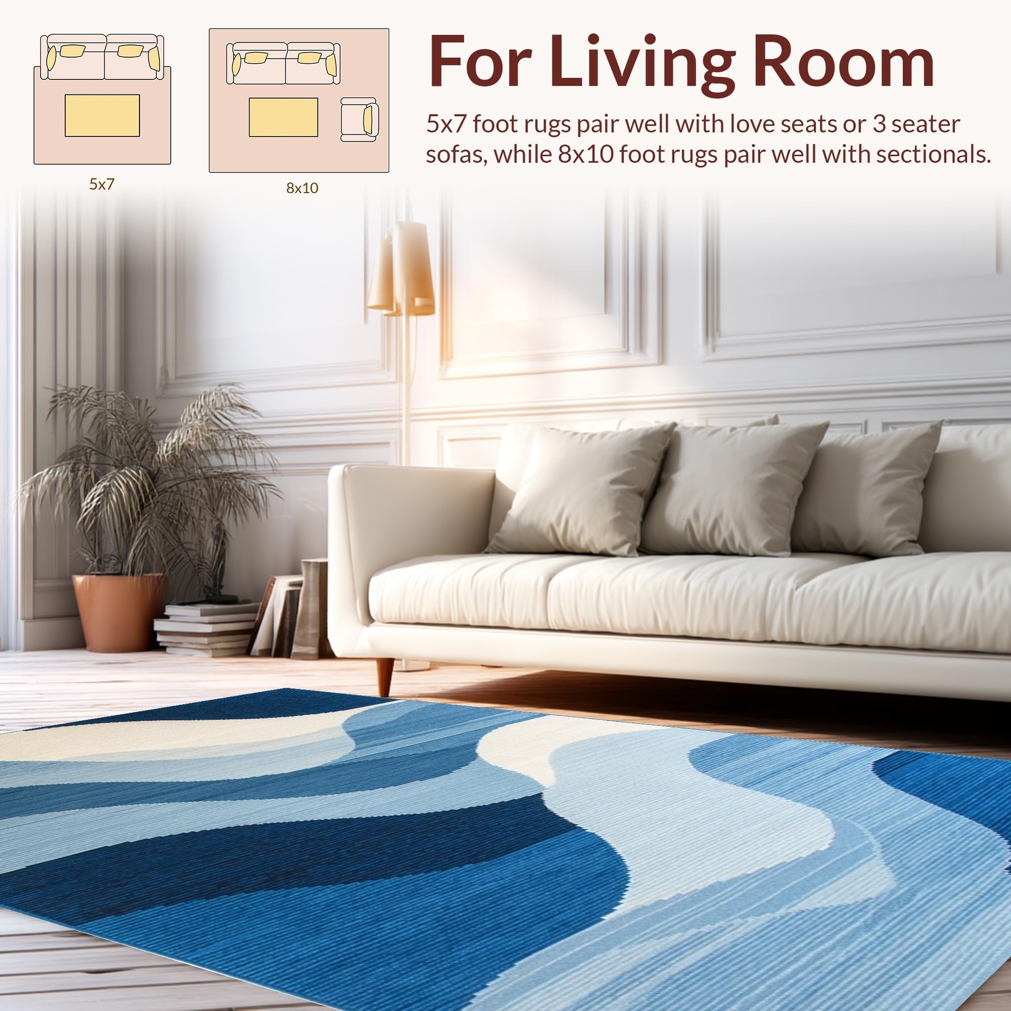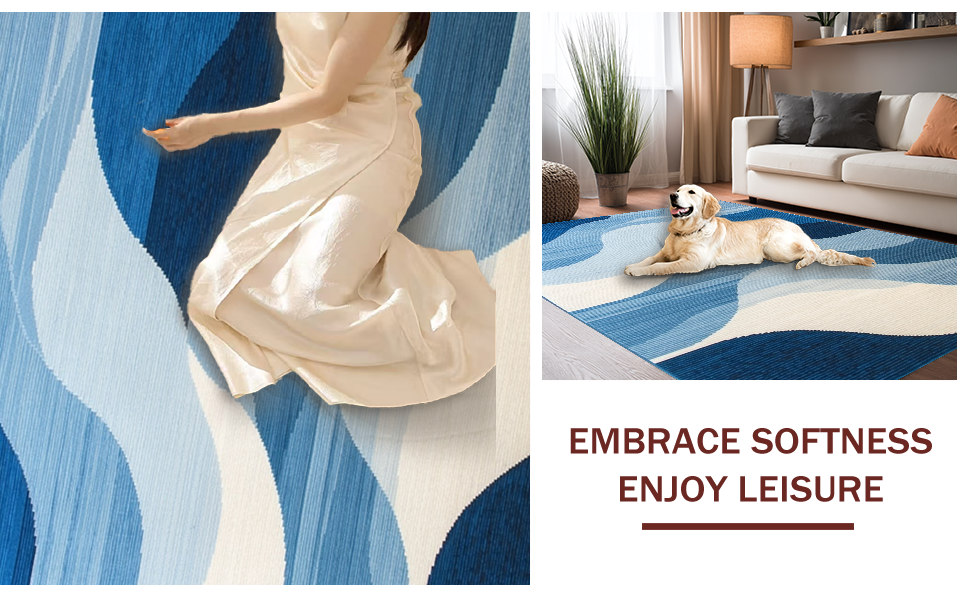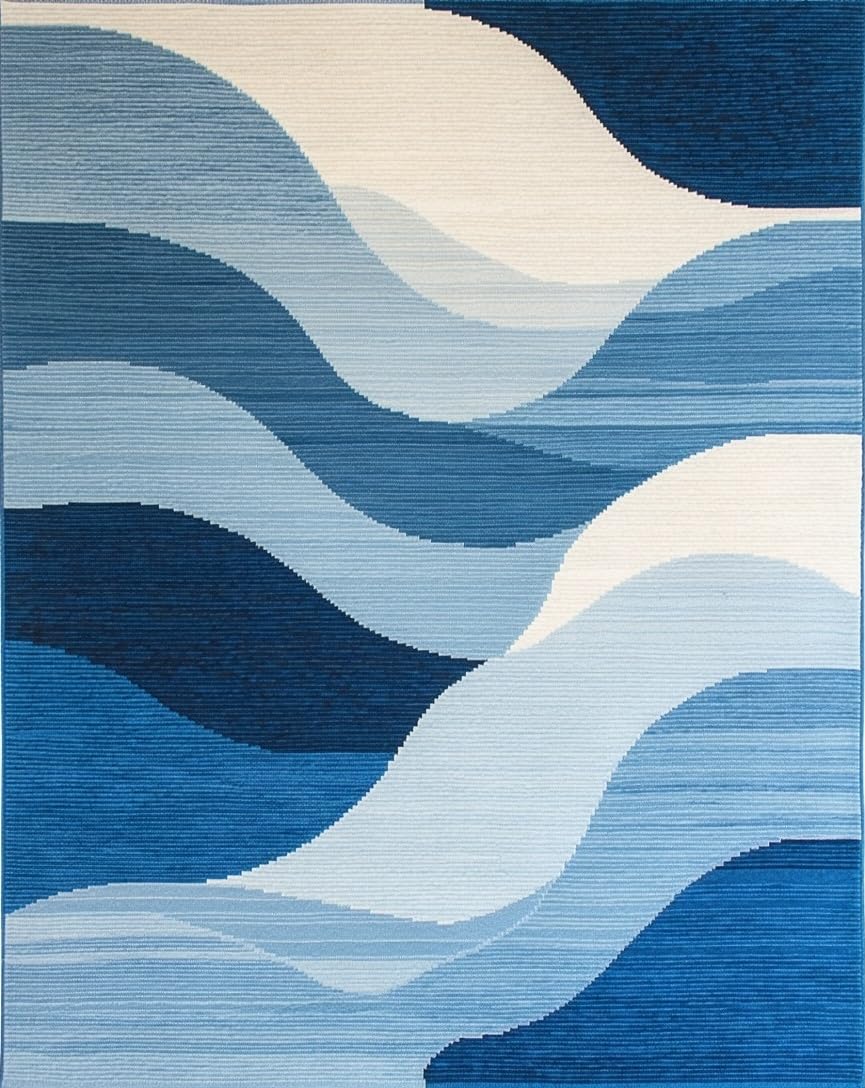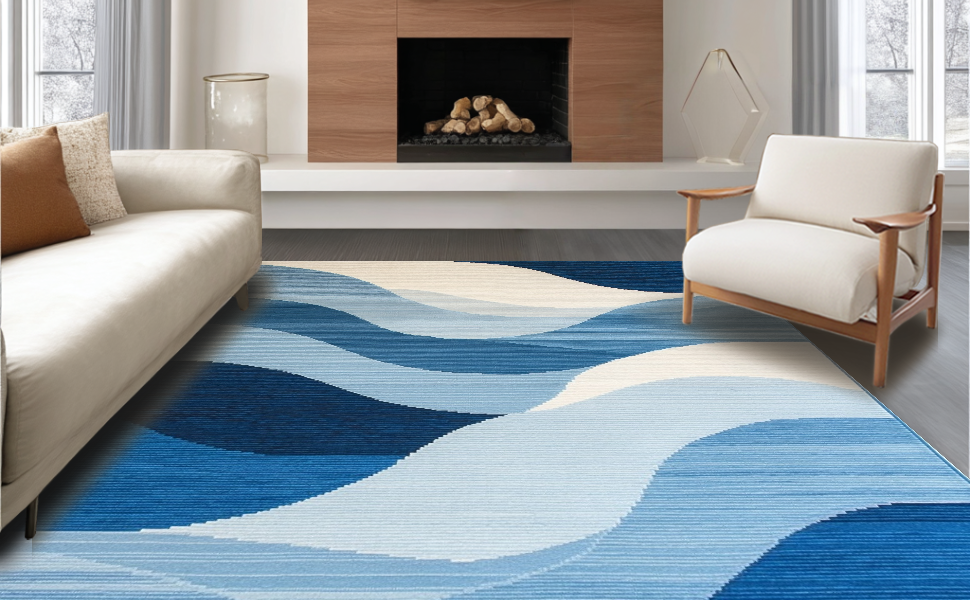 Ultra Soft Area Rug, Non Slip, Stain Resistant, Washable Area Rugs for Living Room, Bedroom, Elegant Textured Linear Elements(Blue) Overview: