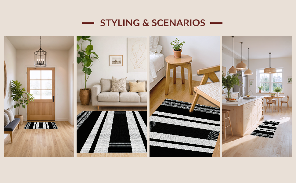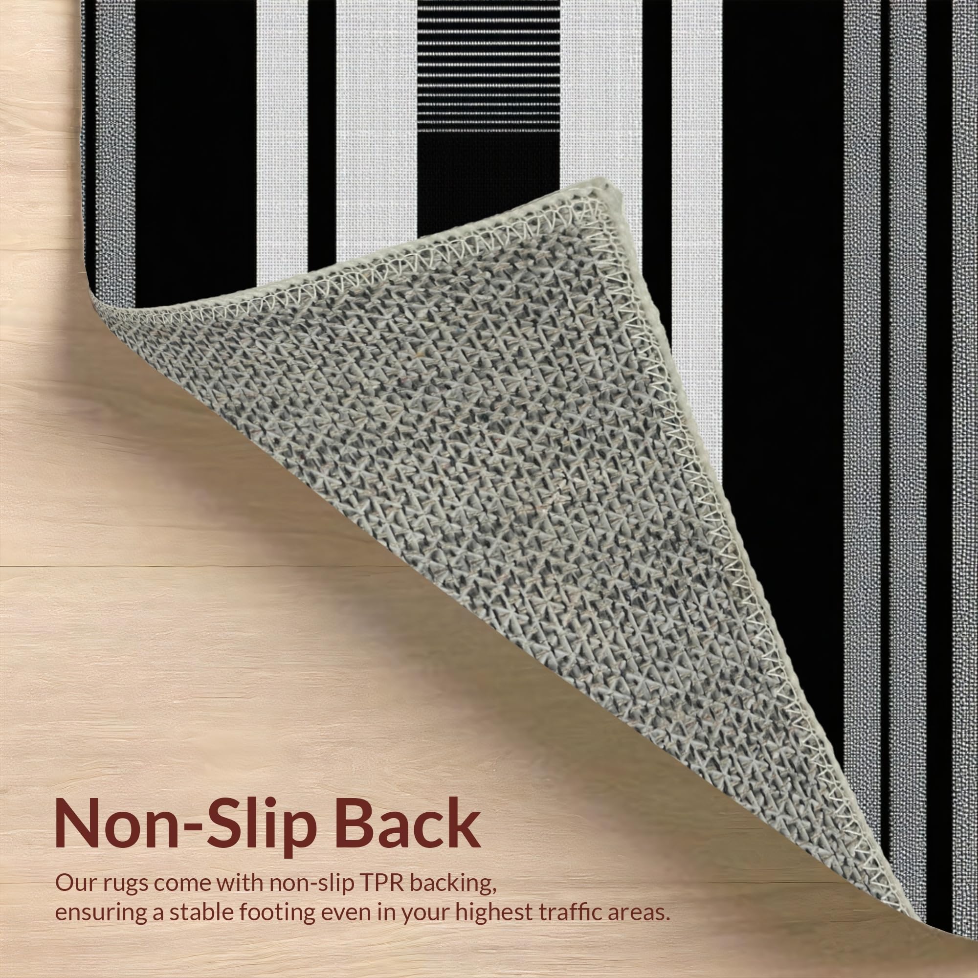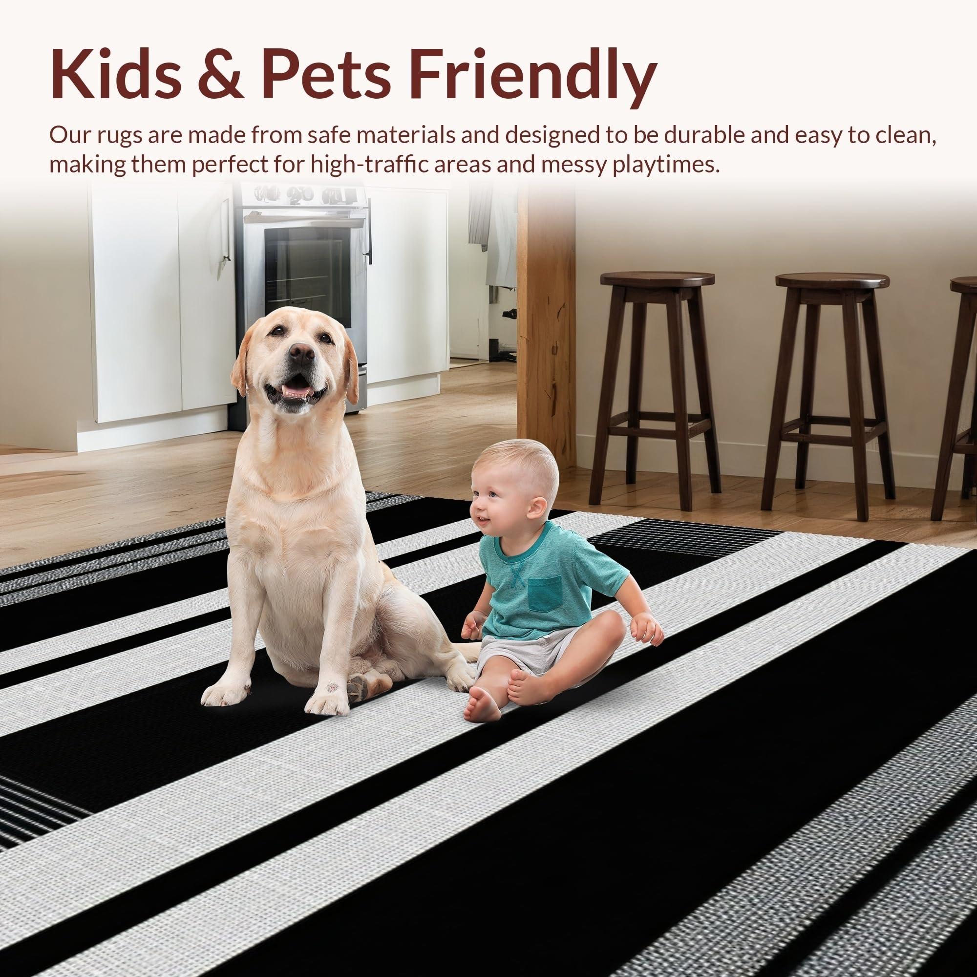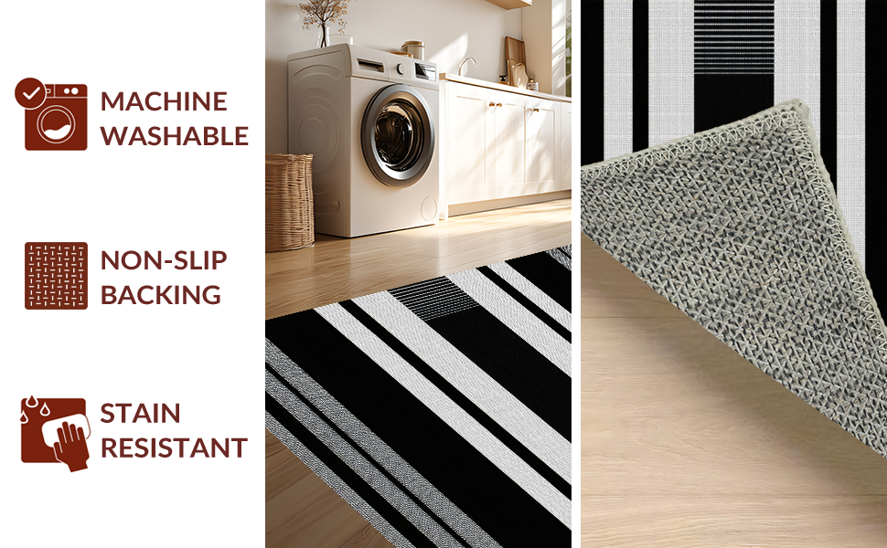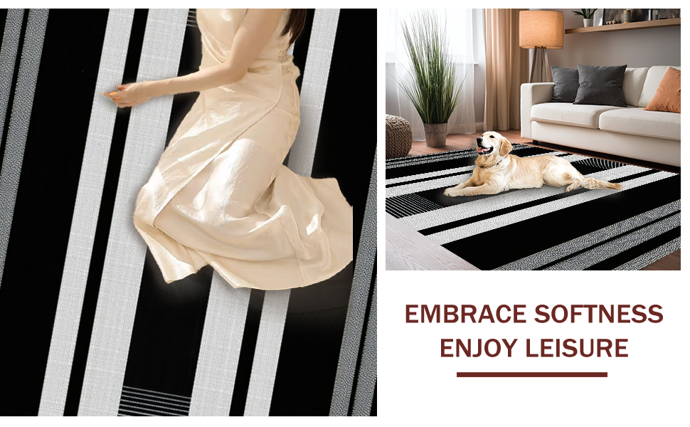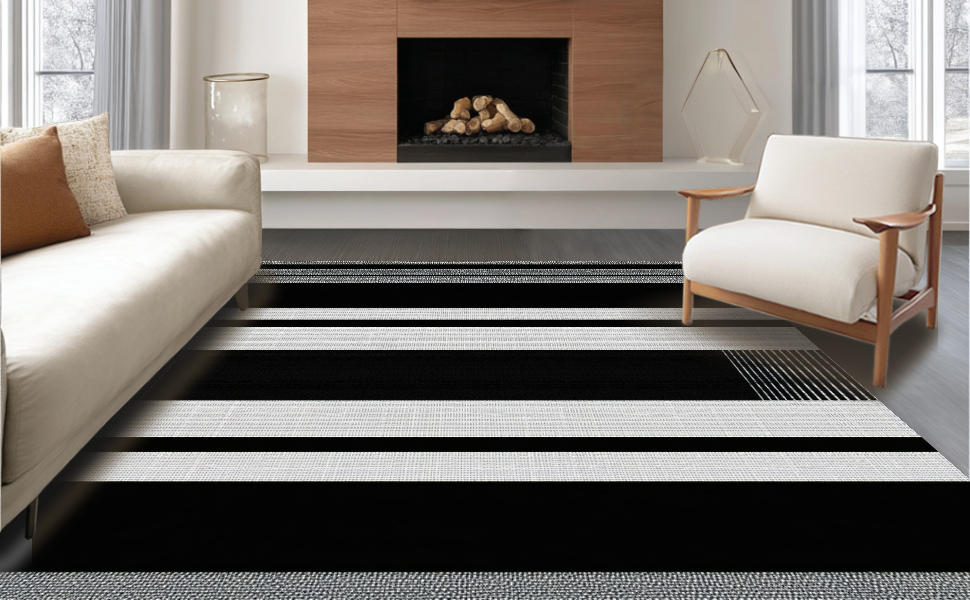 Ultra Soft Area Rug, Non Slip, Stain Resistant, Washable Area Rugs for Living Room, Bedroom, Elegant Textured Neutral Palette(Black) Overview: