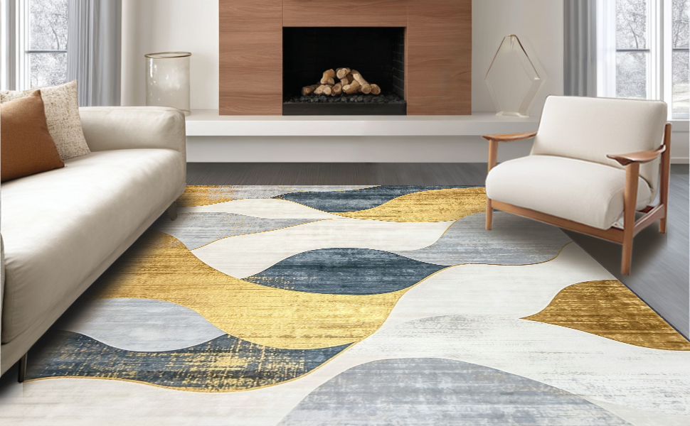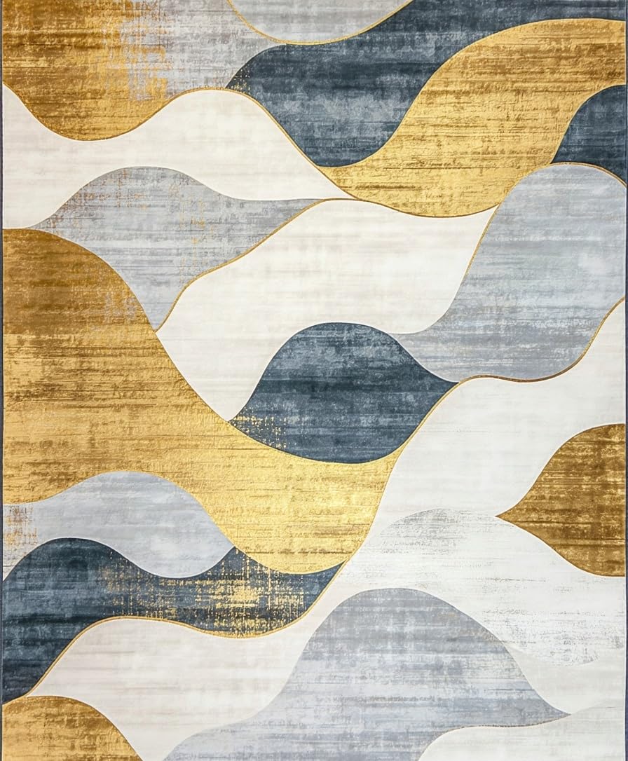 Ultra Soft Area Rug, Non Slip, Stain Resistant, Washable Area Rugs for Living Room, Bedroom, Elegant Textured Ogee Motif(Gold) Overview: