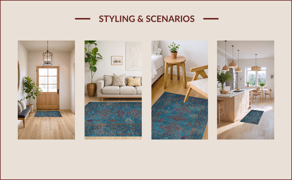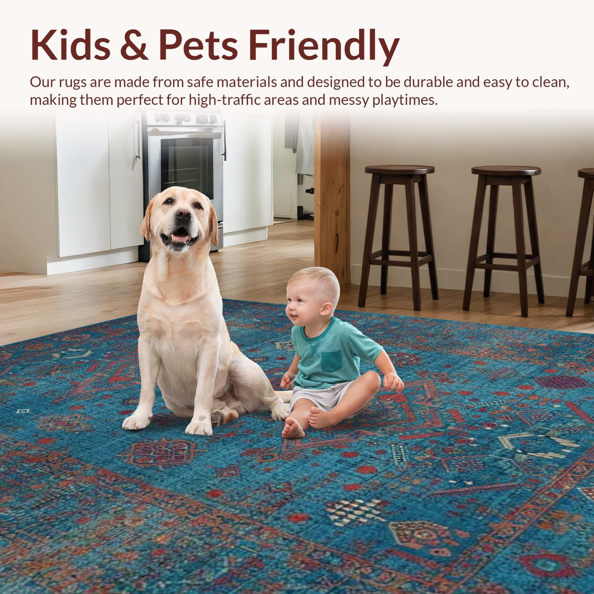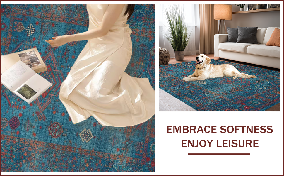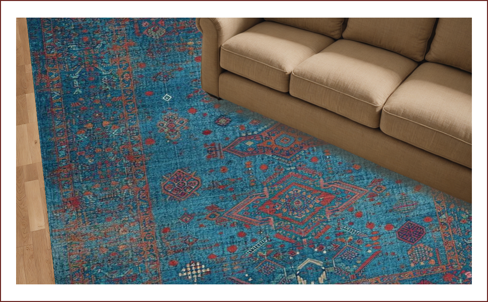 Ultra Soft Area Rug, Non Slip, Stain Resistant, Washable Area Rugs for Living Room, Bedroom, Elegant Textured Rustic Aesthetic(Blue) Overview: