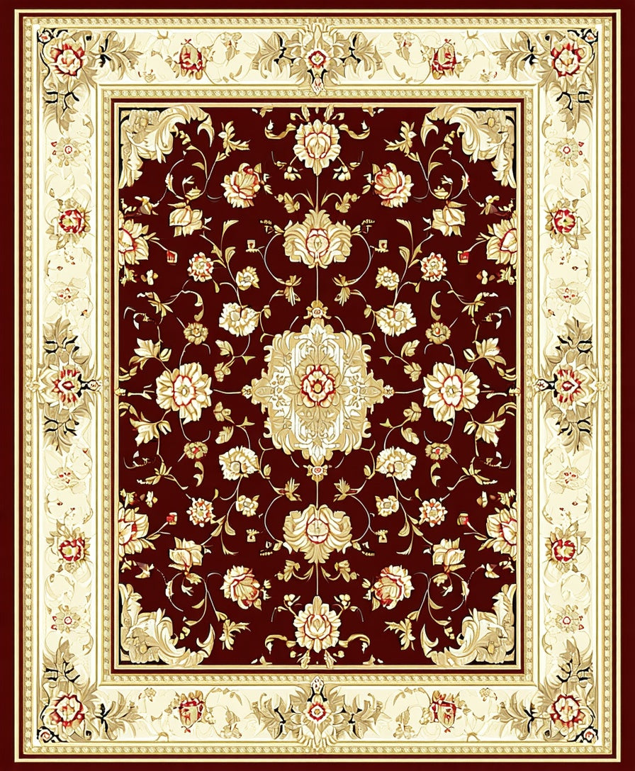 Elegant Traditional Floral Medallion(Red)