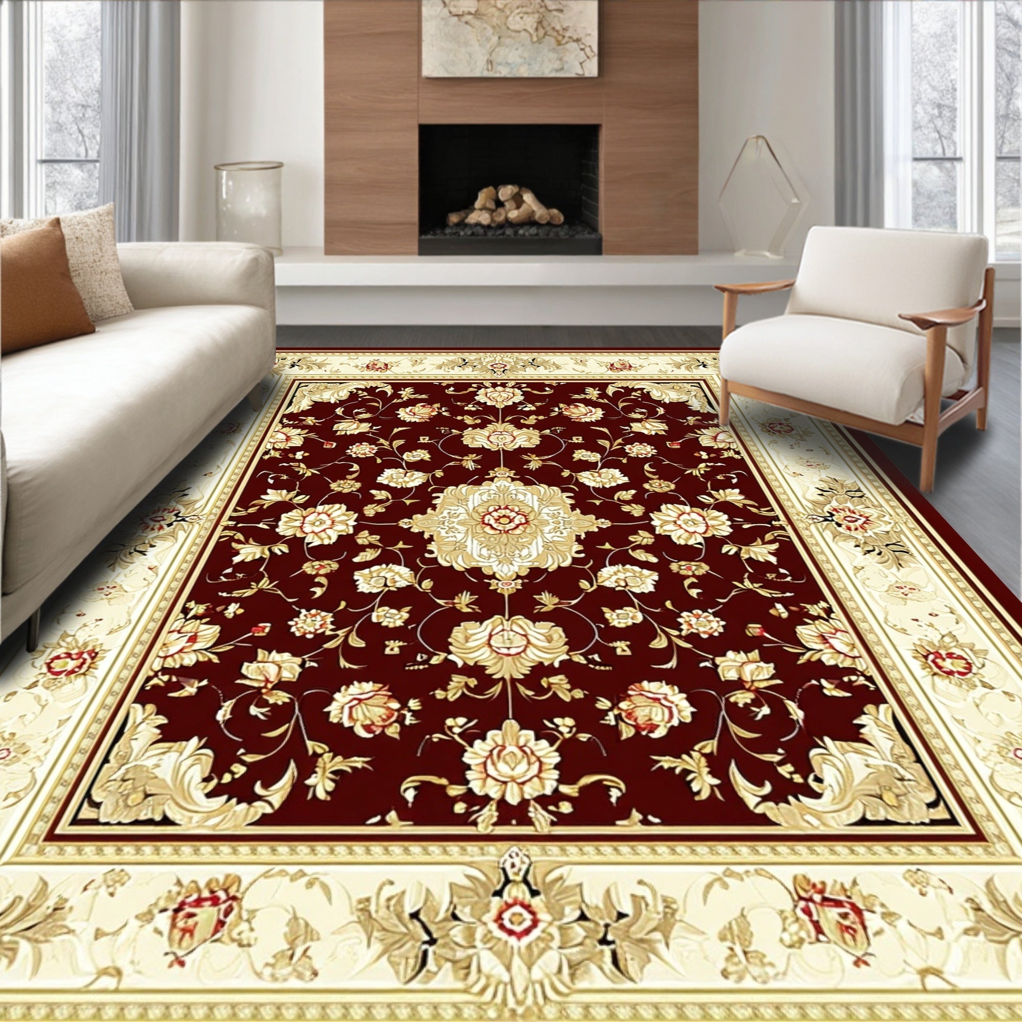 Flatwoven High Traffic Area Rug, Elegant Traditional Floral Medallion, Non Slip, Stain Resistant, Washable Area Rugs for Living Room, Bedroom (Red) Overview: