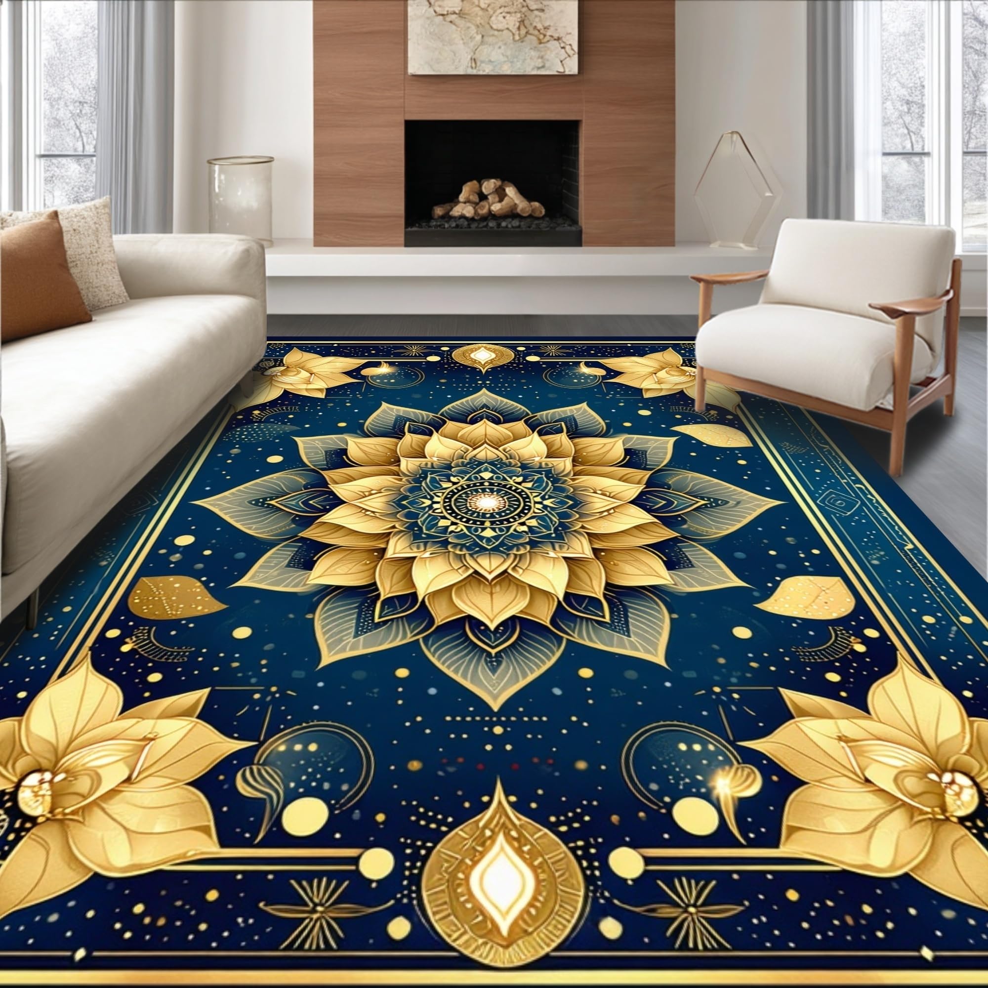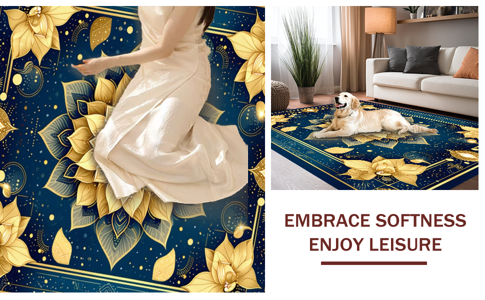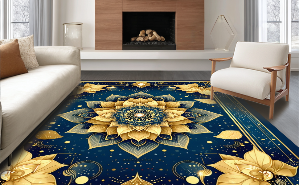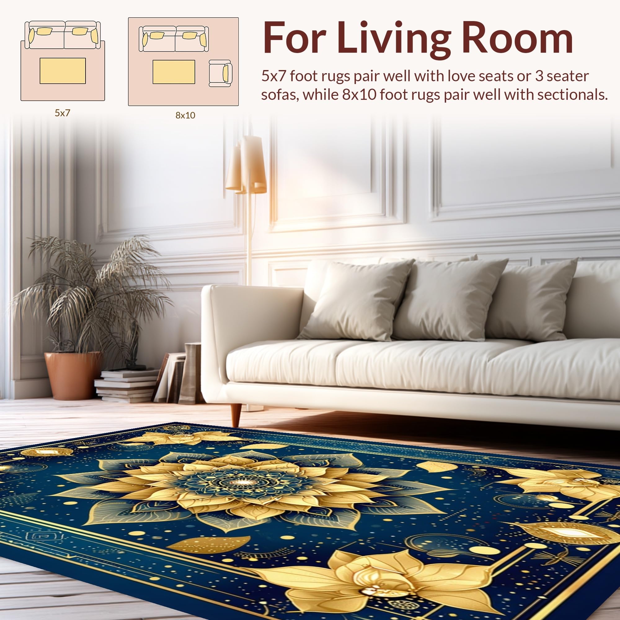 Ultra Soft Area Rug, Non Slip, Stain Resistant, Washable Area Rugs for Living Room, Bedroom, Elegant Transitional Medallion Design(Gold) Overview:
