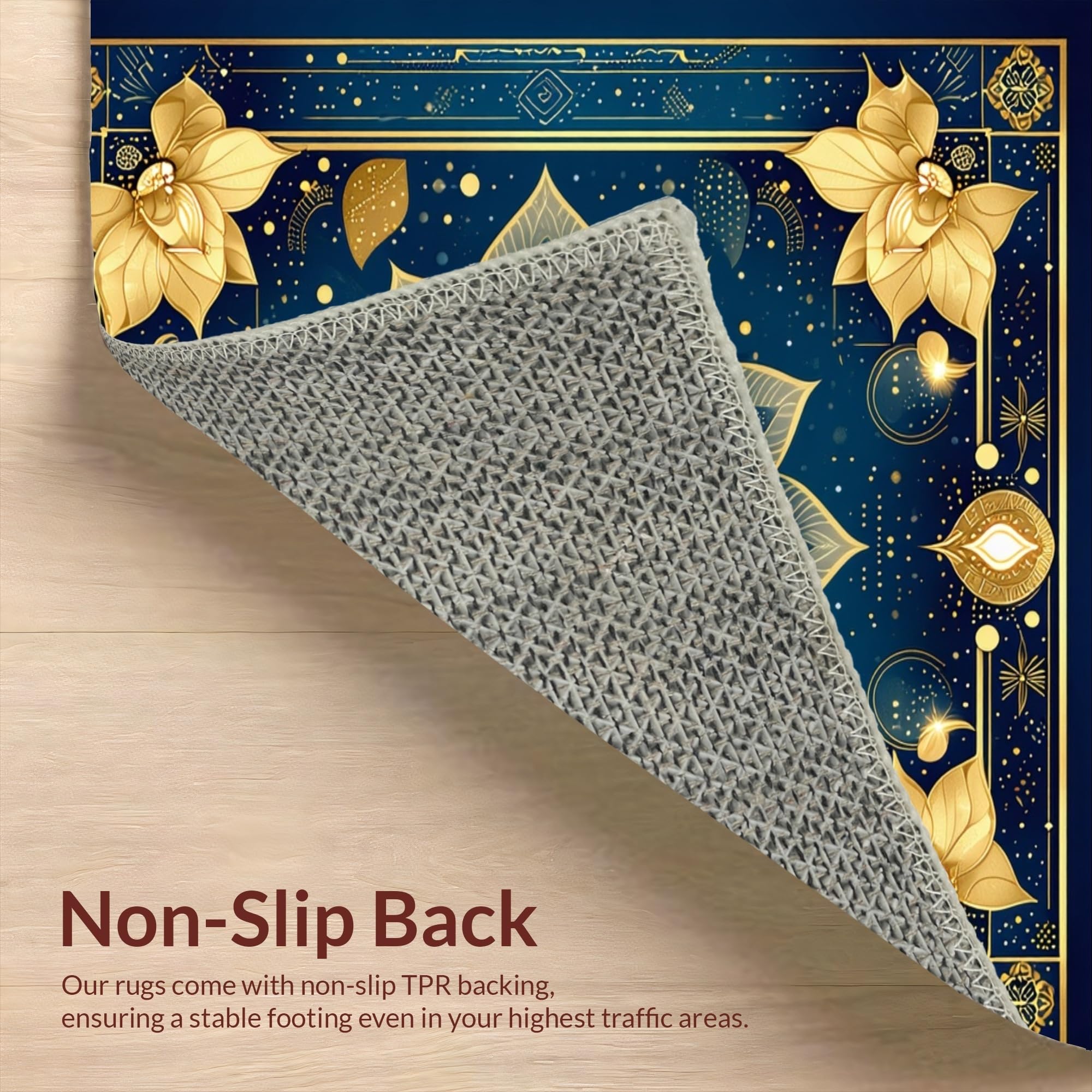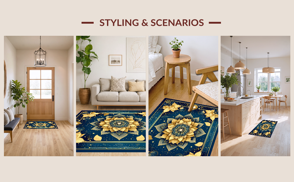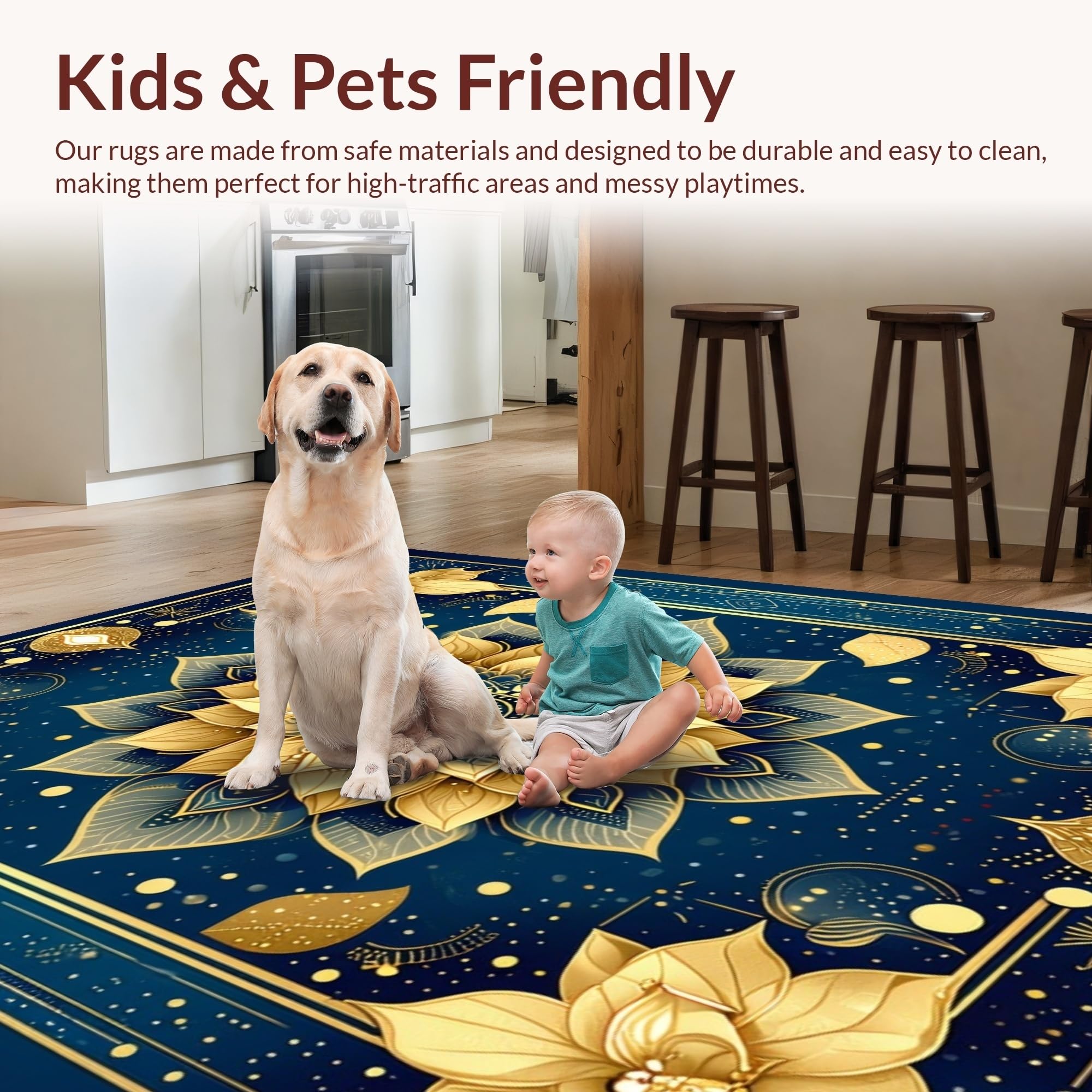Ultra Soft Area Rug, Non Slip, Stain Resistant, Washable Area Rugs for Living Room, Bedroom, Elegant Transitional Medallion Design(Gold) Overview: