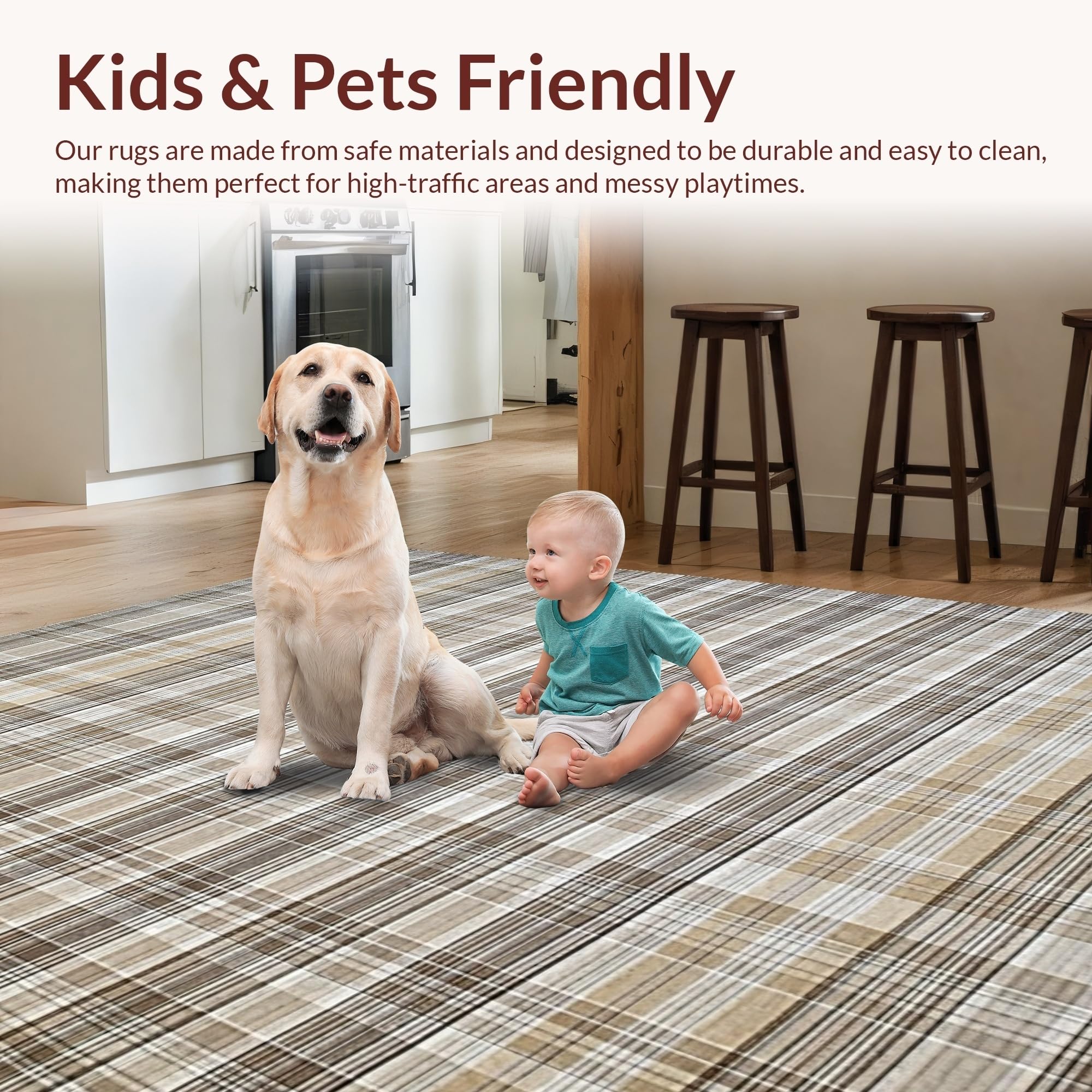 Ultra Soft Area Rug, Non Slip, Stain Resistant, Washable Area Rugs for Living Room, Bedroom, Elegant Transitional Textile Design(Beige) Overview: