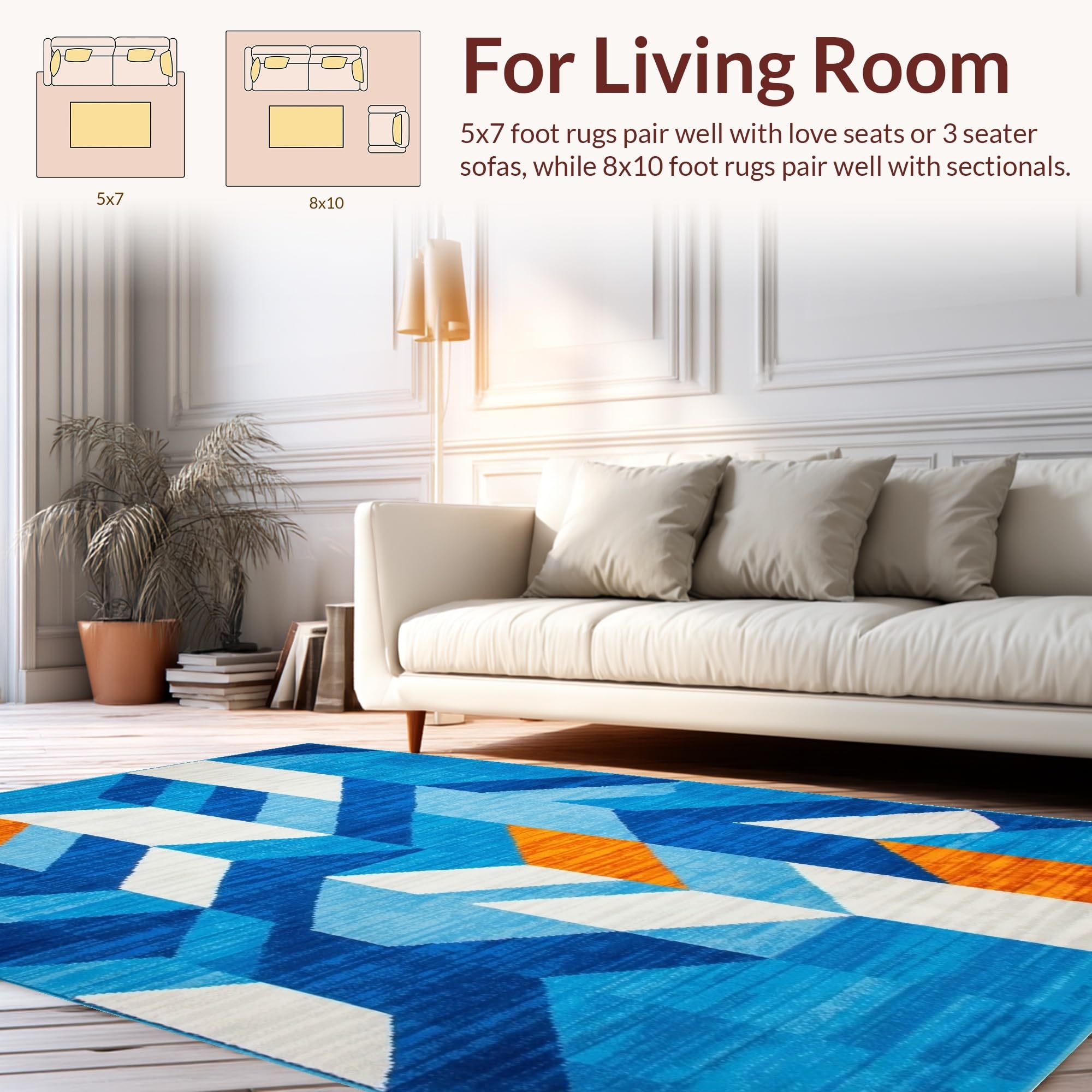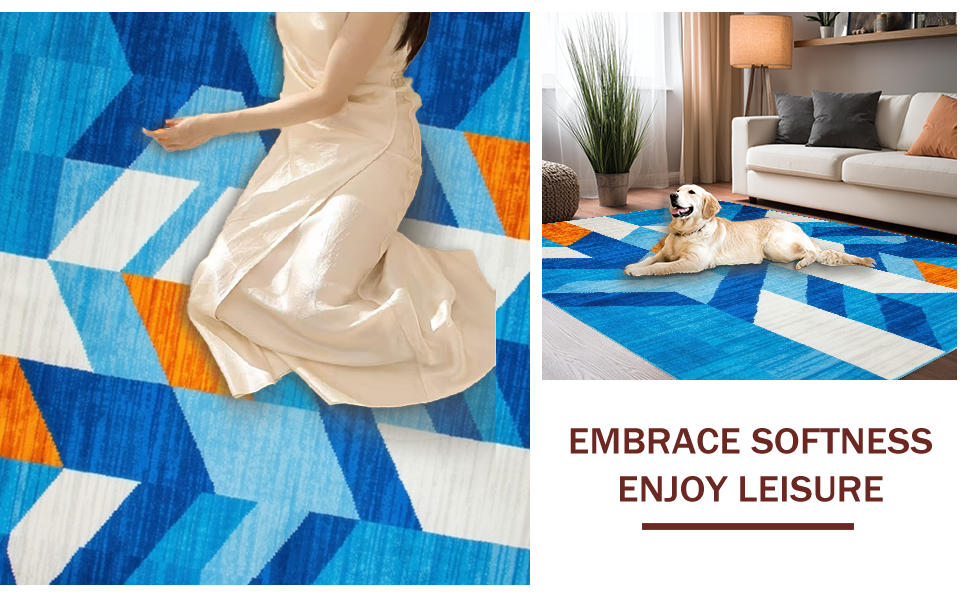 Ultra Soft Area Rug, Non Slip, Stain Resistant, Washable Area Rugs for Living Room, Bedroom, Elegant Trellis Blue Hues(Blue) Overview: