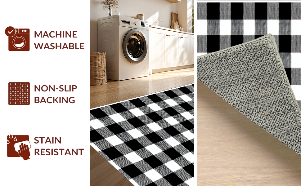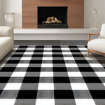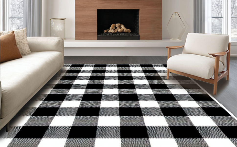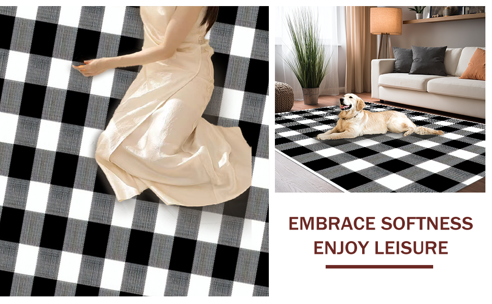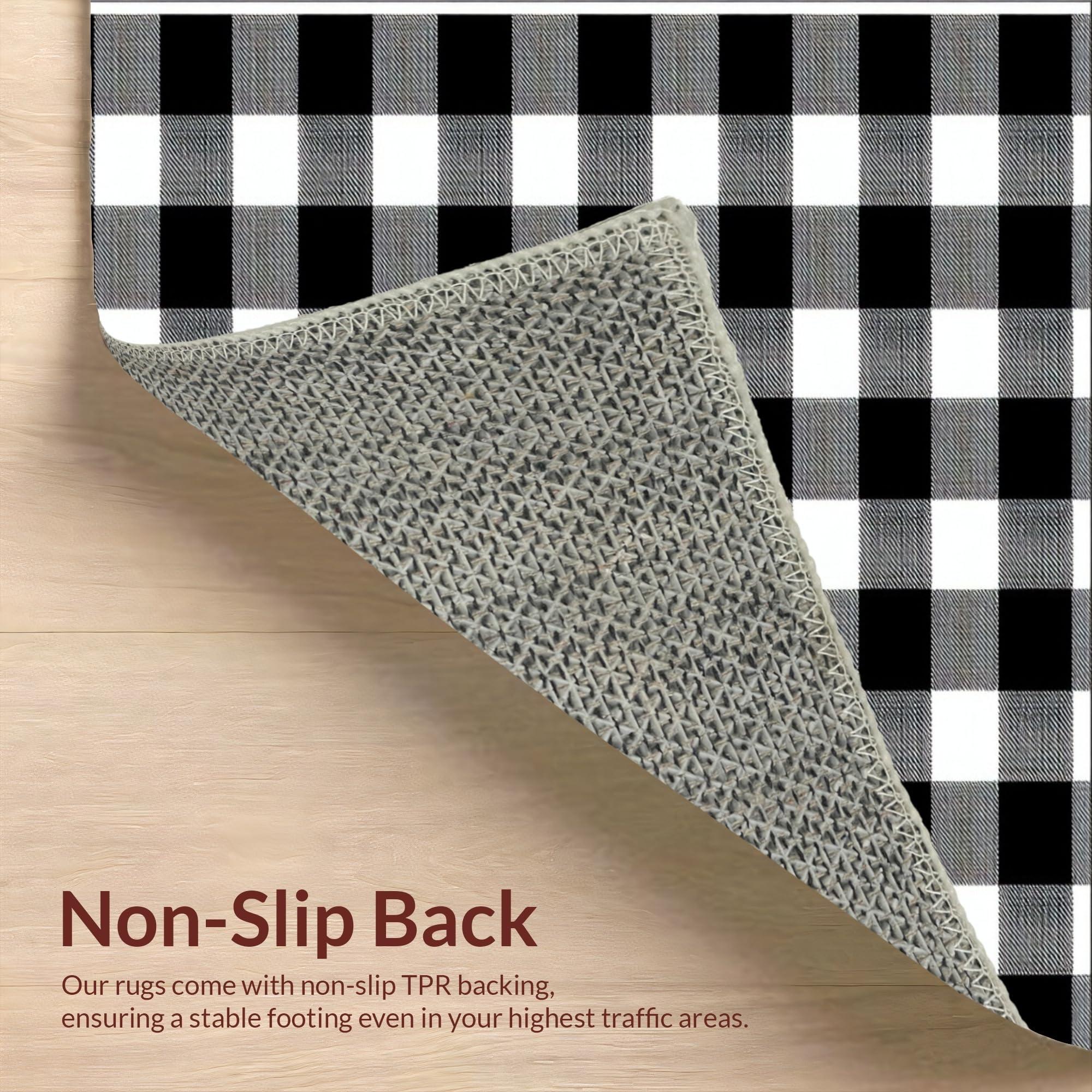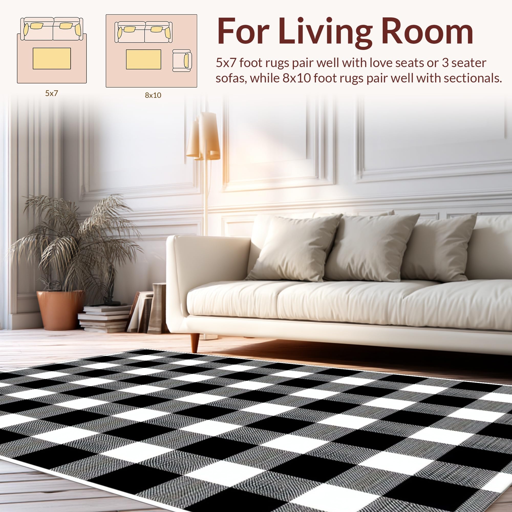 Ultra Soft Area Rug, Non Slip, Stain Resistant, Washable Area Rugs for Living Room, Bedroom, Elegant Two-Tone Plaid Appeal(Black) Overview: