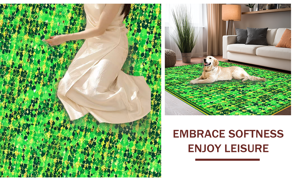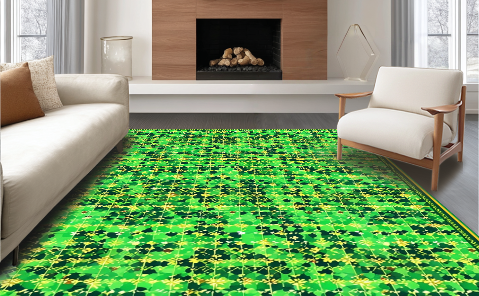 Ultra Soft Area Rug, Non Slip, Stain Resistant, Washable Area Rugs for Living Room, Bedroom, Elegant Vibrant Clover Aesthetic(Green) Overview:
