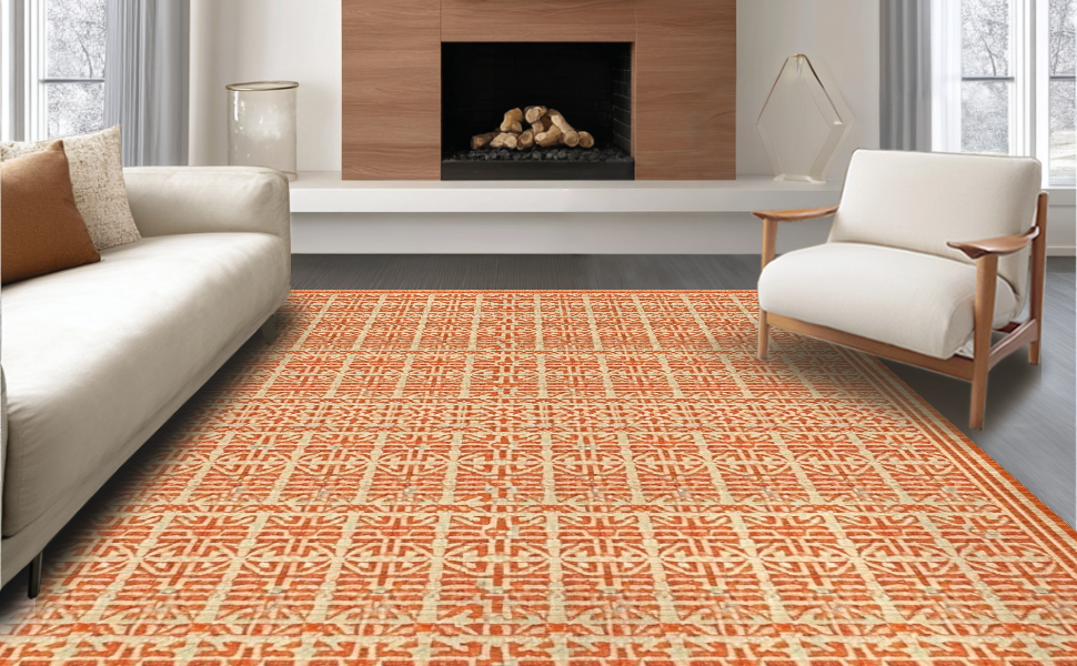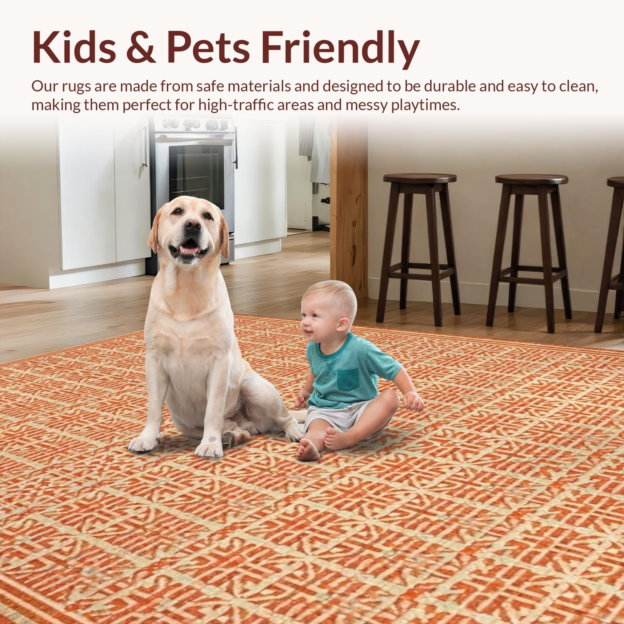 Ultra Soft Area Rug, Non Slip, Stain Resistant, Washable Area Rugs for Living Room, Bedroom, Elegant Vibrant Geometric Motif(Beige) Overview: