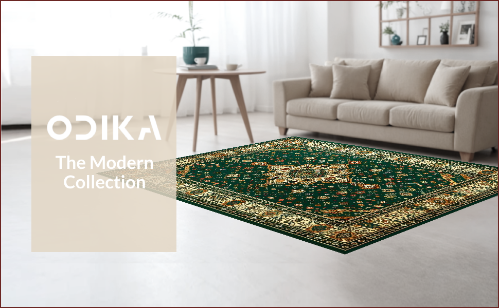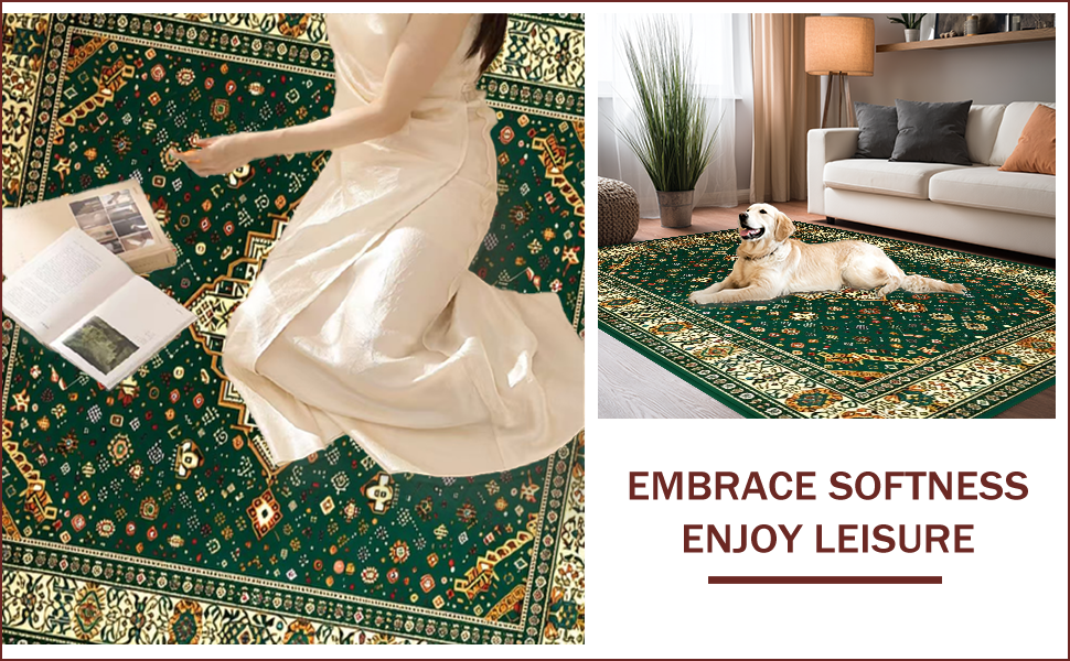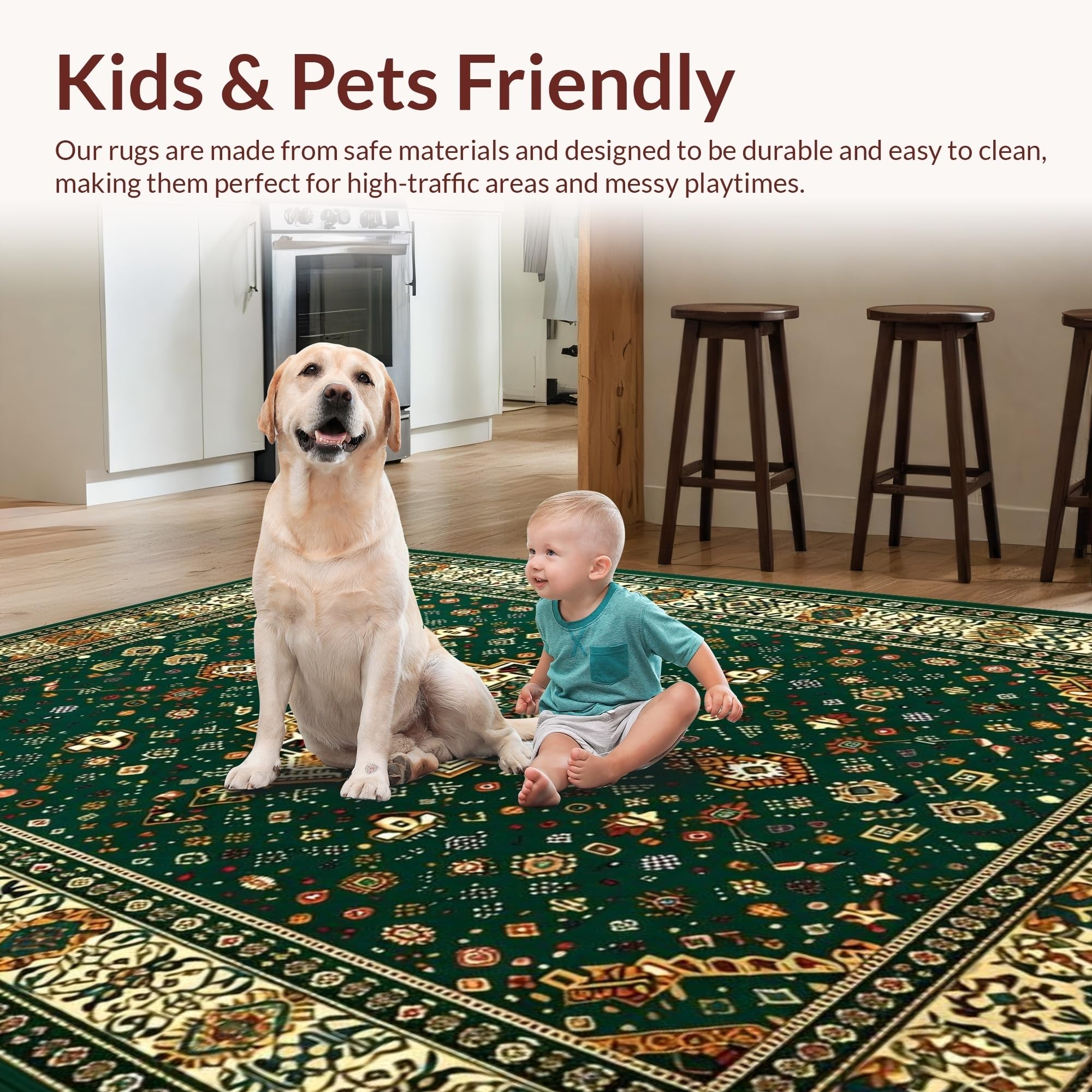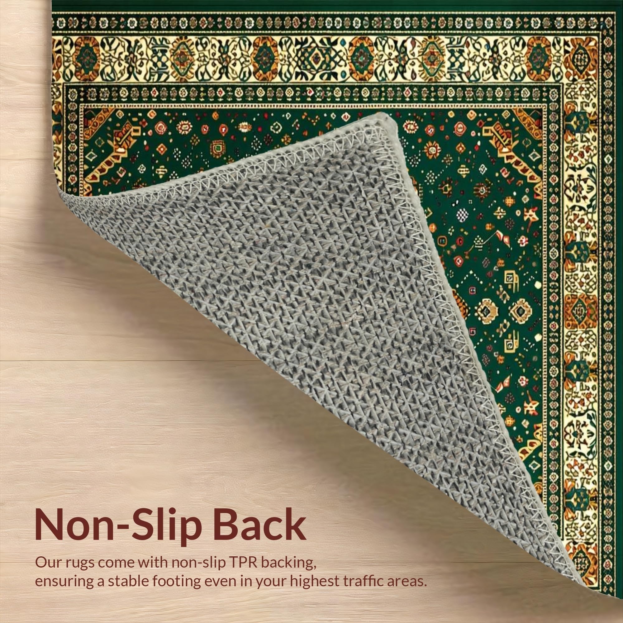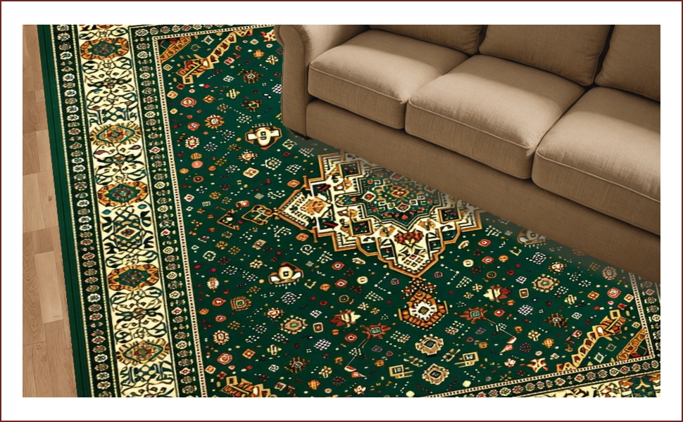 Ultra Soft Area Rug, Non Slip, Stain Resistant, Washable Area Rugs for Living Room, Bedroom, Elegant Vibrant Ogee Design(Green) Overview: