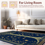 Flatwoven High Traffic Area Rug, Elegant Mythology Motif, Non Slip, Stain Resistant, Washable Area Rugs for Living Room, Bedroom (Blue) Overview: