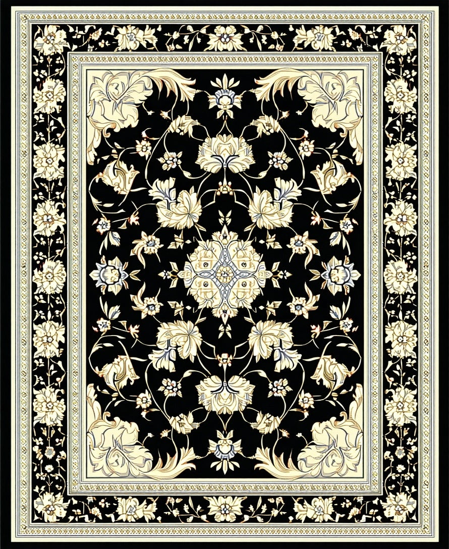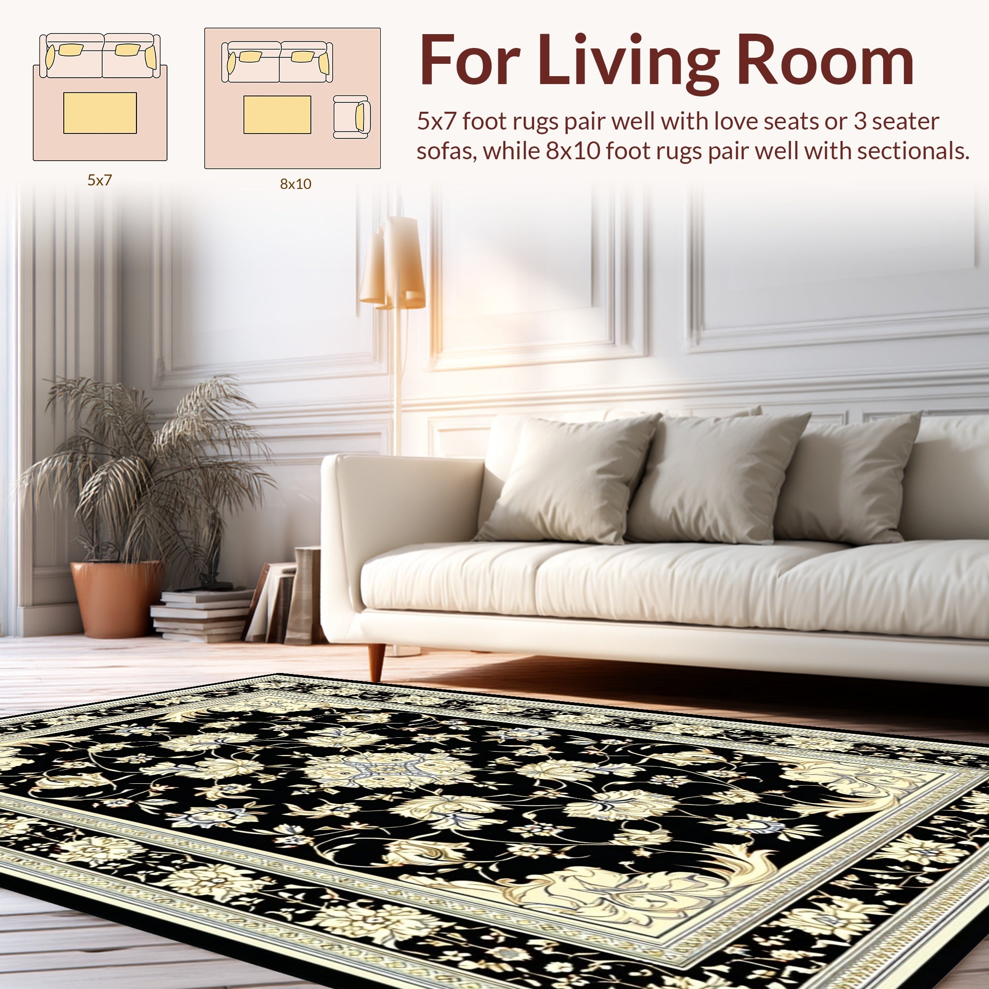 Flatwoven High Traffic Area Rug, Elegant Vintage Damask Design, Non Slip, Stain Resistant, Washable Area Rugs for Living Room, Bedroom (Black) Overview: