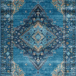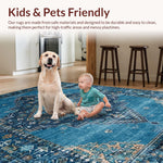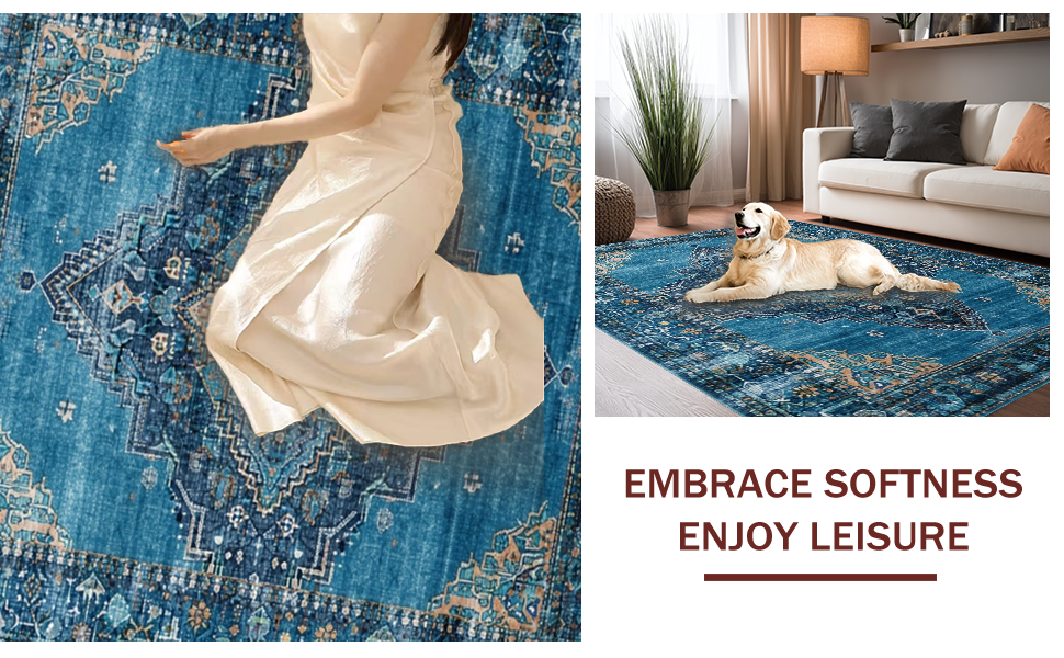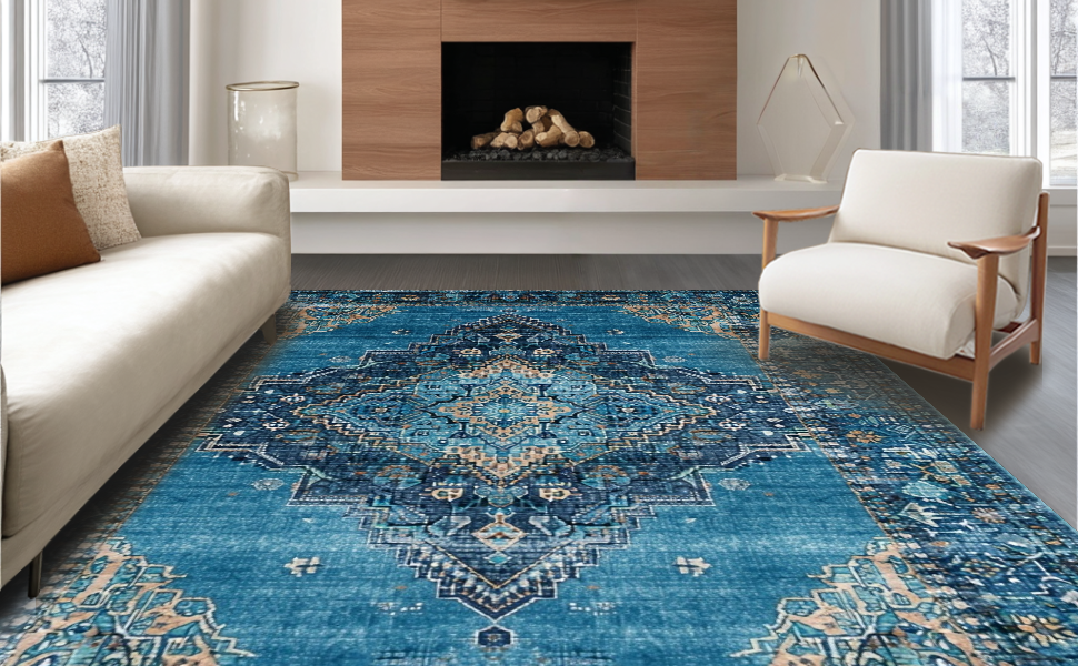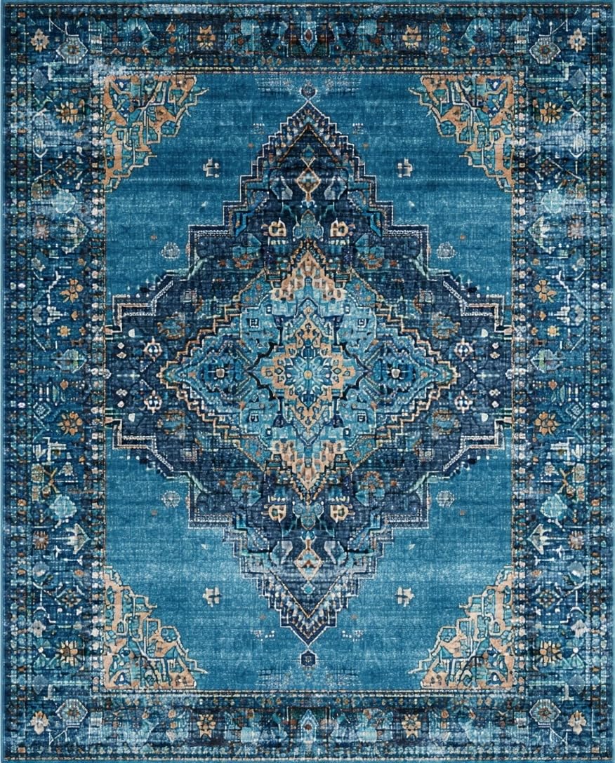 Ultra Soft Area Rug, Non Slip, Stain Resistant, Washable Area Rugs for Living Room, Bedroom, Elegant Vintage-Inspired Geometric Style(Blue) Overview: