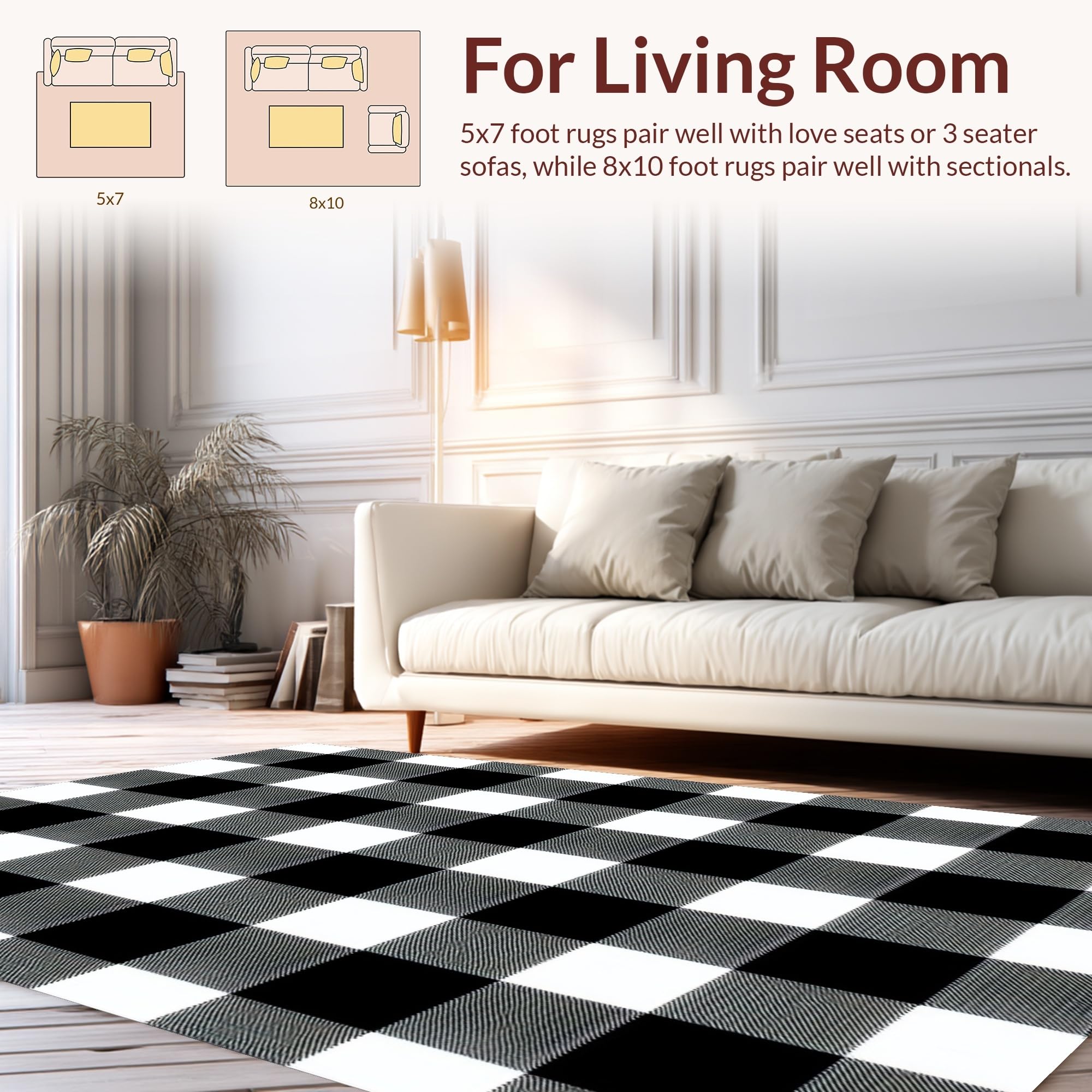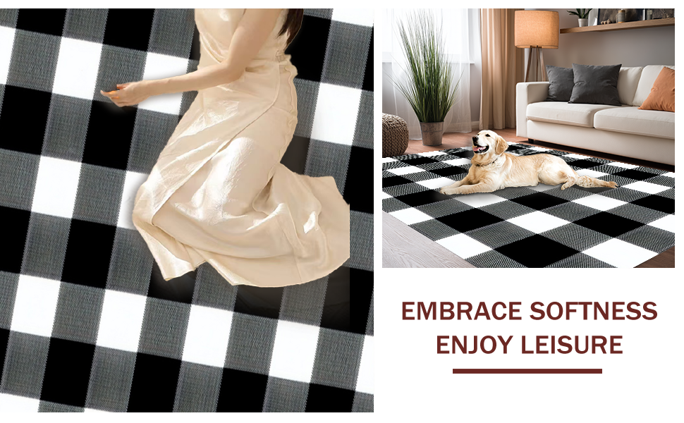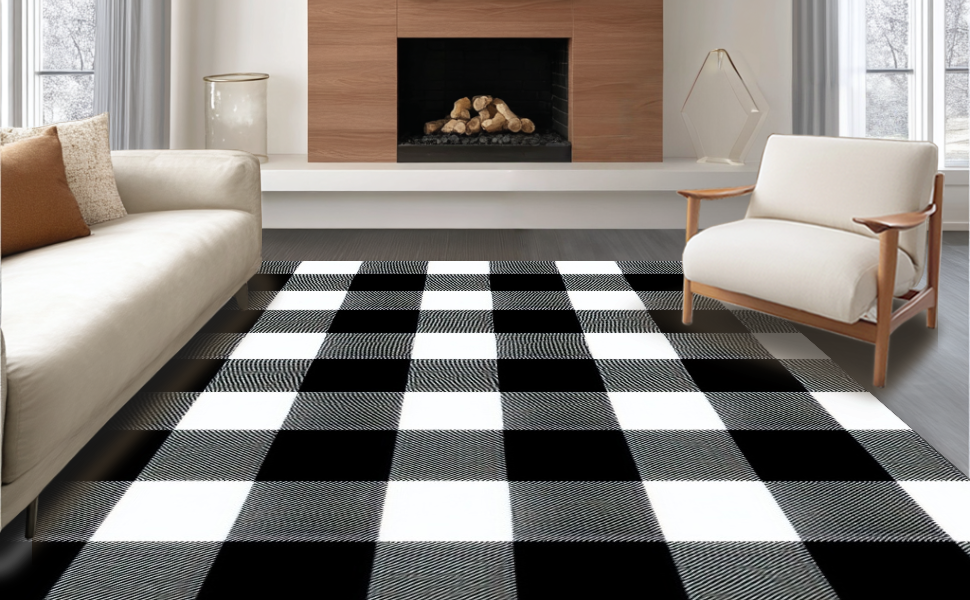 Ultra Soft Area Rug, Non Slip, Stain Resistant, Washable Area Rugs for Living Room, Bedroom, Elegant Vintage Tartan Pattern(Black) Overview: