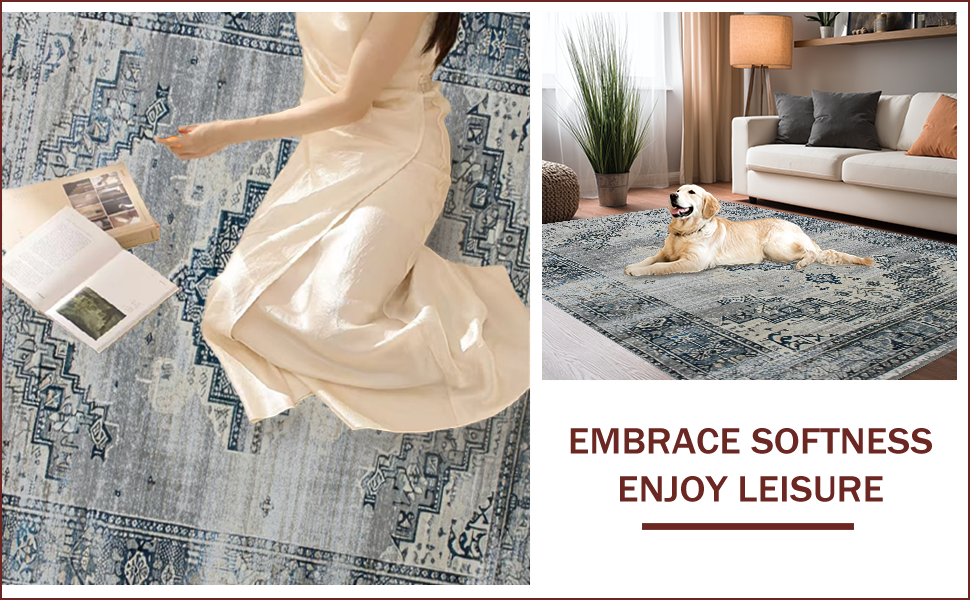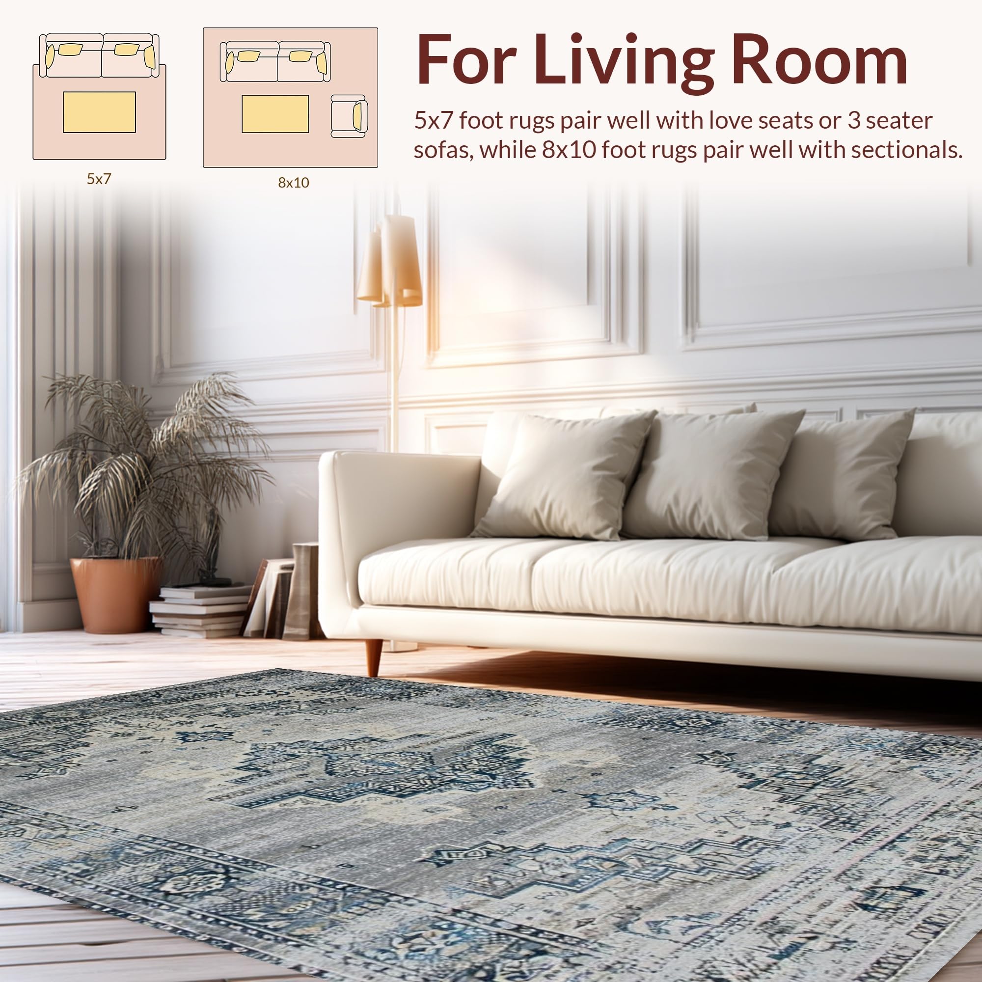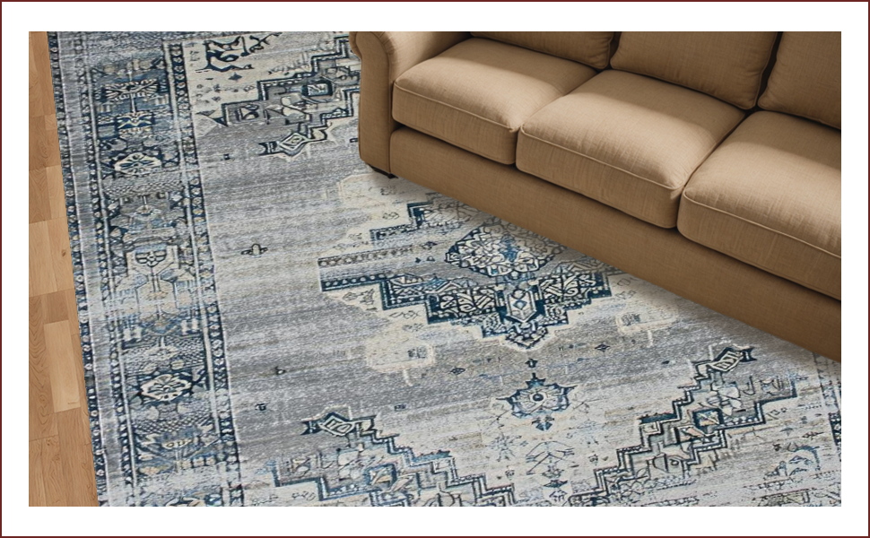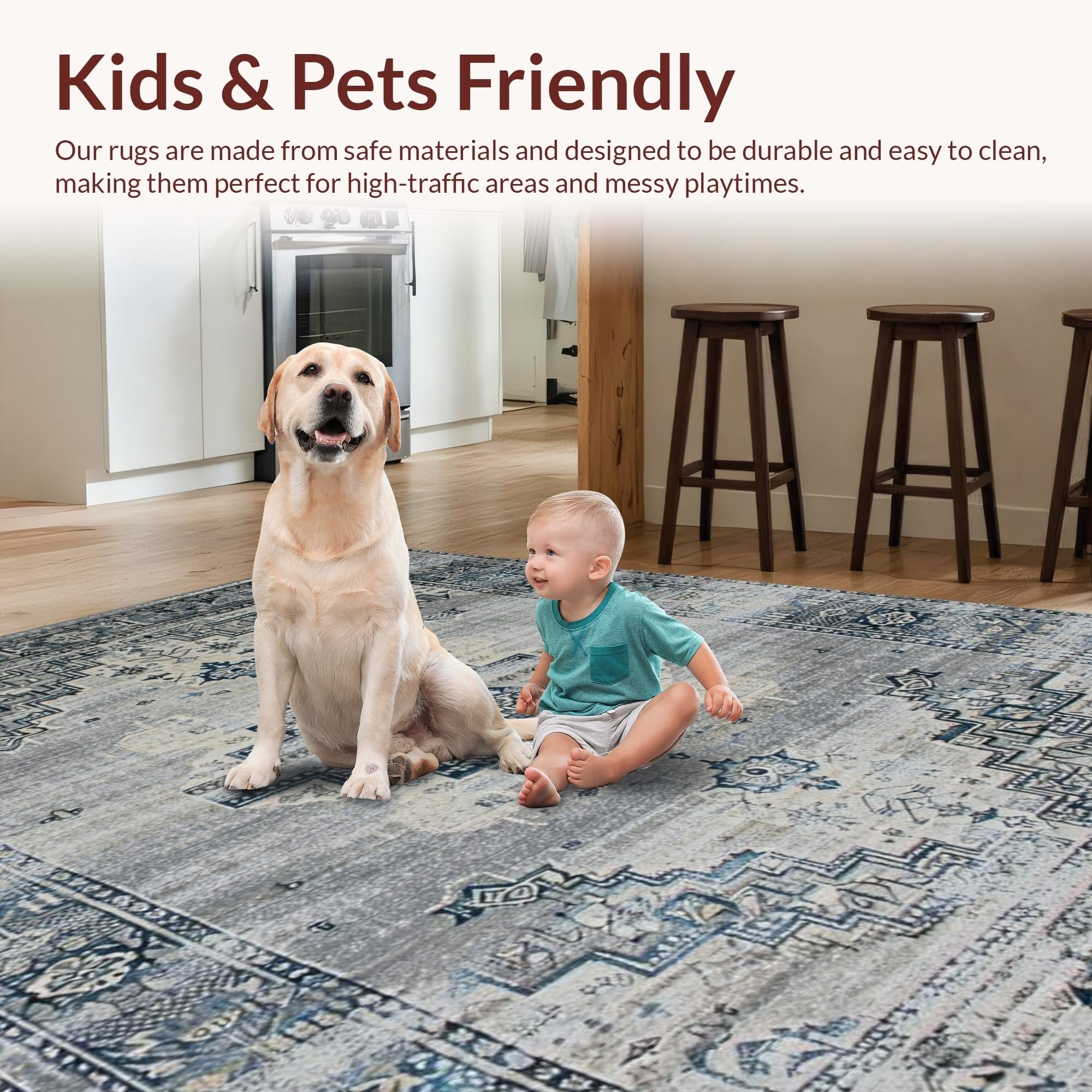 Ultra Soft Area Rug, Non Slip, Stain Resistant, Washable Area Rugs for Living Room, Bedroom, Elegant Vintage Tiled Arrangement(Gray) Overview: