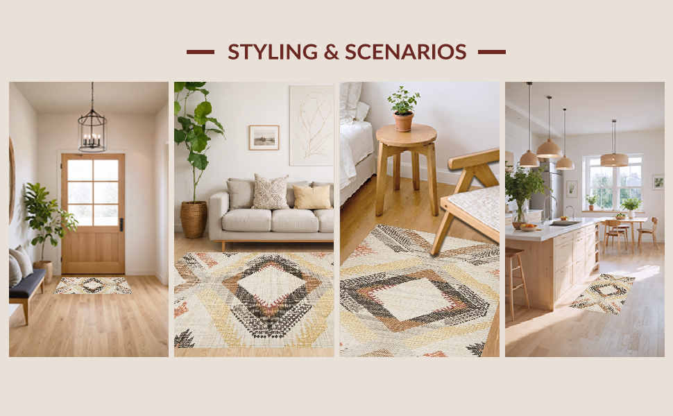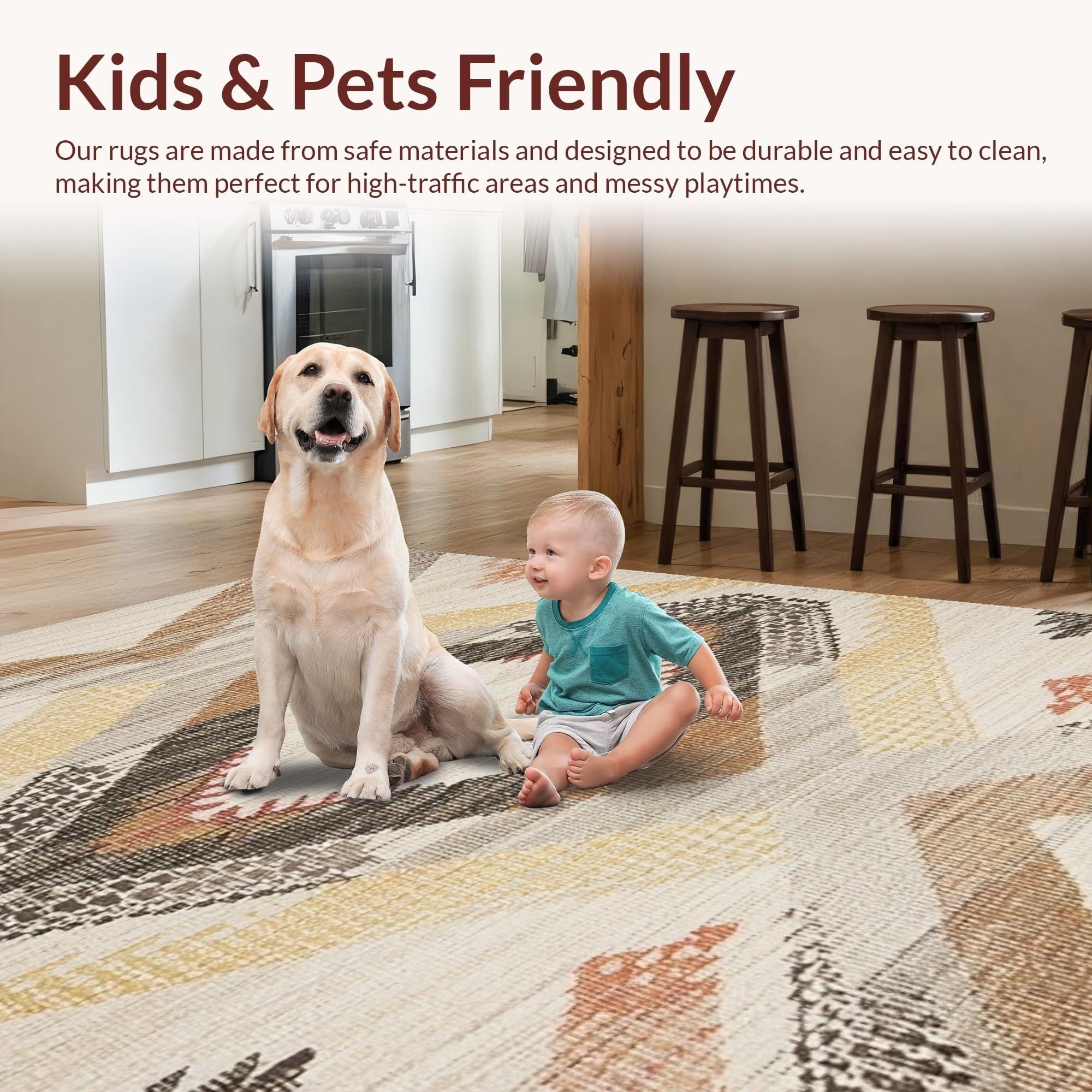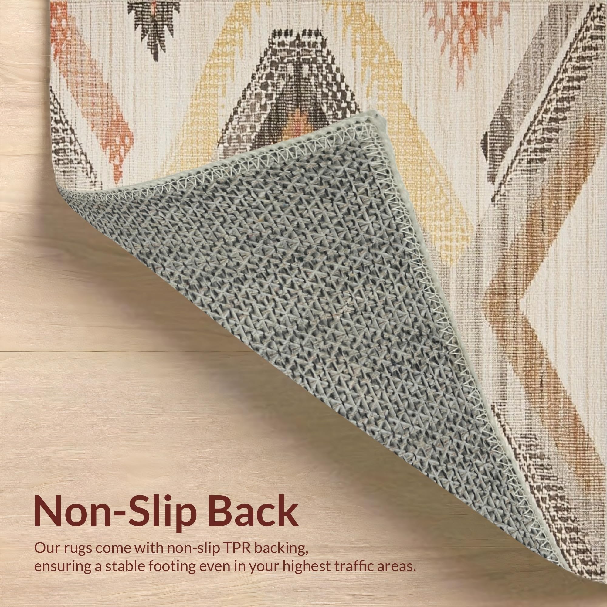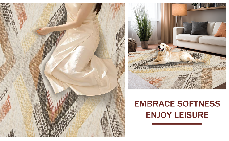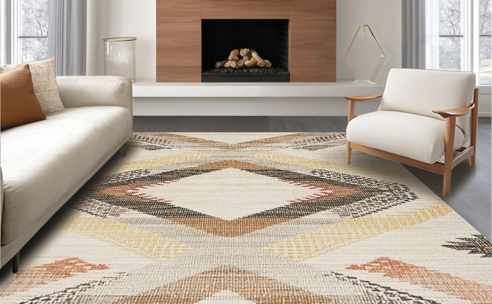 Ultra Soft Area Rug, Non Slip, Stain Resistant, Washable Area Rugs for Living Room, Bedroom, Elegant Warm-Toned Woven Motif(Beige) Overview: