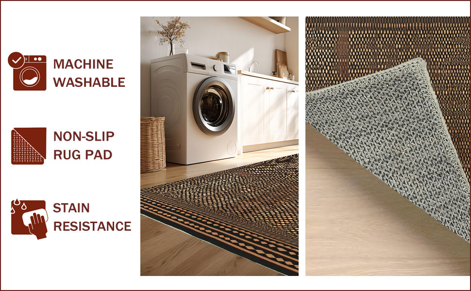 Ultra Soft Area Rug, Non Slip, Stain Resistant, Washable Area Rugs for Living Room, Bedroom, Elegant Western Themed Decorative Piece(Brown) Overview: