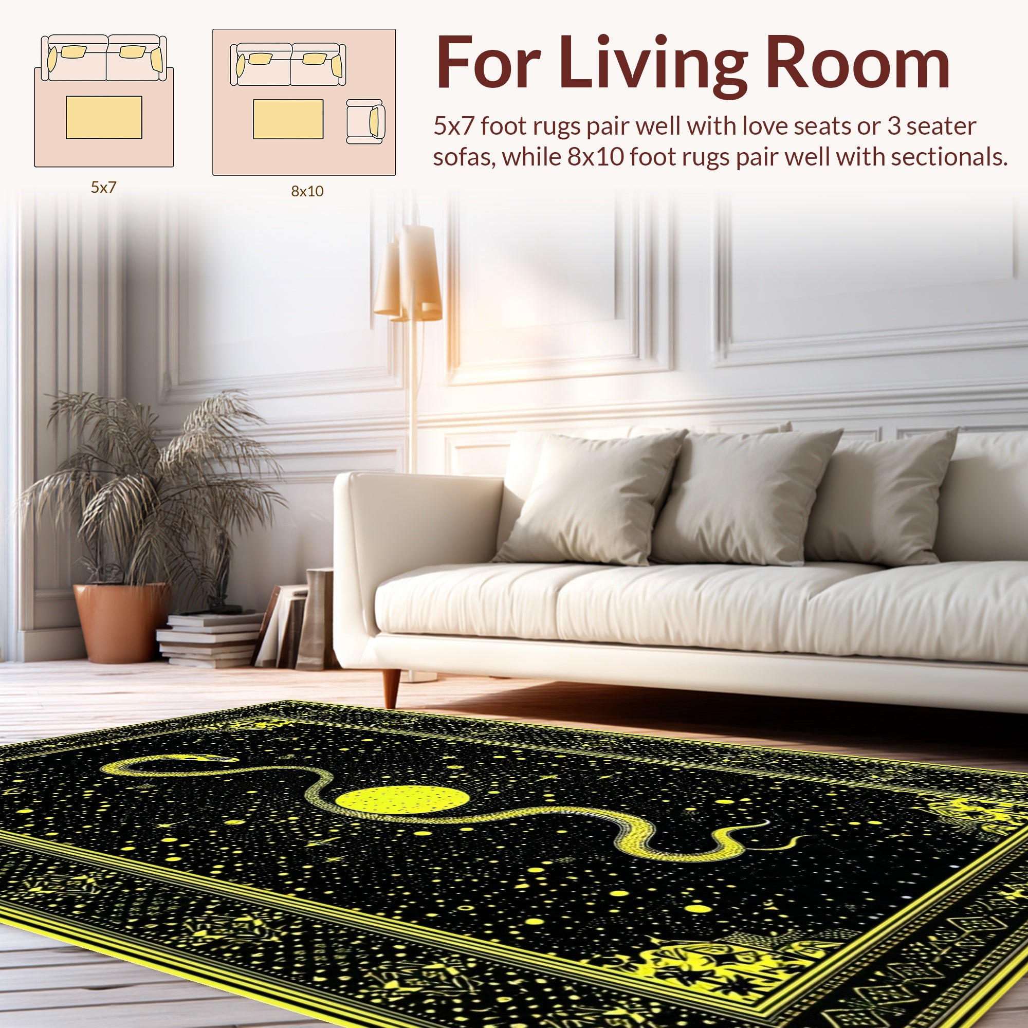 Flatwoven High Traffic Area Rug, Elegant Spot Moon Motif, Non Slip, Stain Resistant, Washable Area Rugs for Living Room, Bedroom (Black) Overview: