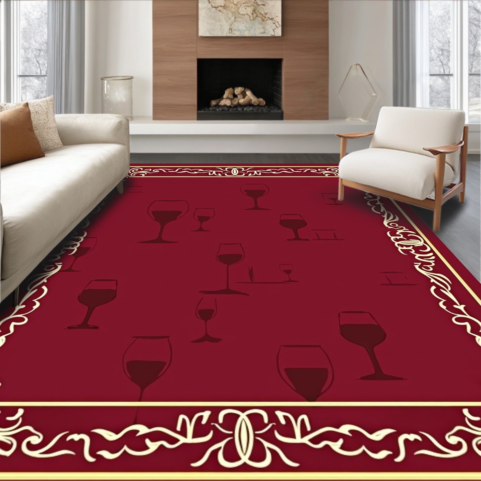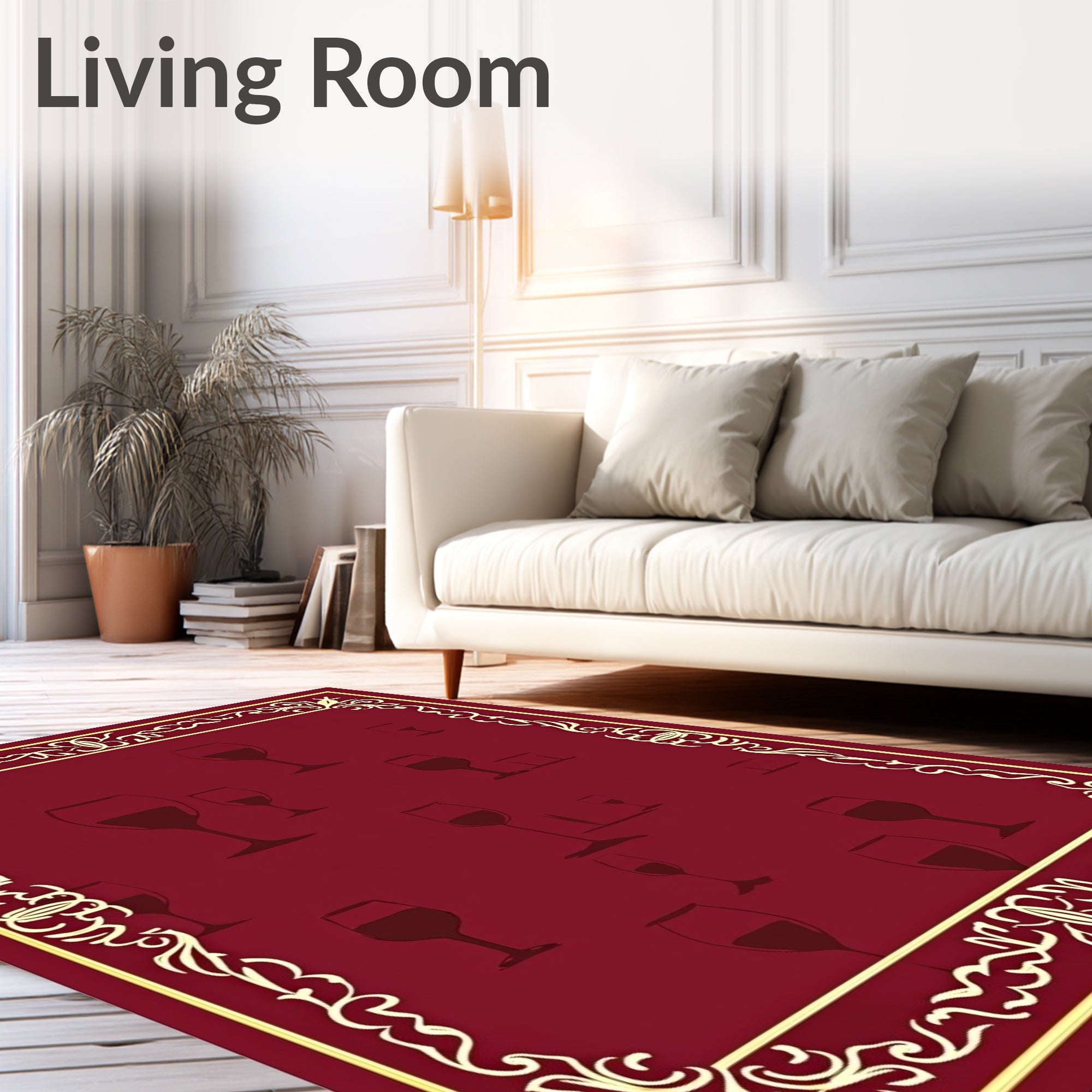 Ultra Soft Area Rug, Non Slip, Stain Resistant, Washable Area Rugs for Living Room, Bedroom, Elegant Wine Glass With Curved Vine Accents(Red) Overview: