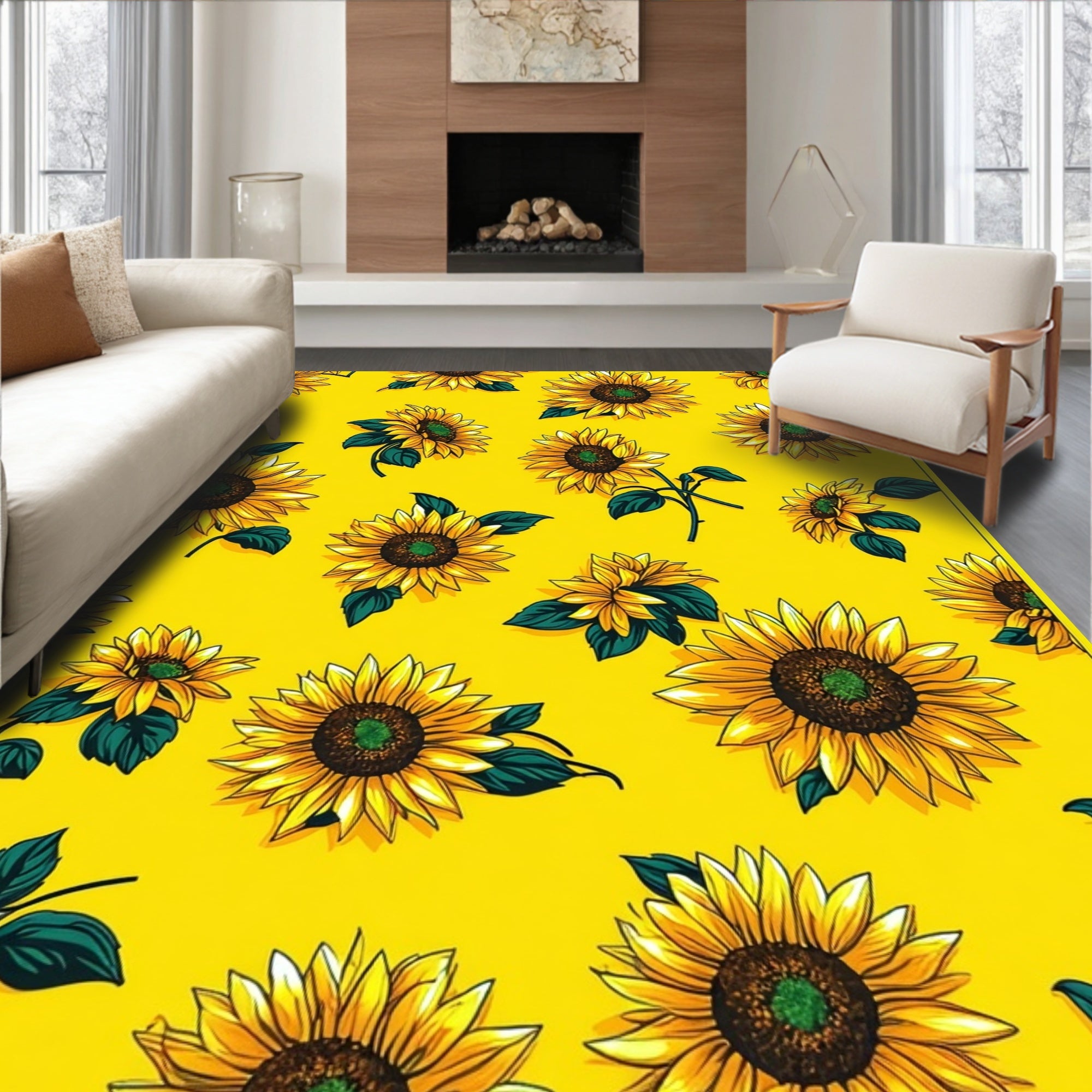 Flatwoven High Traffic Area Rug, Elegant Yellow Botanical, Non Slip, Stain Resistant, Washable Area Rugs for Living Room, Bedroom (Yellow) Overview: