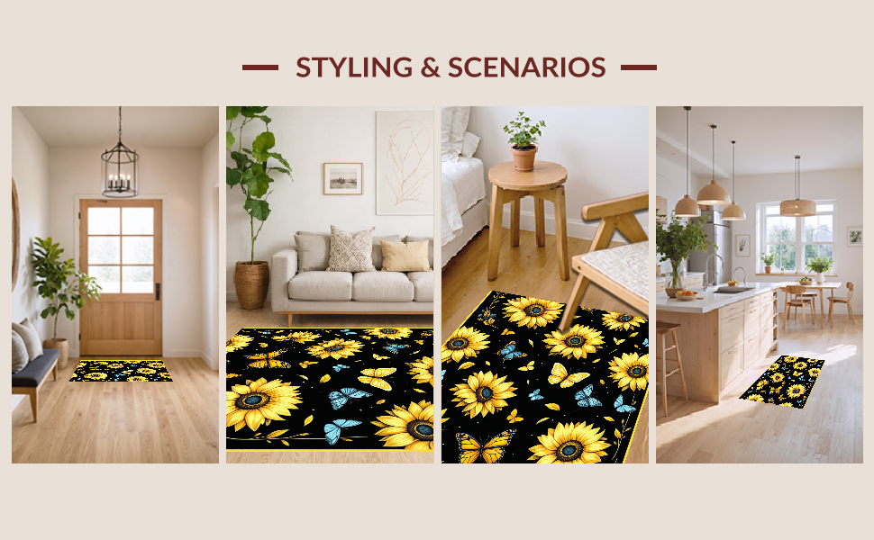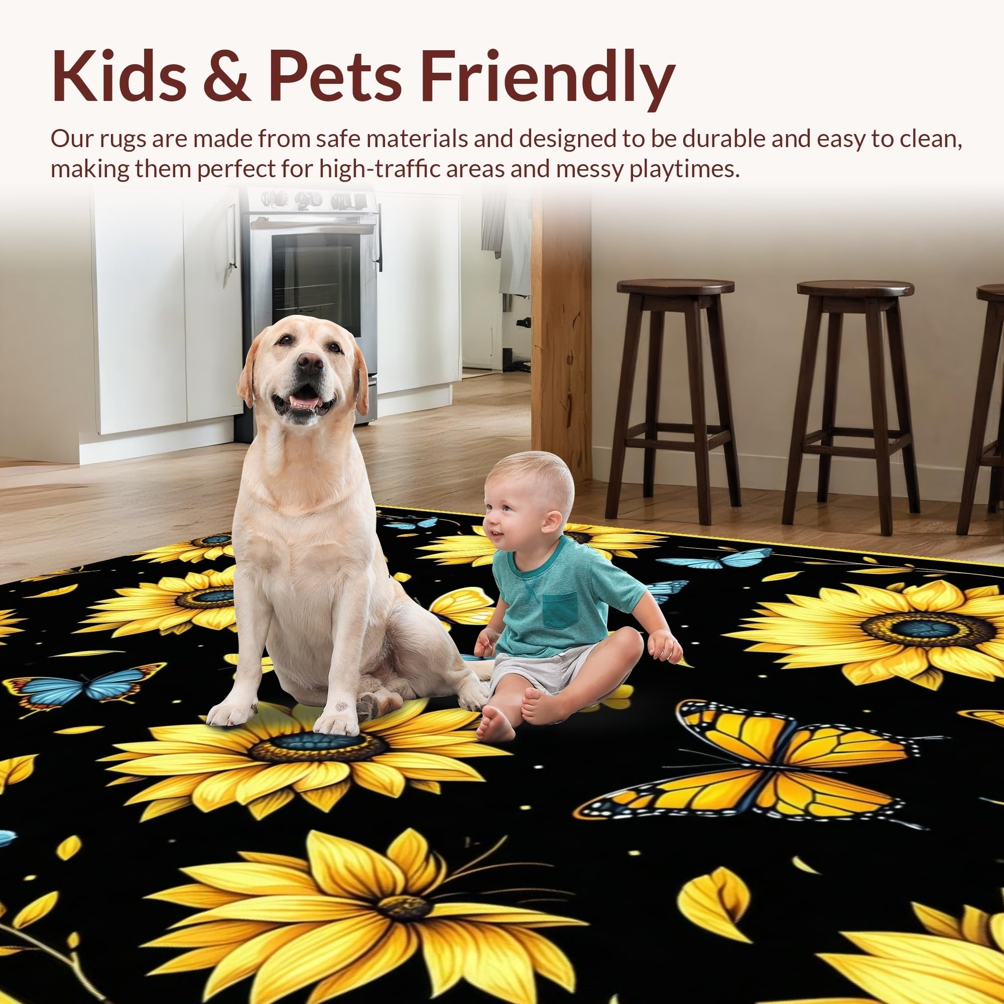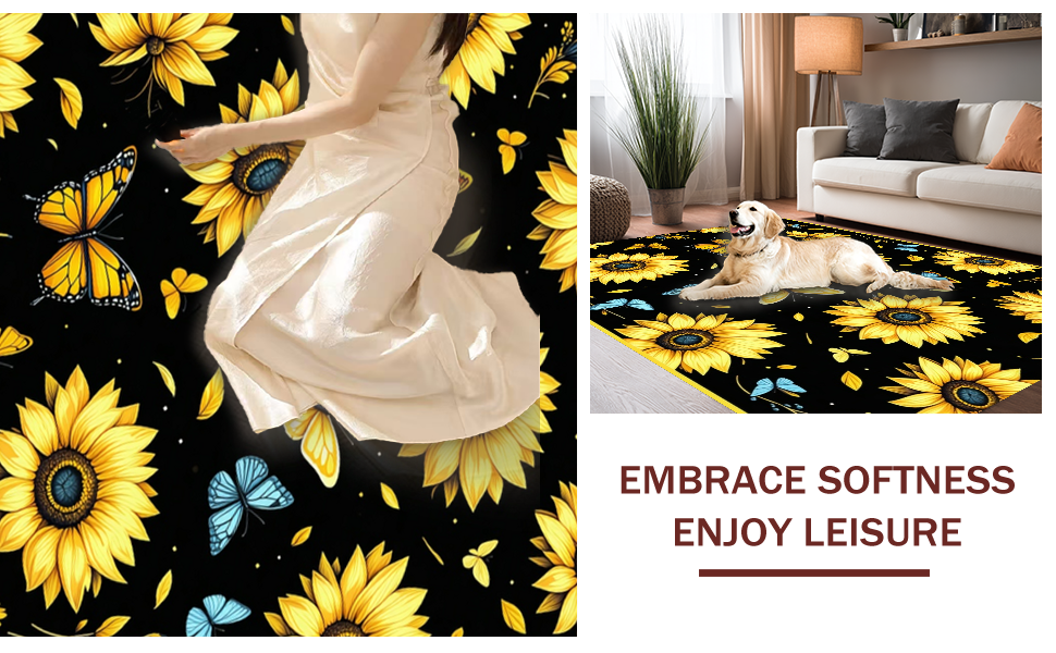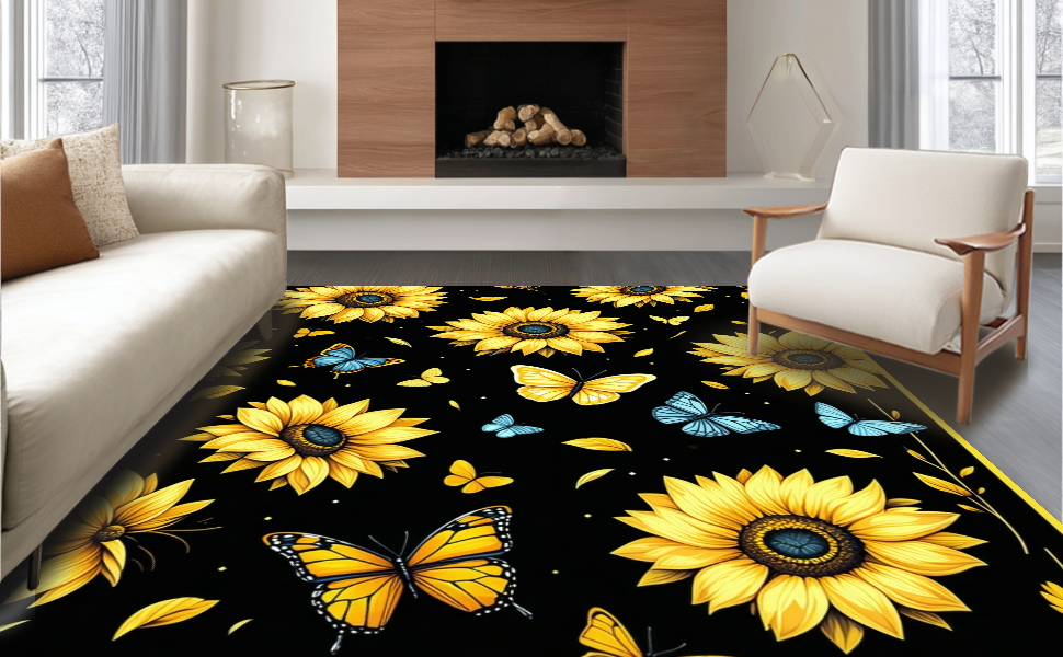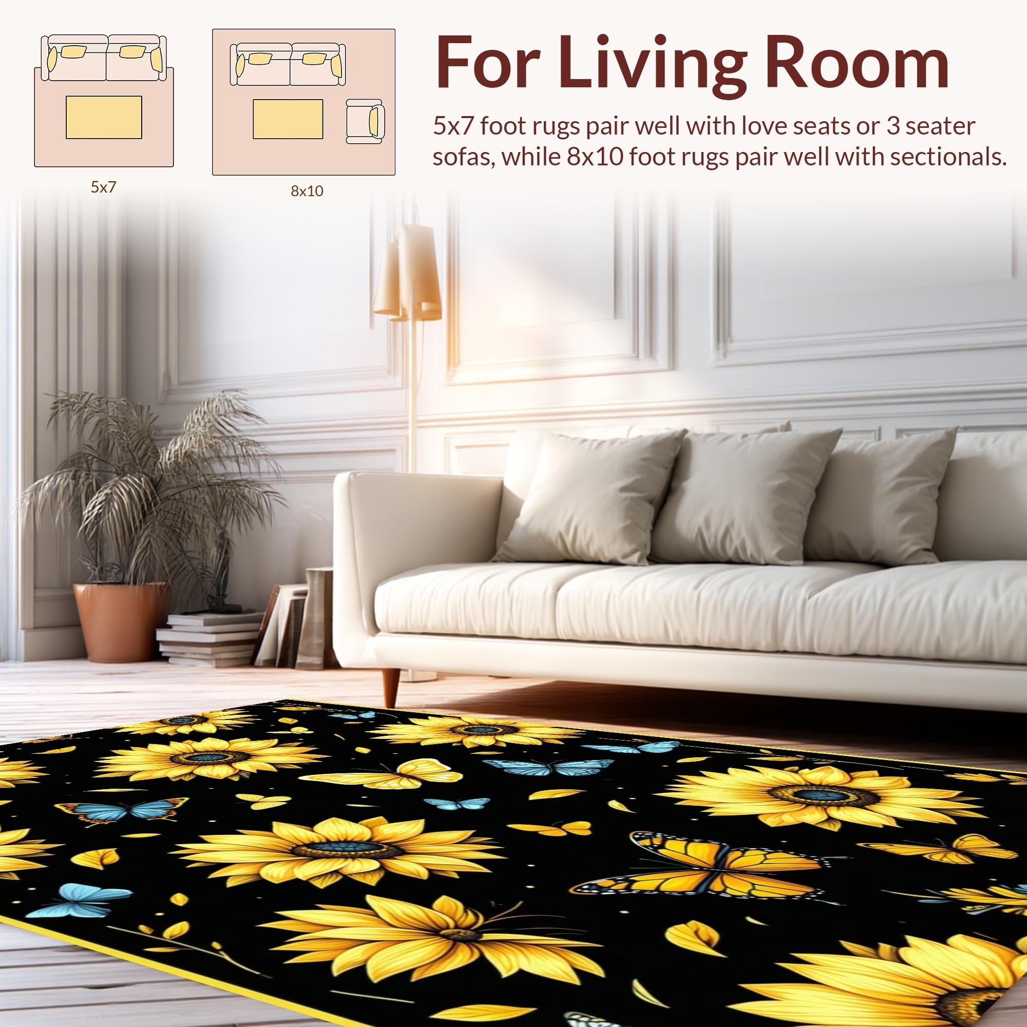 Ultra Soft Area Rug, Non Slip, Stain Resistant, Washable Area Rugs for Living Room, Bedroom, Elegant Yellow Floral Composition(Yellow) Overview:
