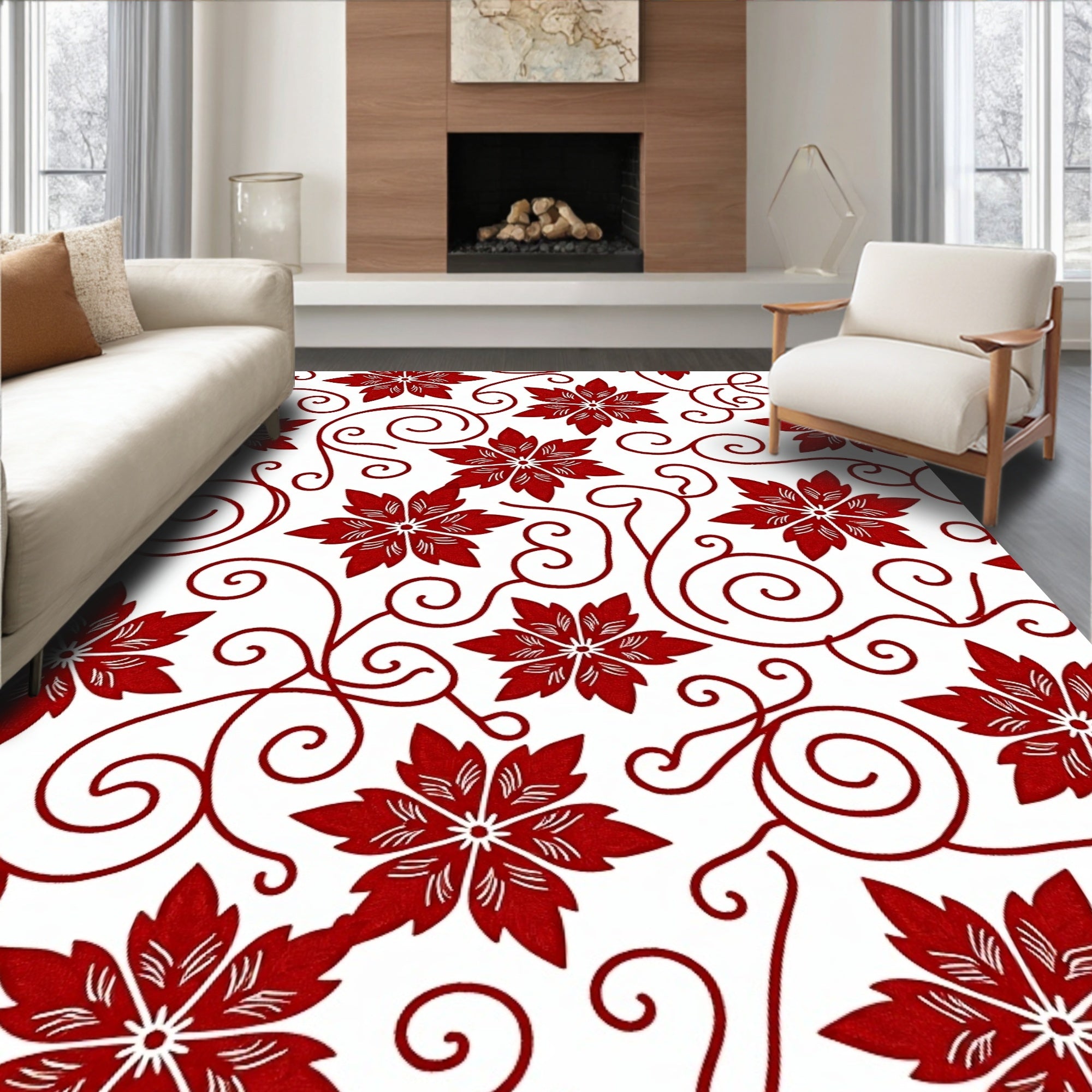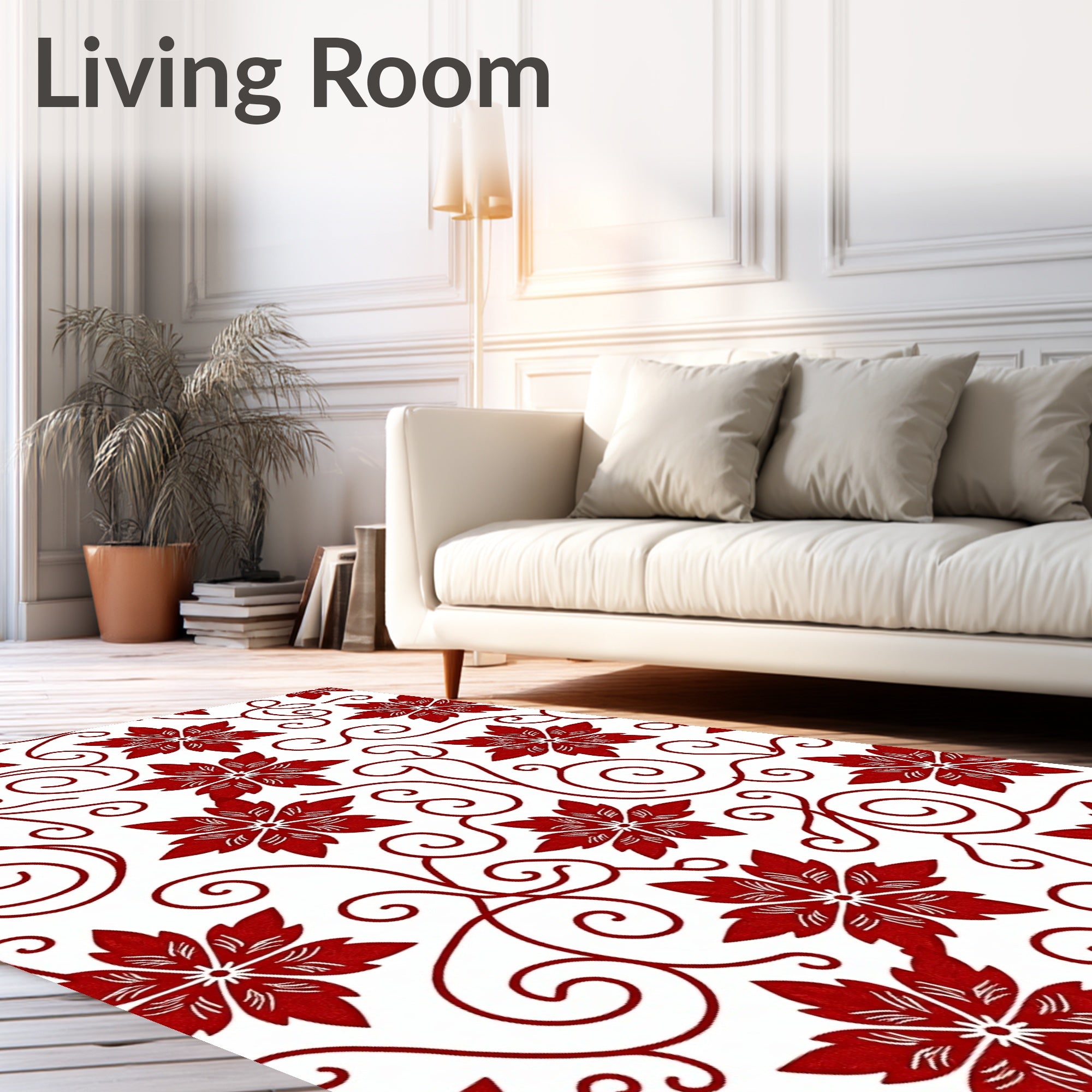 Ultra Soft Area Rug, Non Slip, Stain Resistant, Washable Area Rugs for Living Room, Bedroom, Elegant Yuletide Botanical Swirl(Red) Overview: