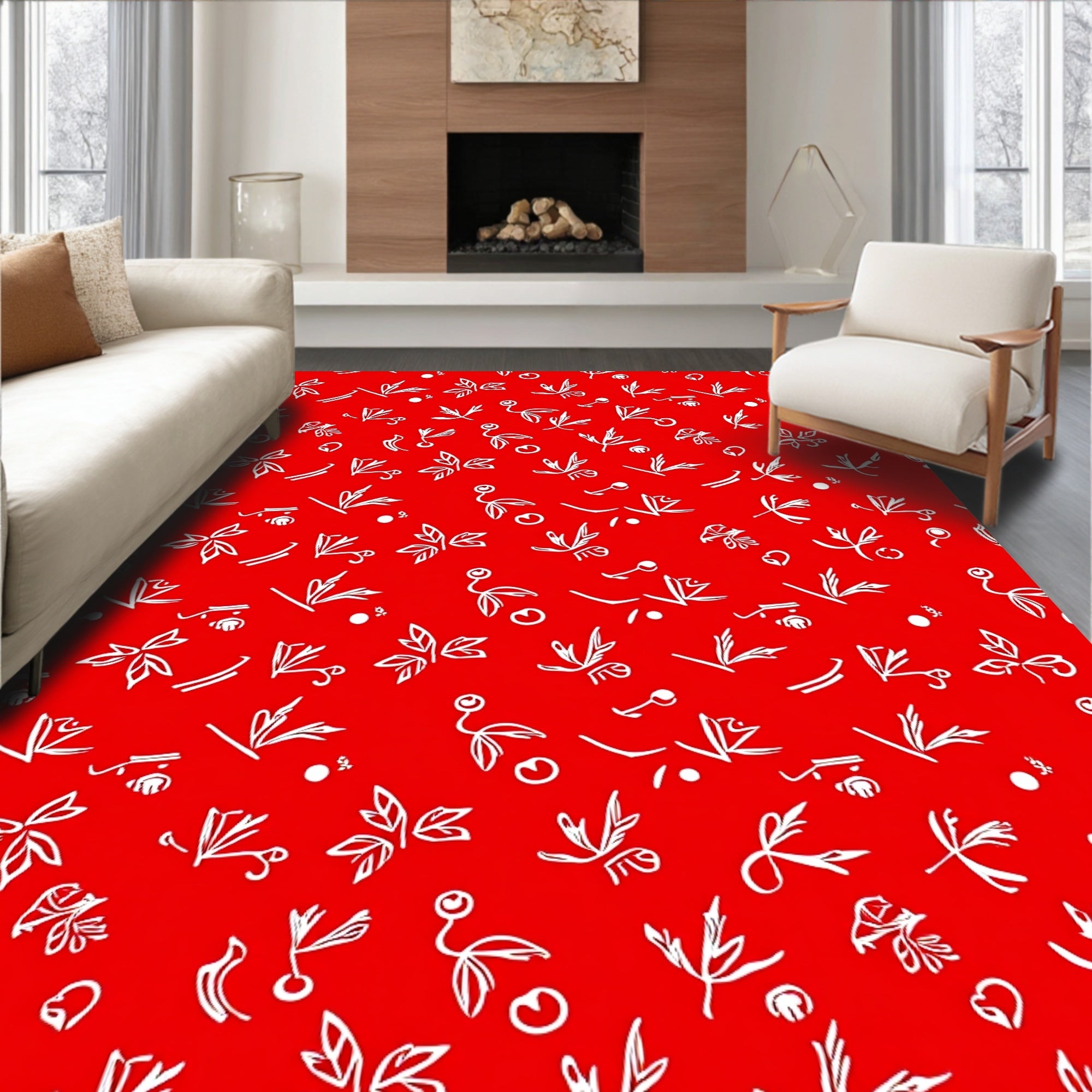 Ultra Soft Area Rug, Non Slip, Stain Resistant, Washable Area Rugs for Living Room, Bedroom, Elegant Yuletide Decorative Enhanced Durability Protection(Red) Overview: