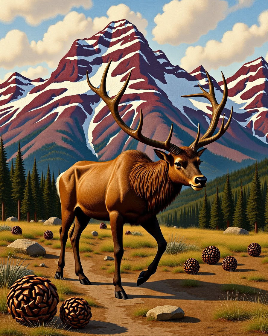 Elk Traversing Mountain Wilderness Path(Brown)